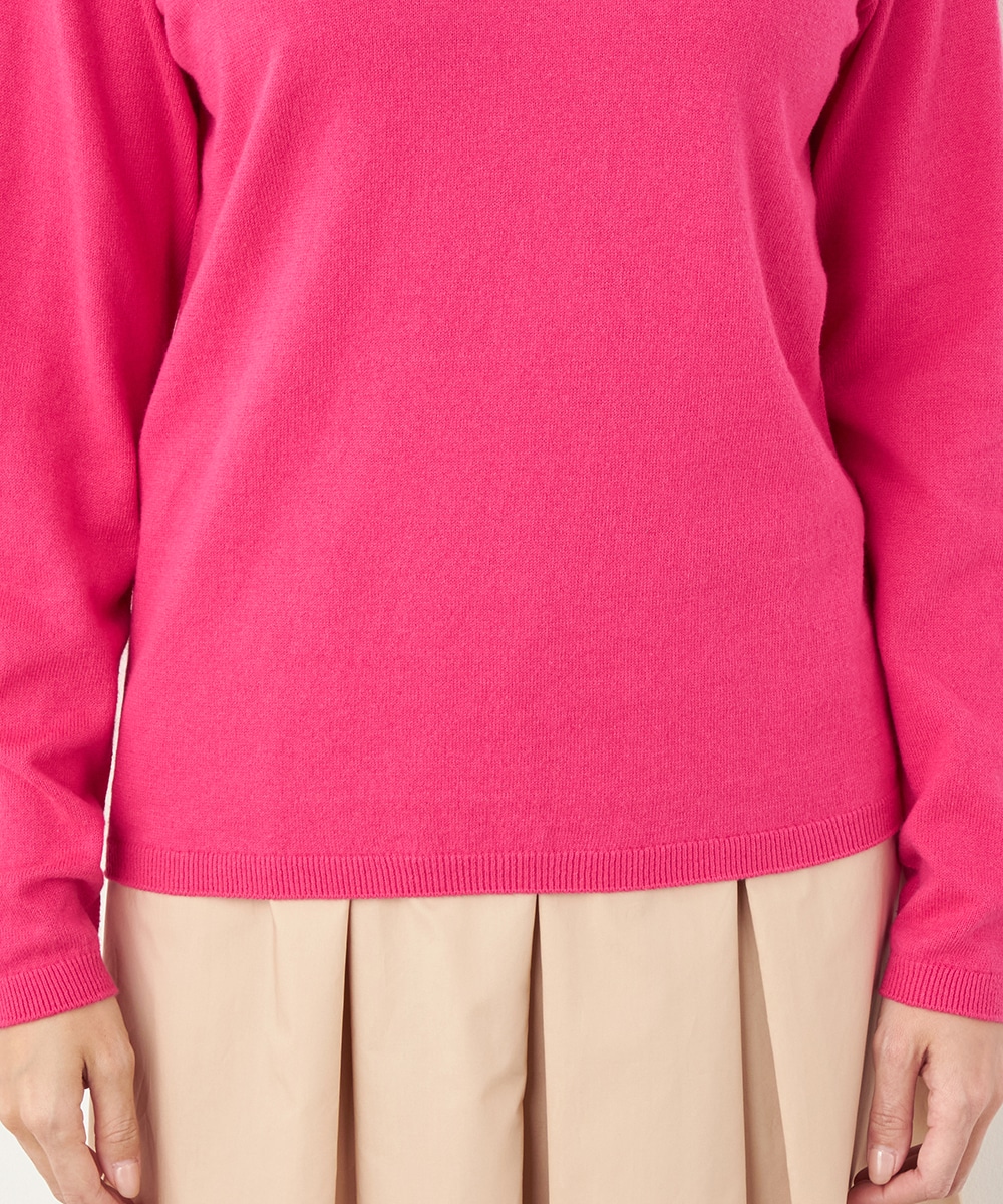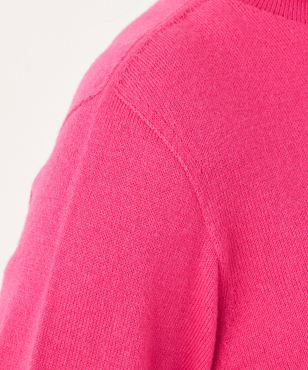 コットンをベースにカシミヤをブレンドして、ふんわりとした絶妙な風合いに仕上げました。薄手ですっきりとした印象に着こなせます。ネック部分にほどよいゆとりを持たせているのもこだわりのポイントです。デザインはシンプルにまとまり、さまざまなコーディネートに活用できます。