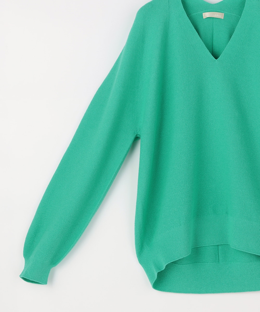 ゆったりとしたシルエットのリラックス感がトレンドにマッチして、デイリーコーディネートにもぴったりです。Vネックの開き具合がほどよく、フェイスラインがすっきりと見えます。発色のきれいなオレンジ、ライトグリーン、ラベンダーの3色展開。顔映りが良く、コーディネートのポイントとしても活躍します。
