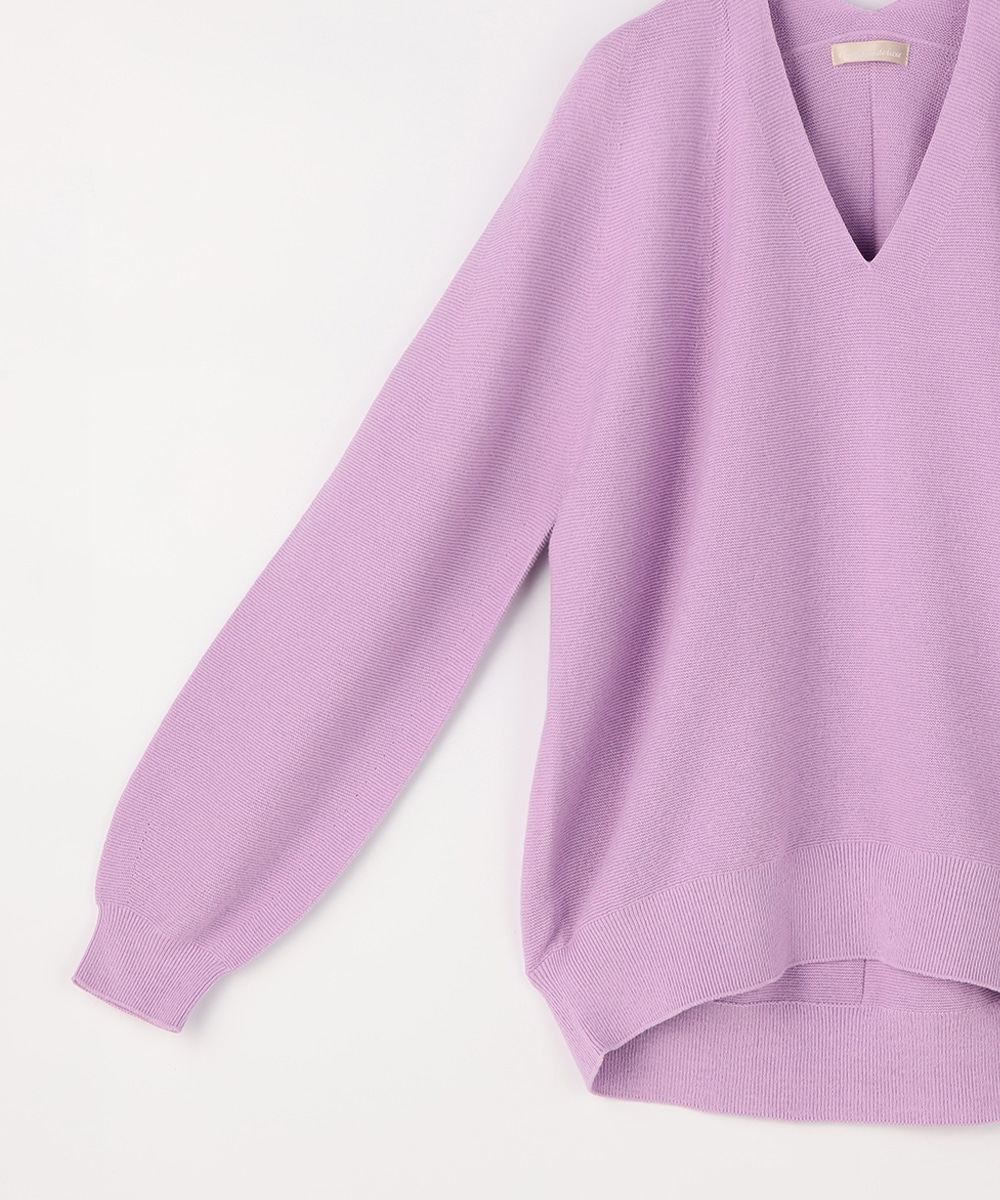 ゆったりとしたシルエットのリラックス感がトレンドにマッチして、デイリーコーディネートにもぴったりです。Vネックの開き具合がほどよく、フェイスラインがすっきりと見えます。発色のきれいなオレンジ、ライトグリーン、ラベンダーの3色展開。顔映りが良く、コーディネートのポイントとしても活躍します。