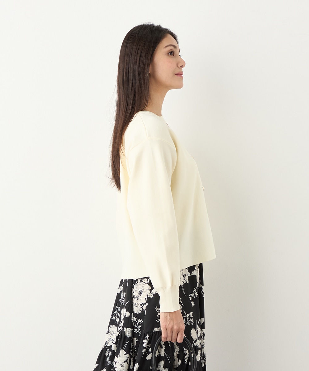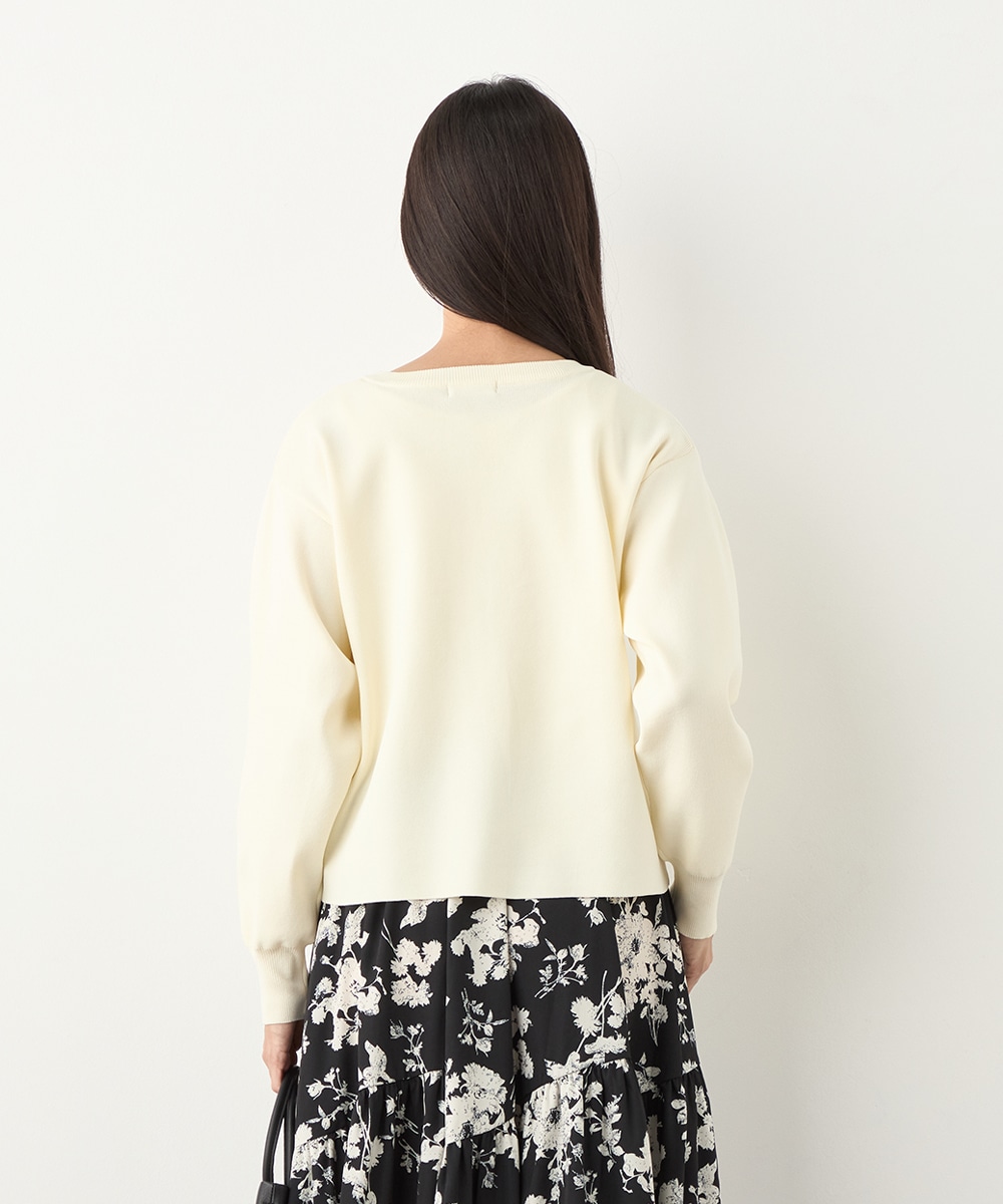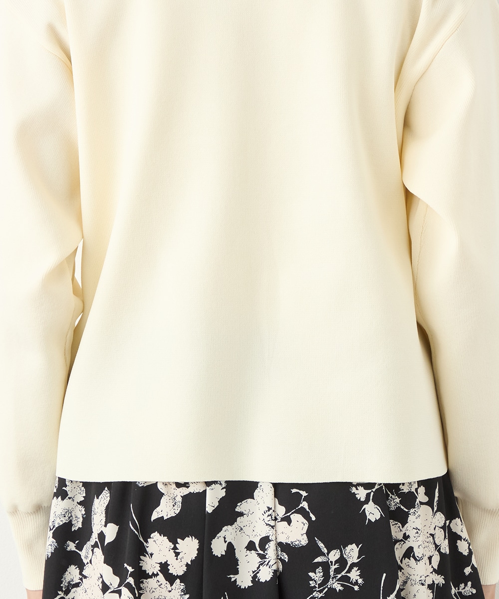 ネックのカッティングが特徴的で、フェイスラインがすっきりと見えます。目の細かな編み地のなめらかな表面感は上品な印象をプラス。ソフトな風合いも魅力です。着丈は少し短めに仕上がっており、さまざまなボトムスと合わせられます。春らしい明るくフレッシュな印象のカラーバリエーションです。