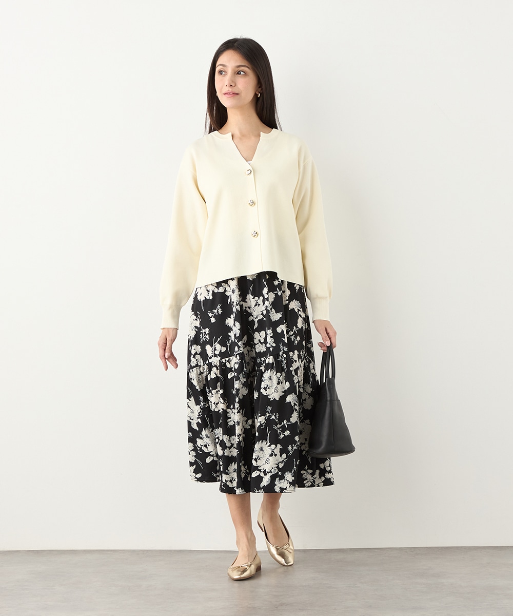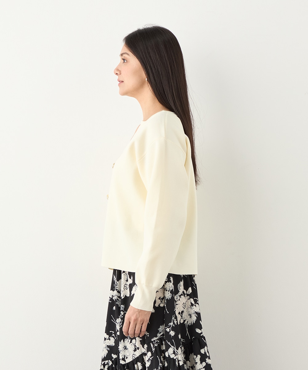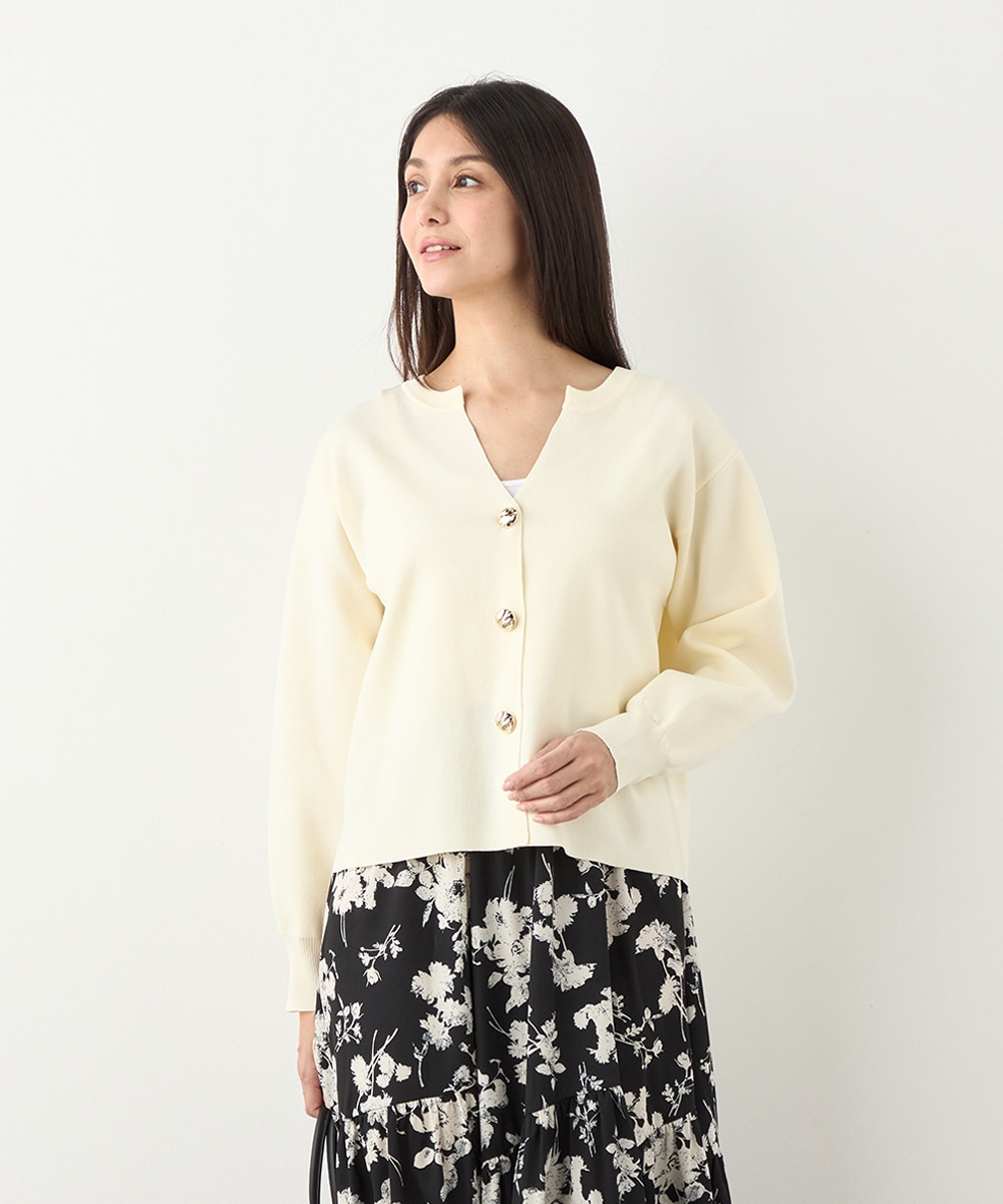 ネックのカッティングが特徴的で、フェイスラインがすっきりと見えます。目の細かな編み地のなめらかな表面感は上品な印象をプラス。ソフトな風合いも魅力です。着丈は少し短めに仕上がっており、さまざまなボトムスと合わせられます。春らしい明るくフレッシュな印象のカラーバリエーションです。