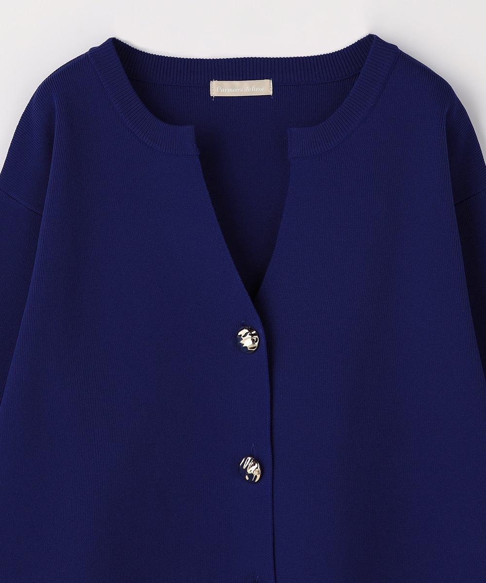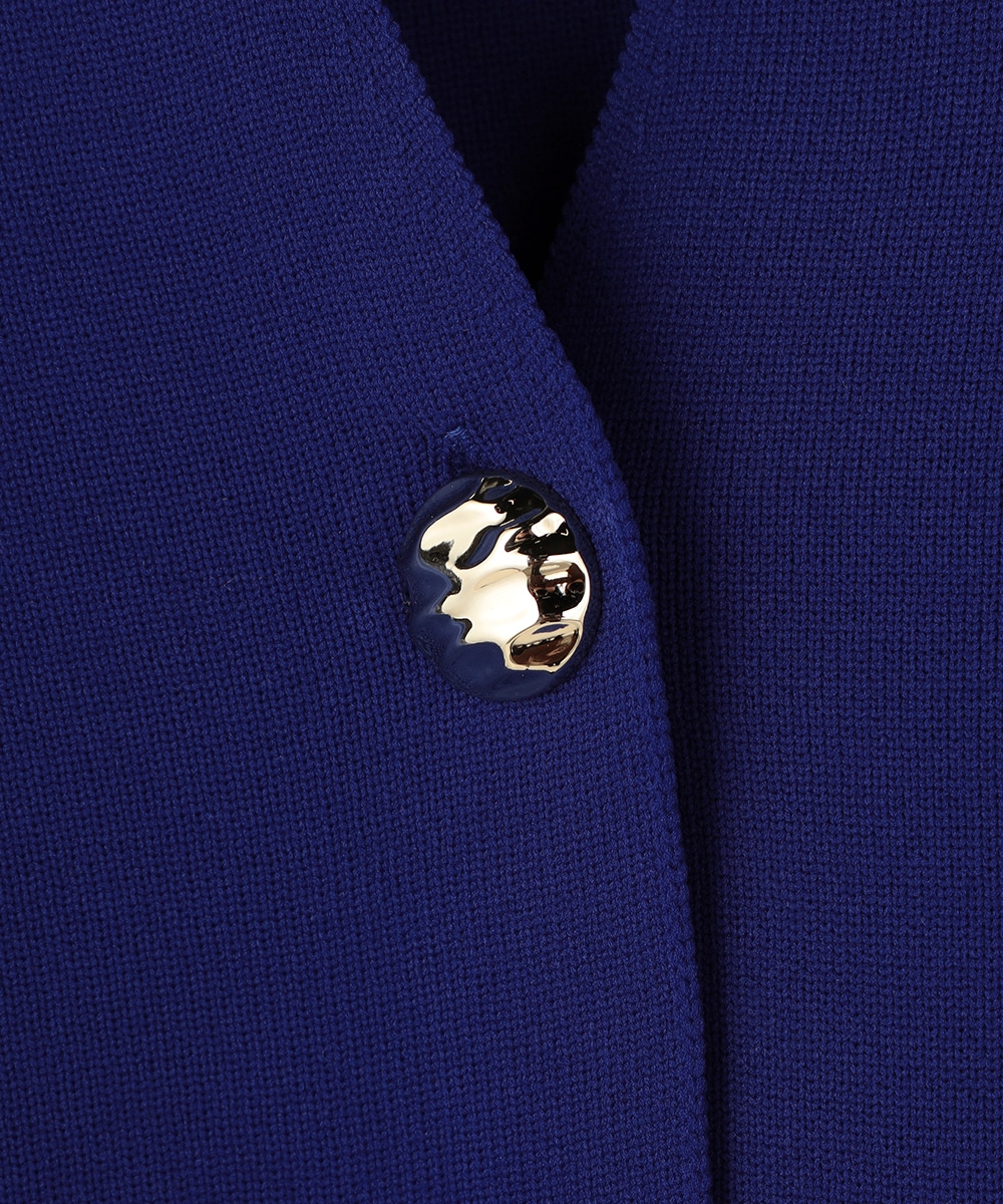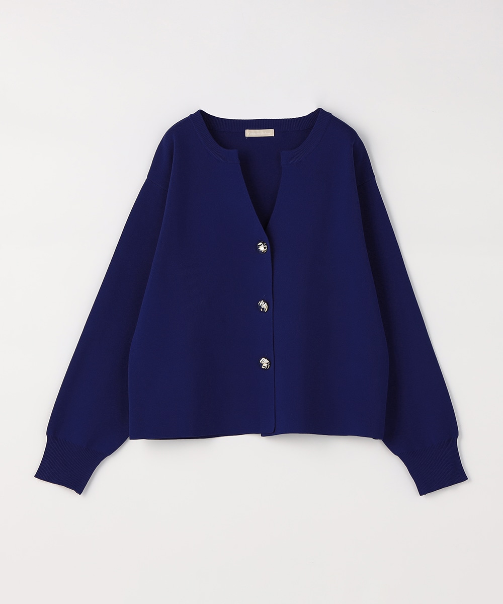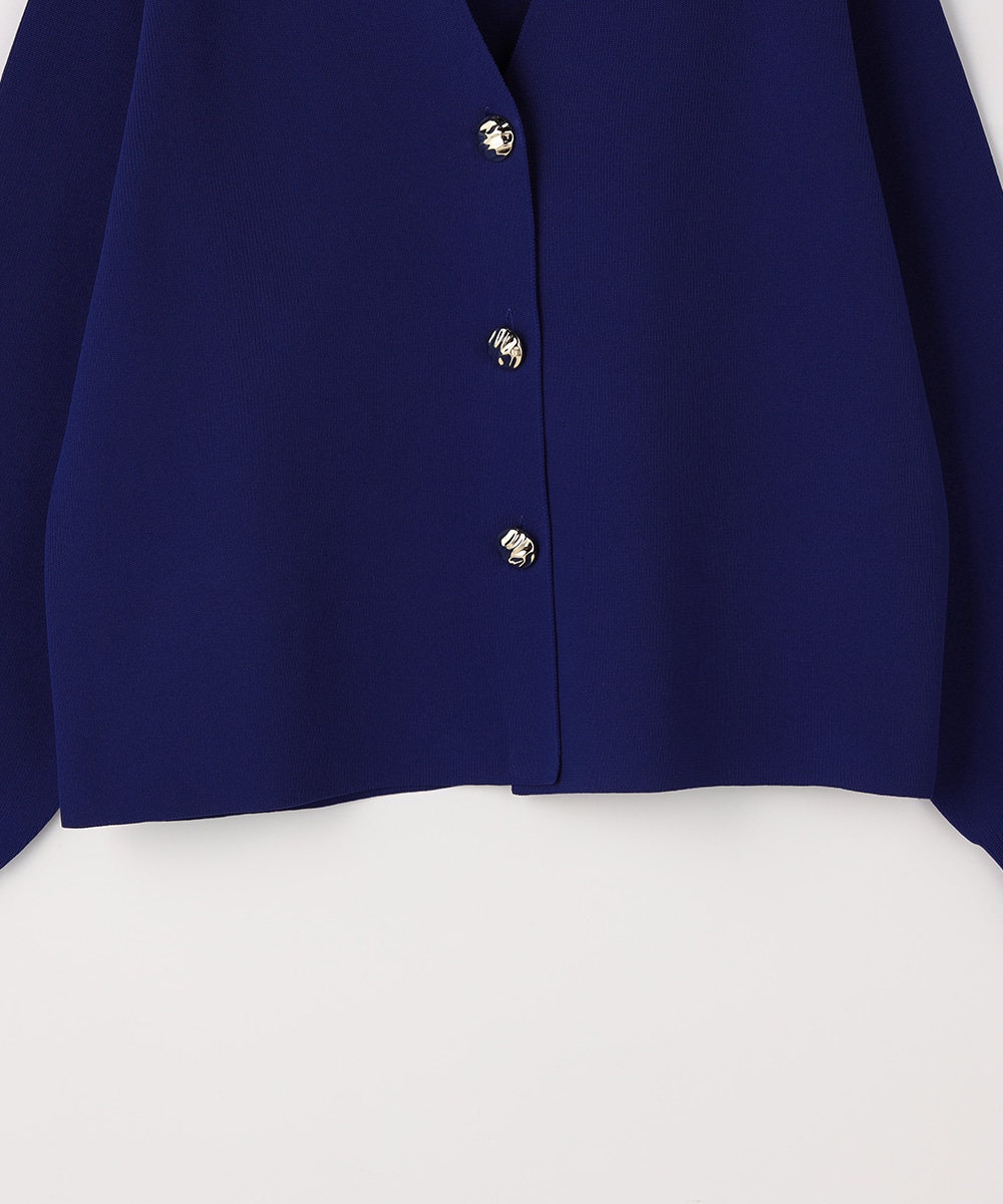 大ぶりのメタルボタンがアクセント。春のコーディネートにもおすすめのカーディガン。