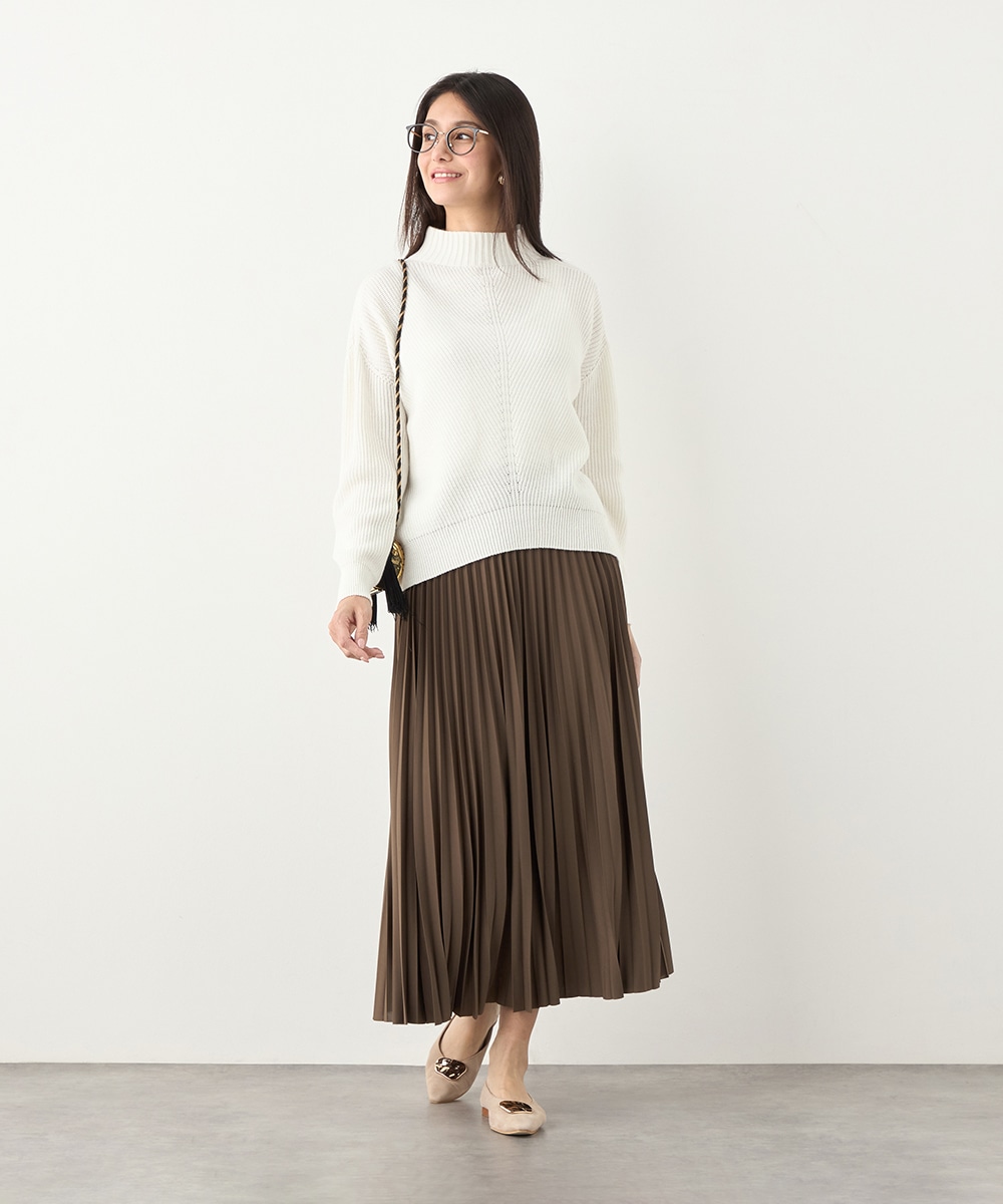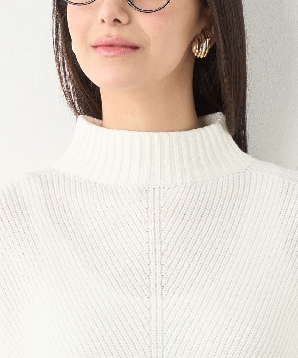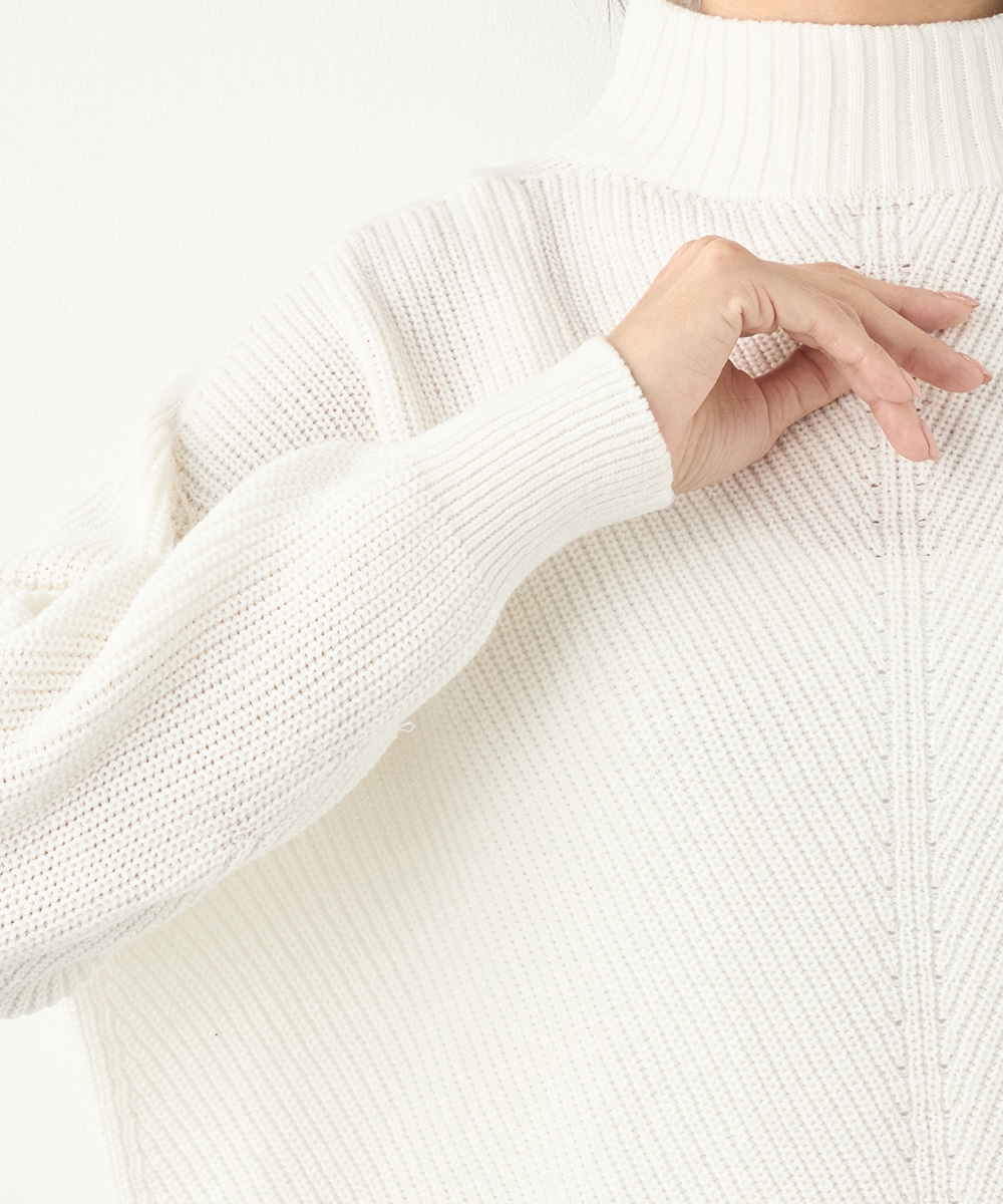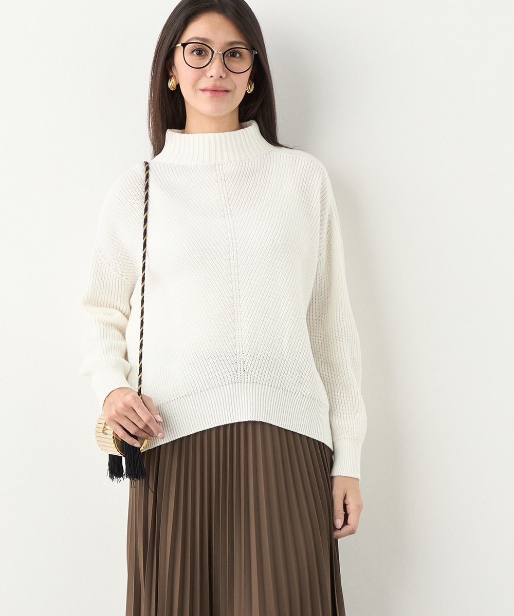 綿混糸を表情豊かに編み上げています。魚沼産ならではのソフトな風合いも魅力です。装飾は省き、着こなしやすいシンプルなデザインに仕上げました。シルエットはゆったりとしてリラックス感があり、トレンドにもマッチ。定番のオフホワイトはもちろん、ややスモーキーなミントやラベンダーのきれいなカラーもおすすめです。