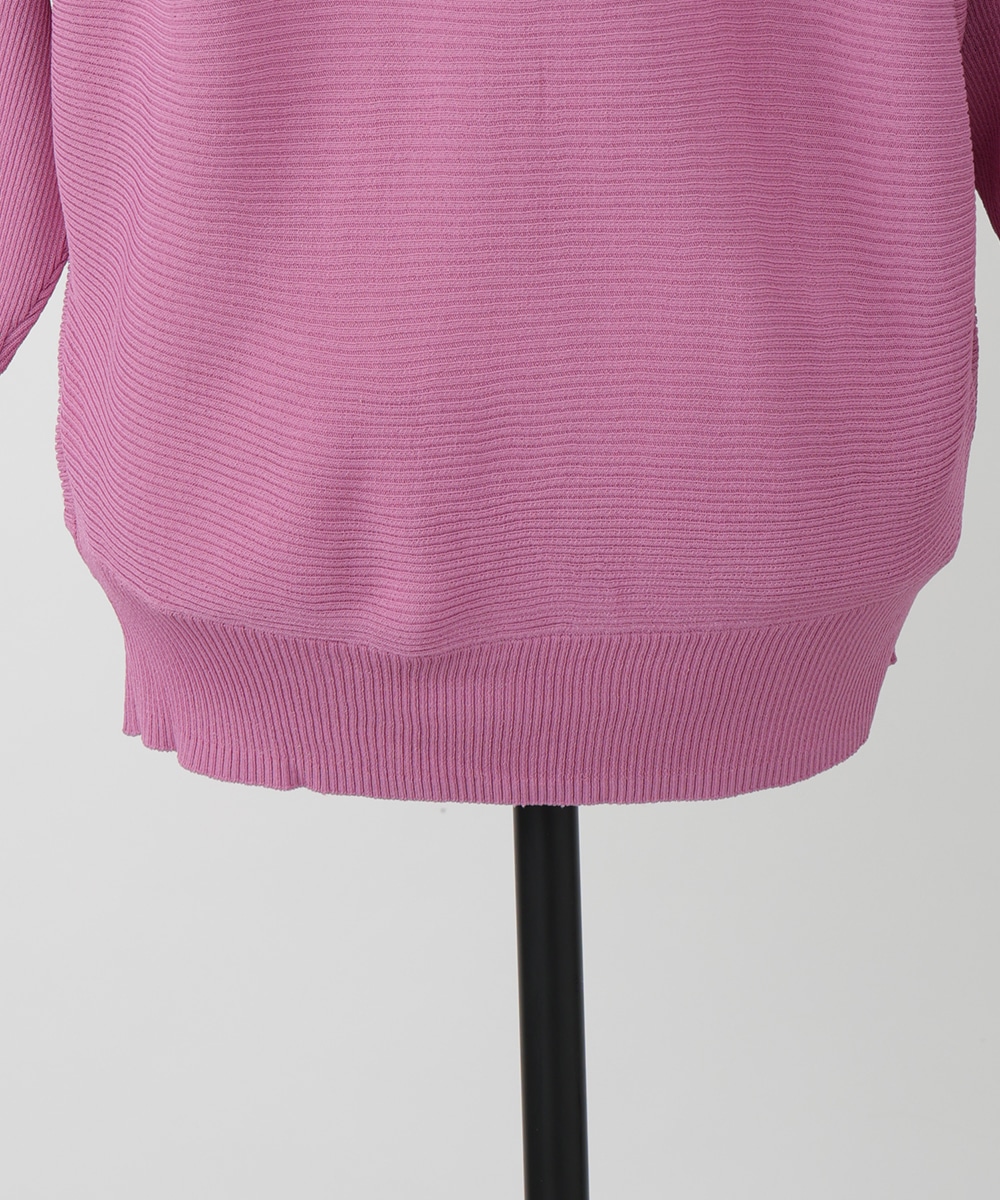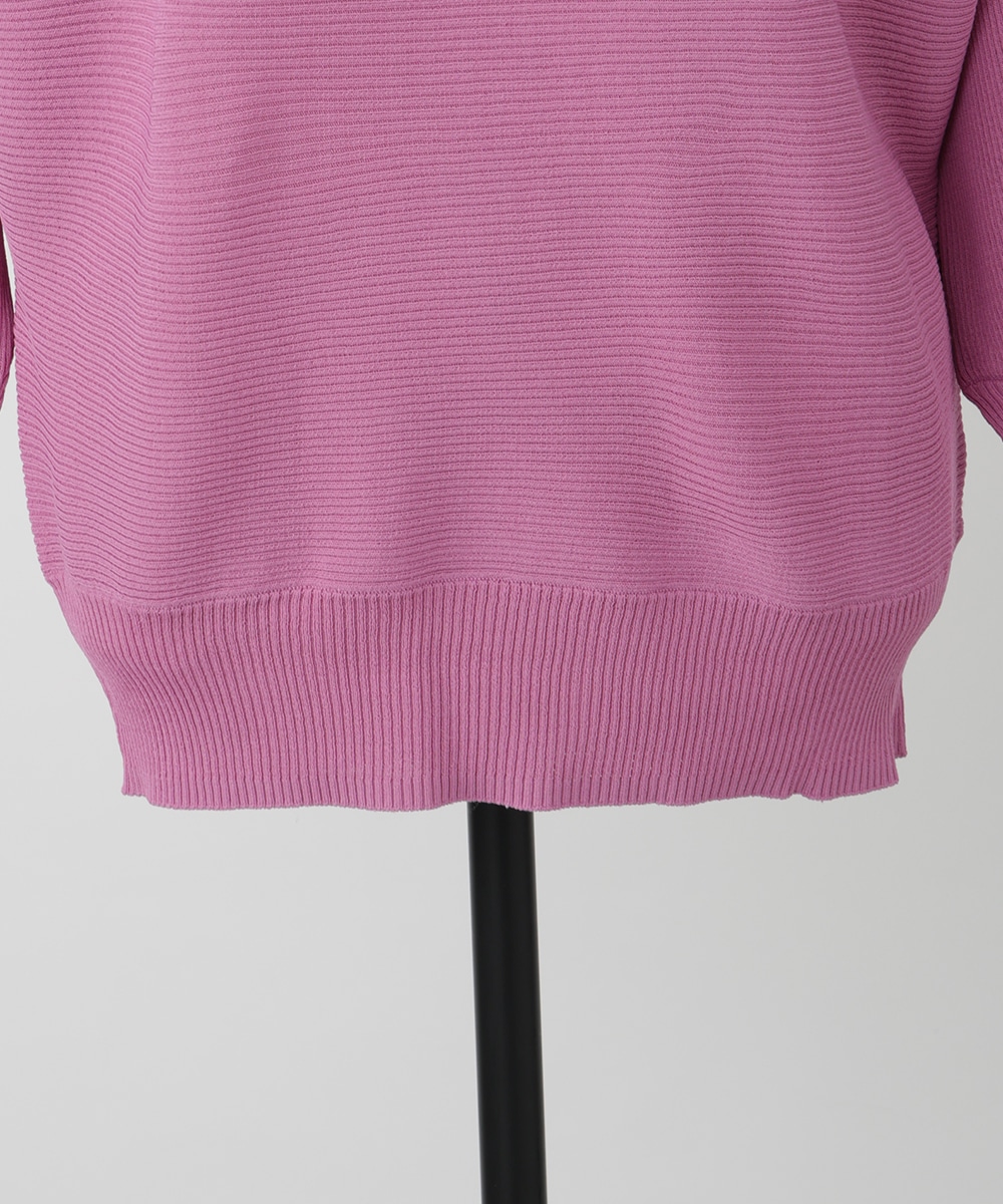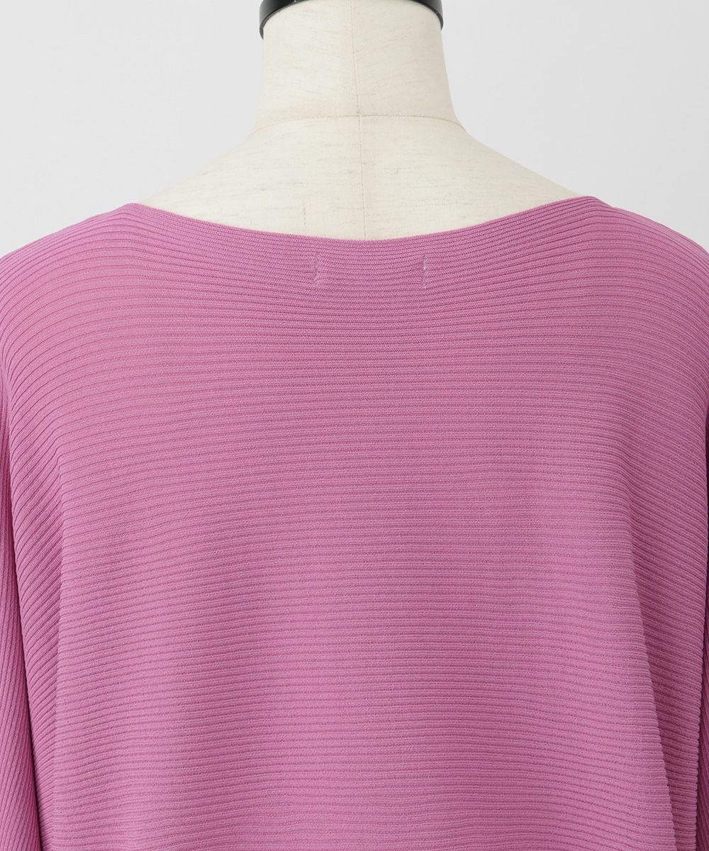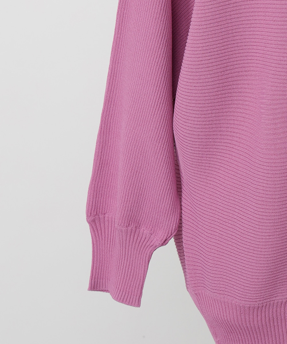 横方向に畝が走るリブ編みで、表情のある風合いに仕上げたドルマンニット。首元はボートネックになっており、すっきりとしたネックラインを演出します。やや短めの袖丈が程よい抜け感をプラス。スカートやパンツなど、合わせるボトムスによって印象の変化を楽しめるアイテムです。