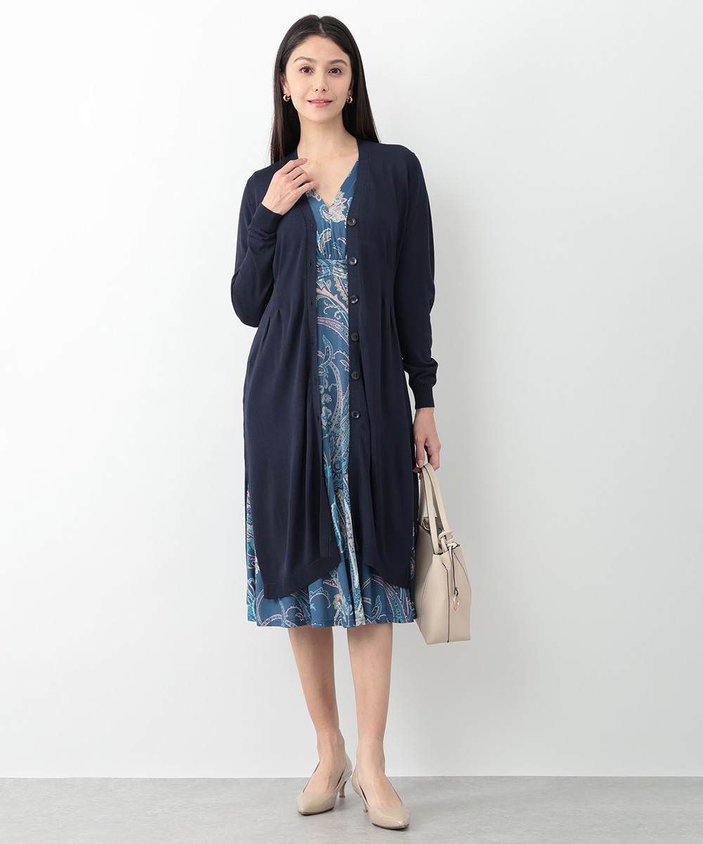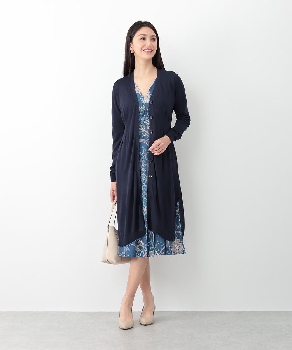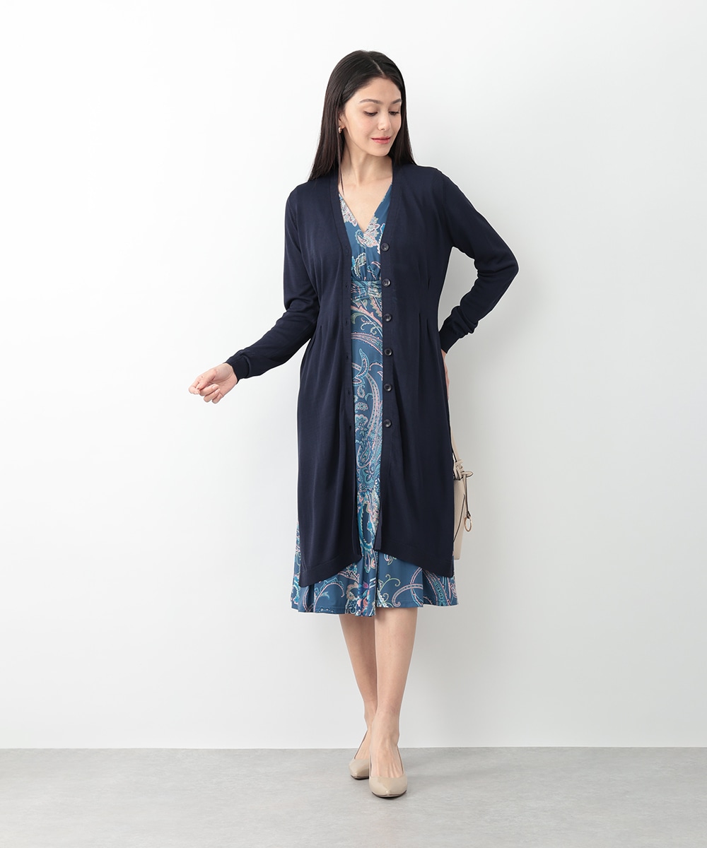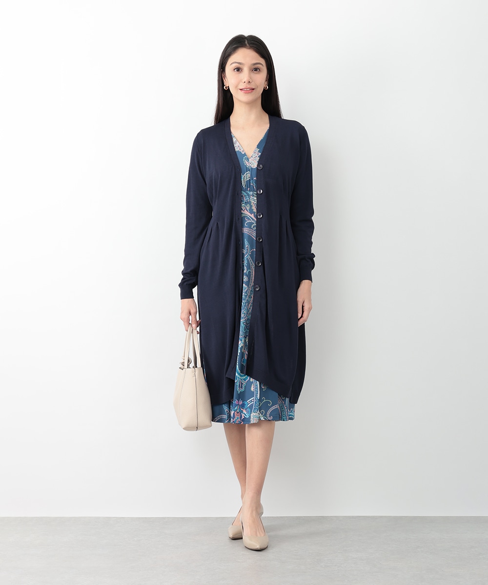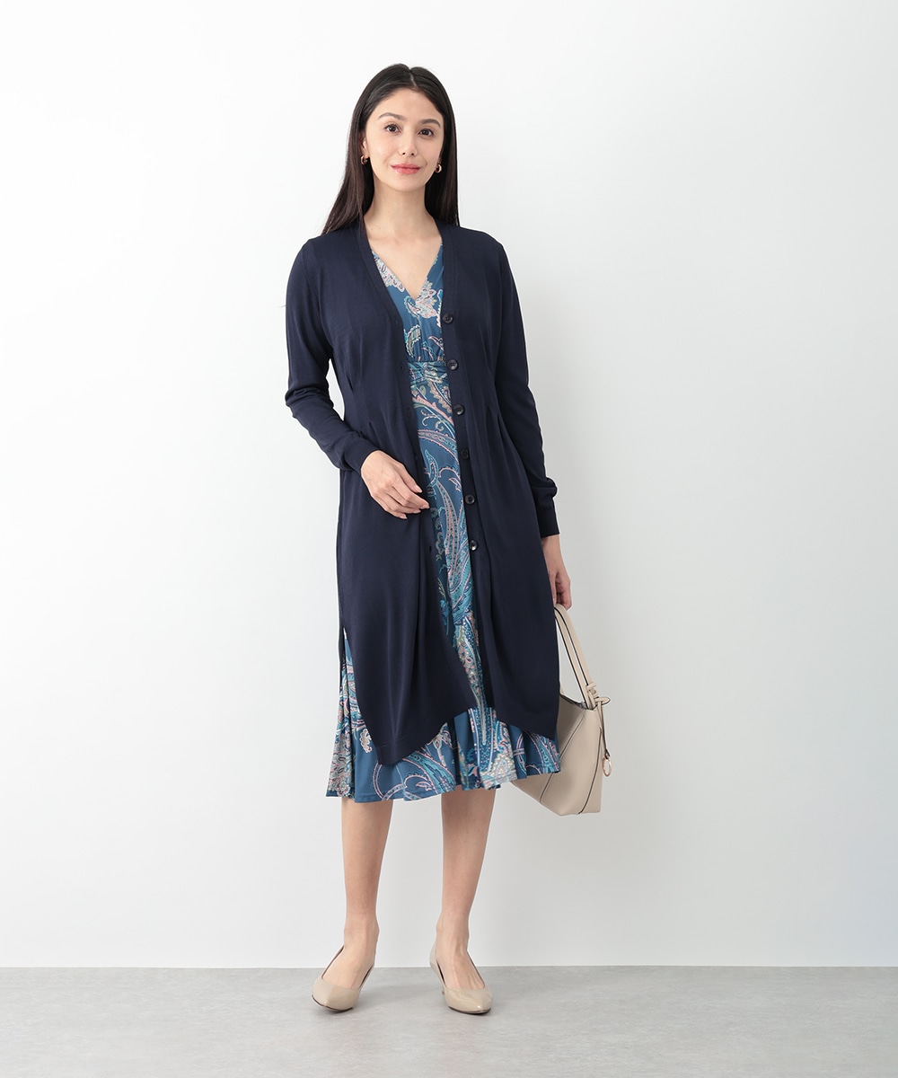 ウエストにかけてシェイプするタックが寄せられたロングカーディガン。サイドの裾にはざっくりとしたスリットを施し、ロング丈ながらも抜け感のあるスタイリングを楽しめます。お手持ちのカットソーやブラウスにレイヤードした着こなしがおすすめ。季節の変わり目のお出かけスタイルに重宝するアイテムです。