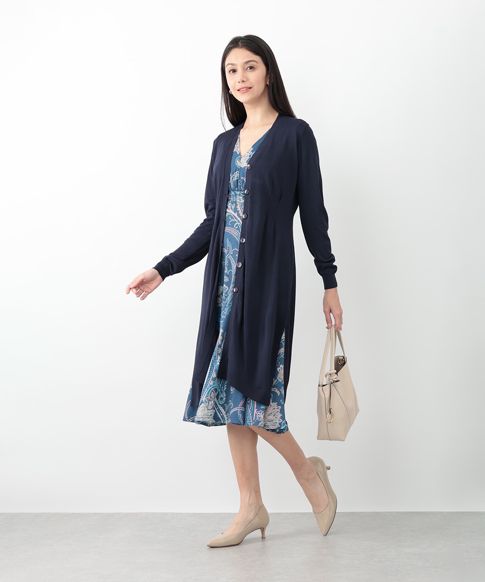 ウエスト切り替えで美シルエットを楽しめるロングカーディガン。