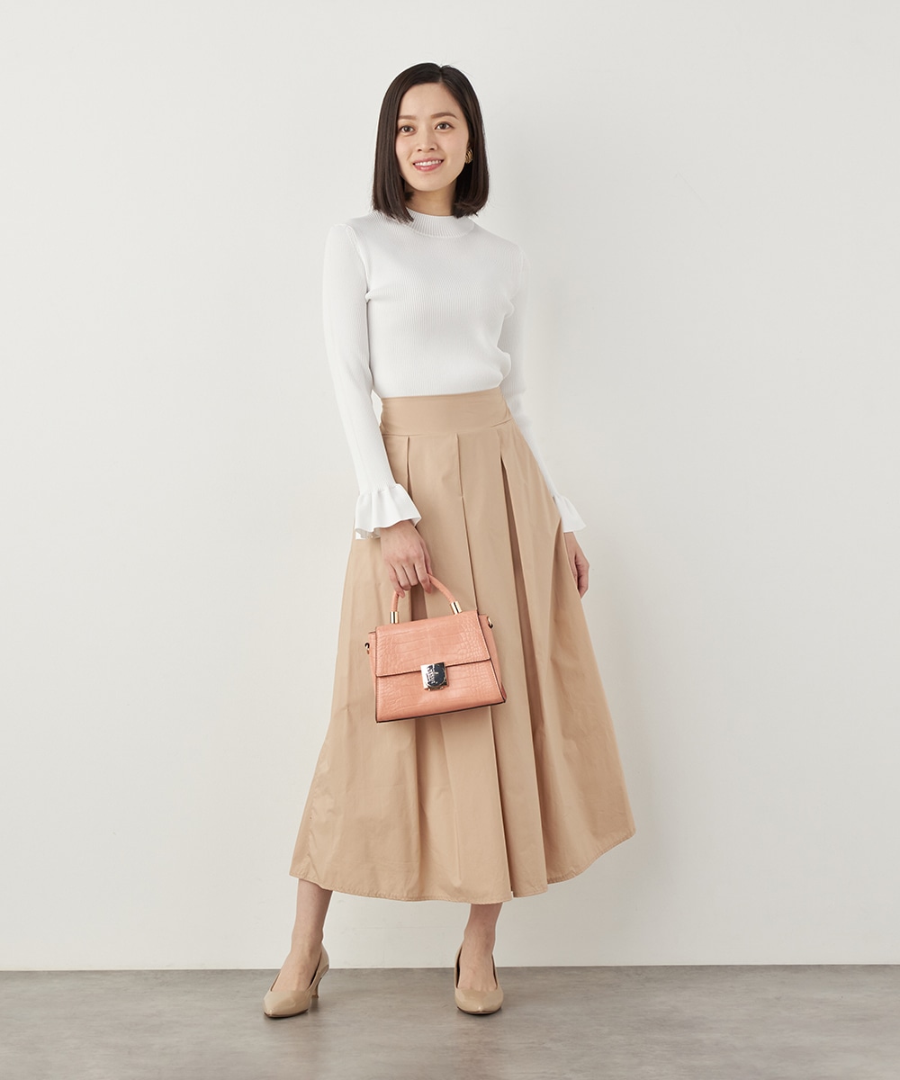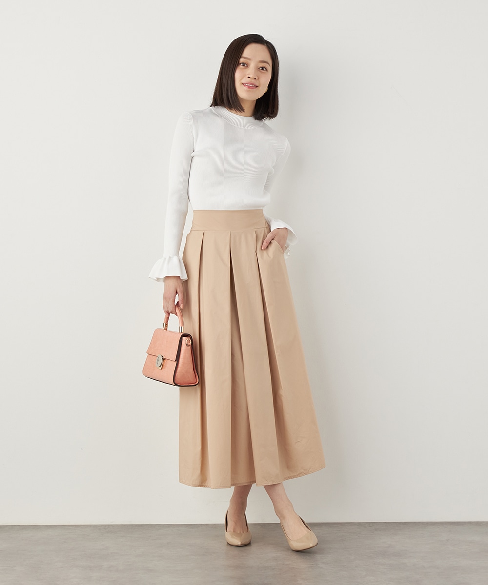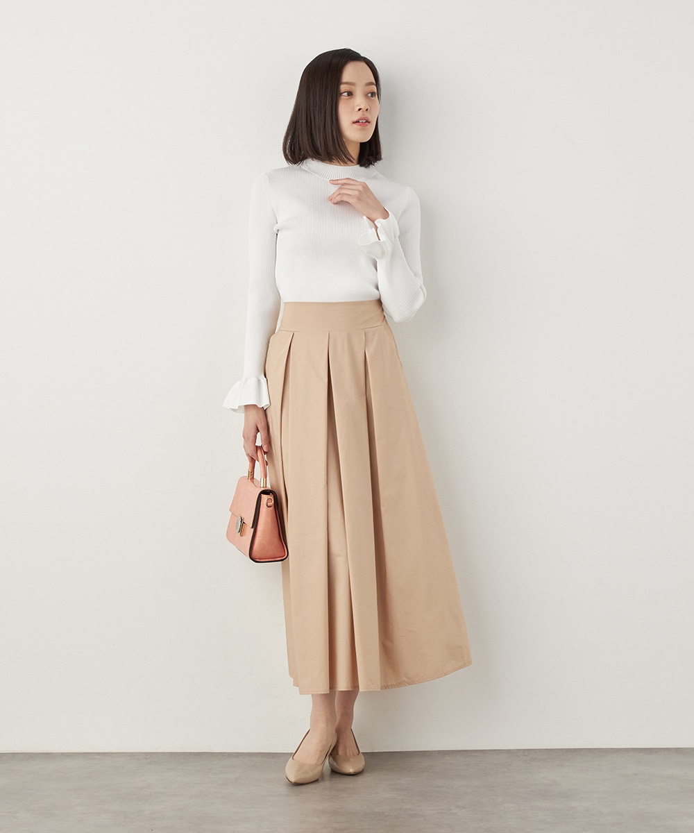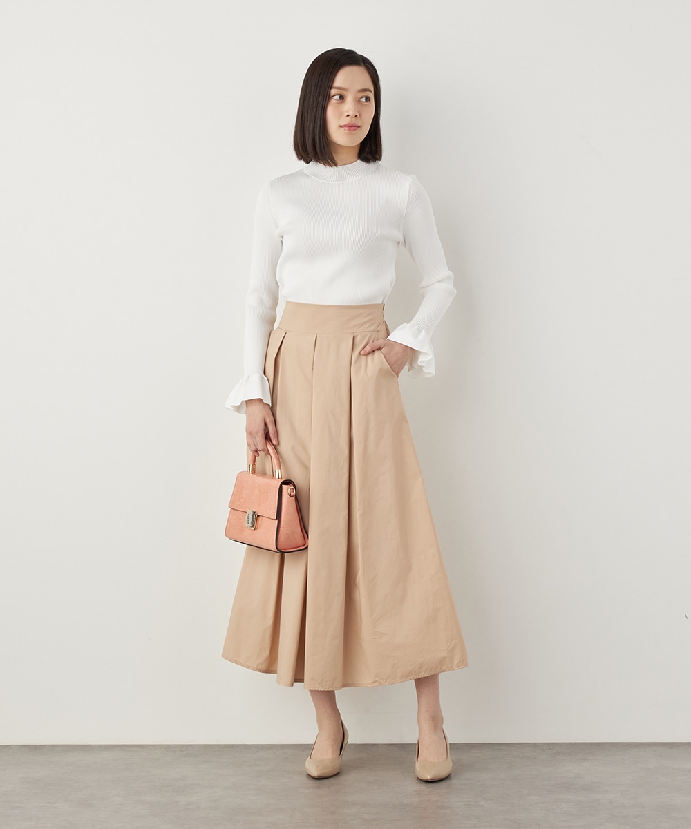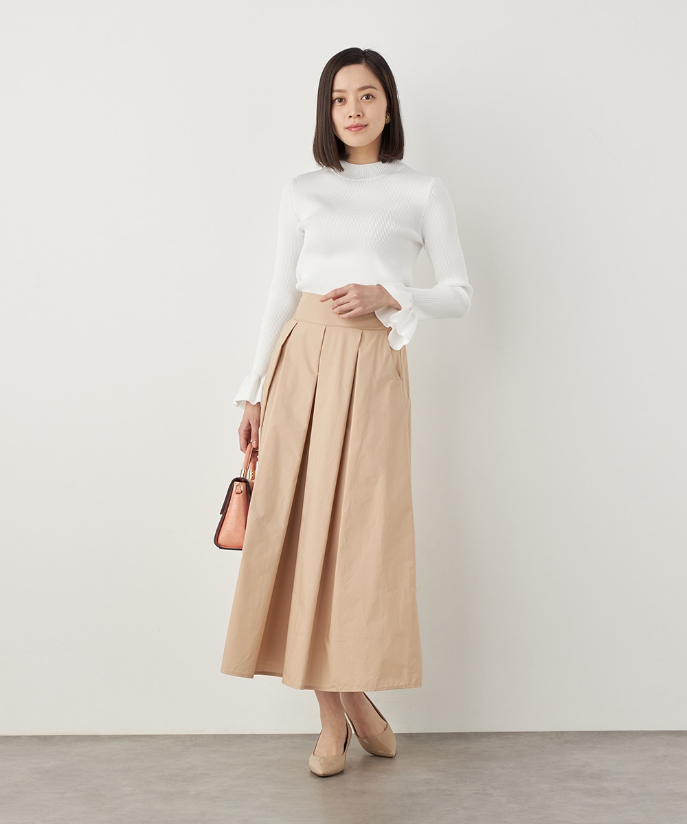 細リブ編みと細身のシルエットのすっきりとした印象に、フリルの存在感が際立ちます。大人っぽく上品に着こなせるハイネックを採用。単色使いでシンプルにまとまり、着こなしやすさも魅力のアイテムです。一枚着としてはもちろん、サロペットやコンビネゾンとも合わせられます。