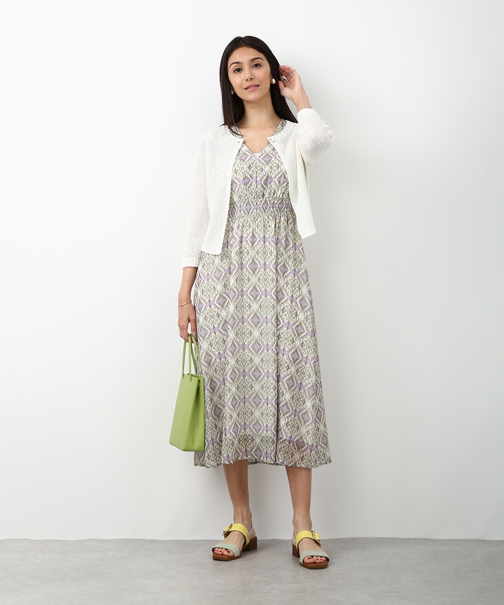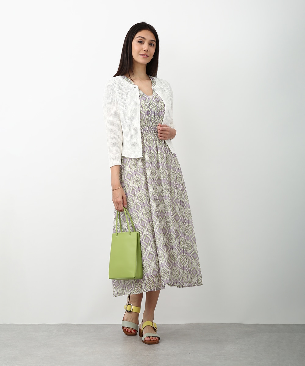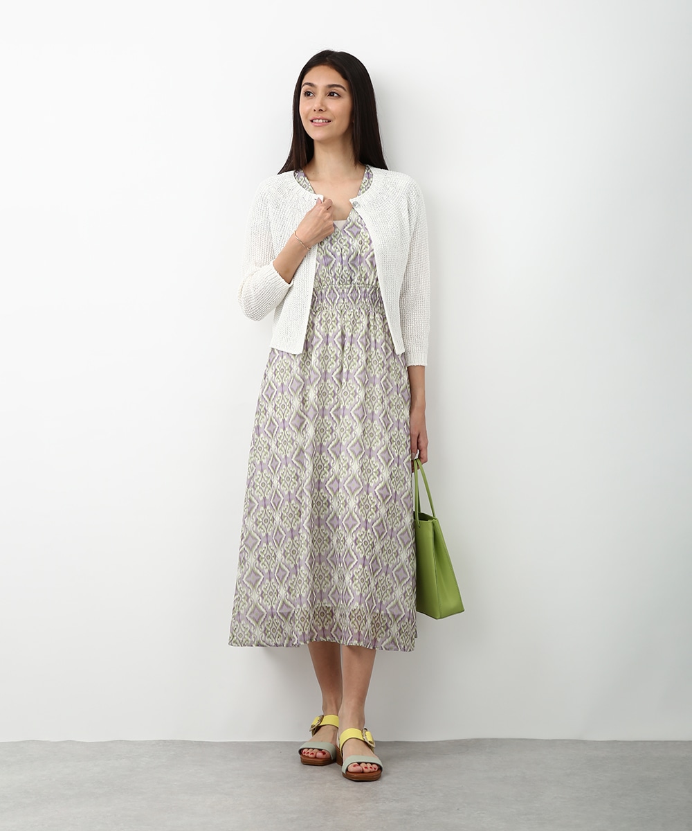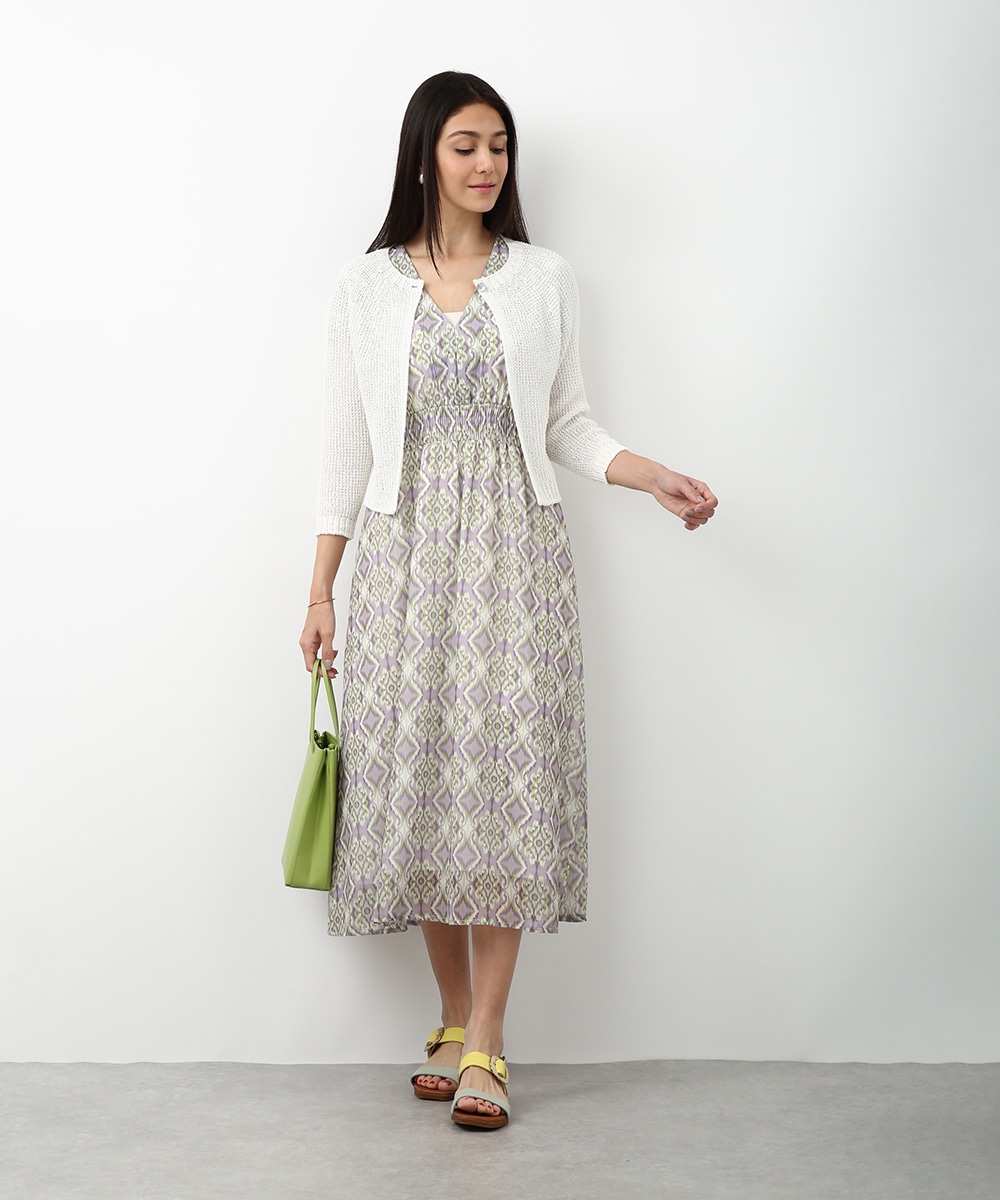 表情のある編み柄と立体的な風合いが魅力のホールガーメントボレロ。縫い目のない仕立てで肌あたりがやさしく、すっきりとしたシルエットで取り入れやすい一枚です。カミファインシリーズのツムギを使用。程よいざっくり感と、シェル釦、魚沼製の丁寧でやさしいモノづくりが伝わる一枚。スカート合わせでやわらかい印象を引き立てるスタイルもおすすめです。