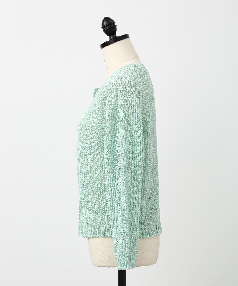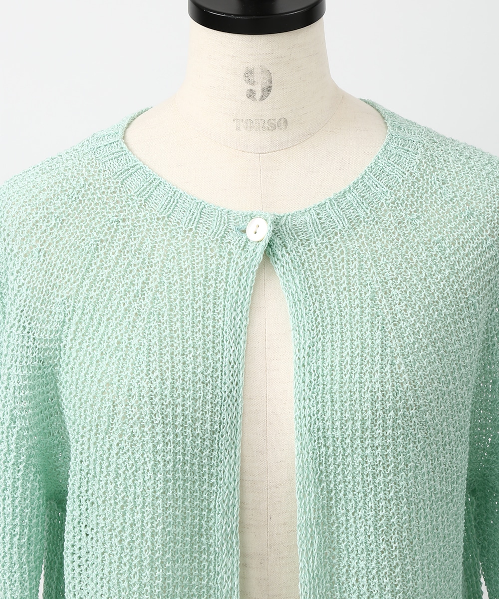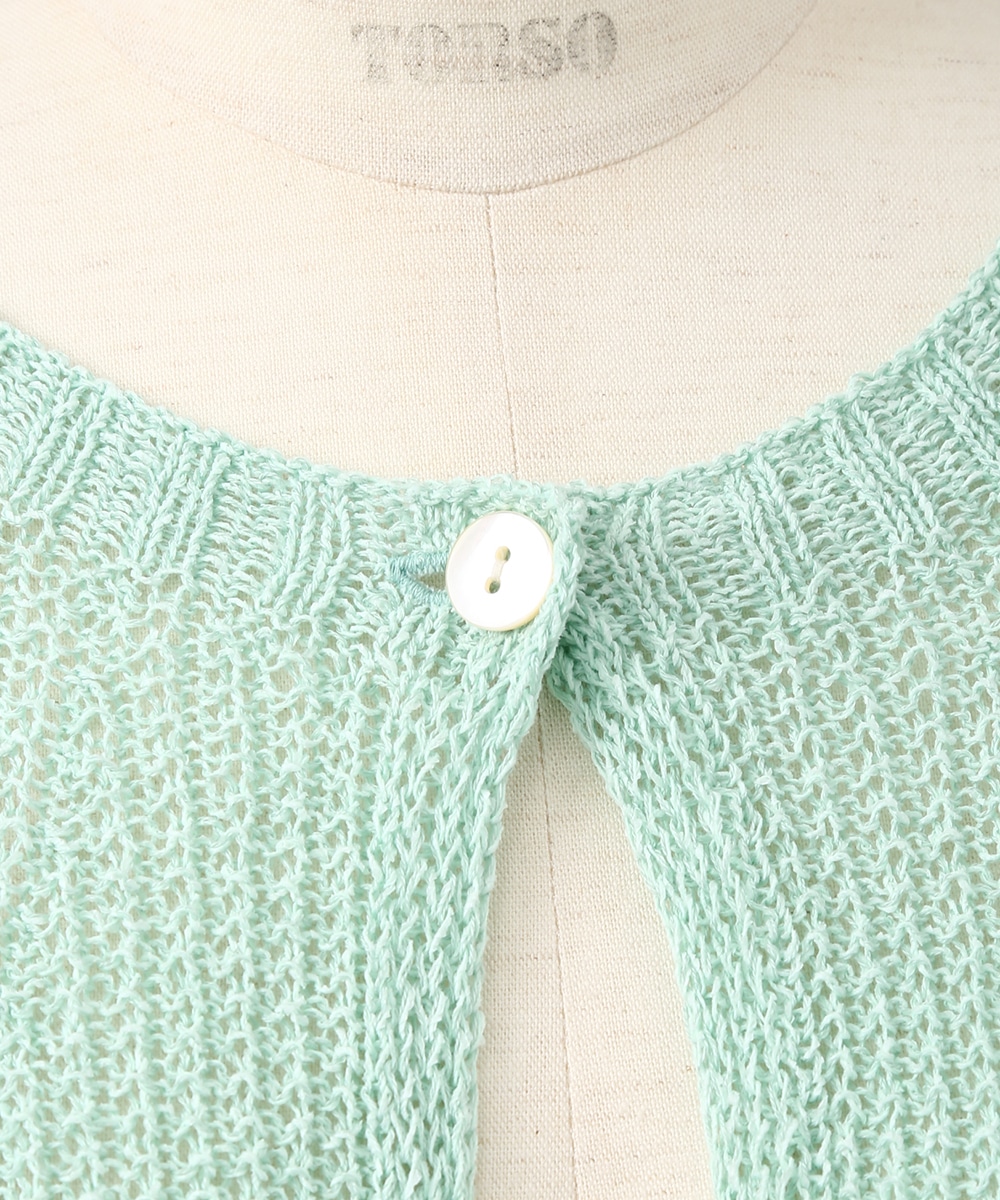 表情のある編み柄と立体的な風合いが魅力のホールガーメントボレロ。縫い目のない仕立てで肌あたりがやさしく、すっきりとしたシルエットで取り入れやすい一枚です。カミファインシリーズのツムギを使用。程よいざっくり感と、シェル釦、魚沼製の丁寧でやさしいモノづくりが伝わる一枚。スカート合わせでやわらかい印象を引き立てるスタイルもおすすめです。