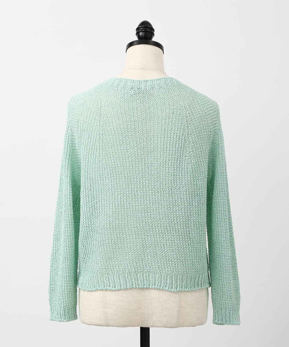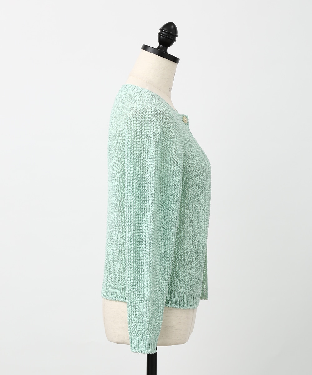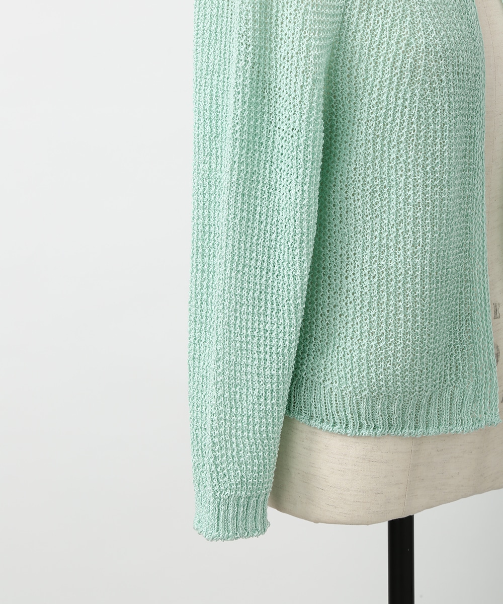 表情のある編み柄と立体的な風合いが魅力のホールガーメントボレロ。縫い目のない仕立てで肌あたりがやさしく、すっきりとしたシルエットで取り入れやすい一枚です。カミファインシリーズのツムギを使用。程よいざっくり感と、シェル釦、魚沼製の丁寧でやさしいモノづくりが伝わる一枚。スカート合わせでやわらかい印象を引き立てるスタイルもおすすめです。