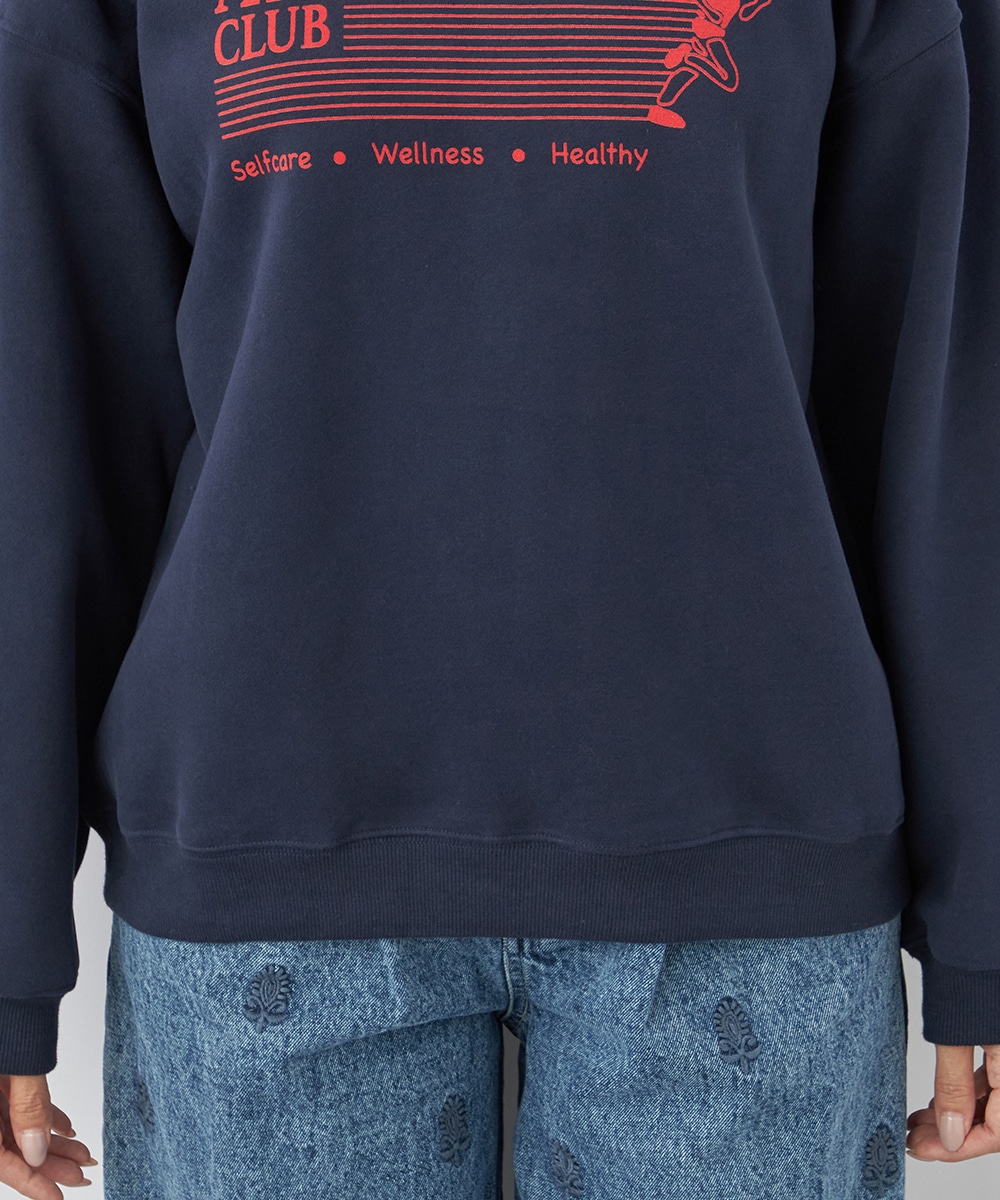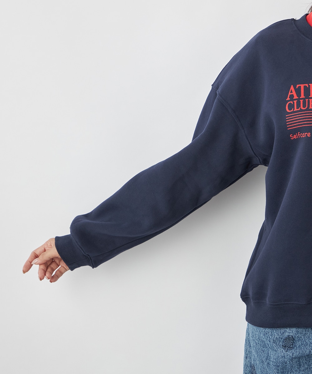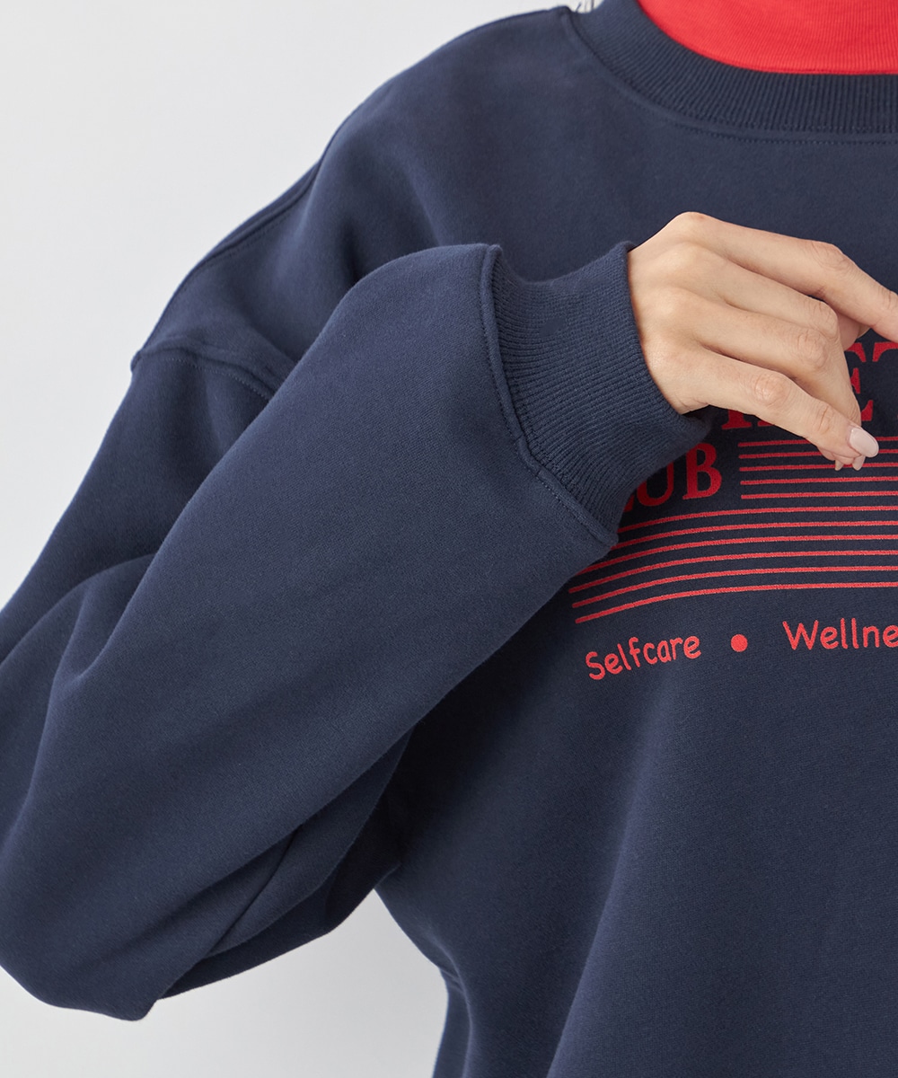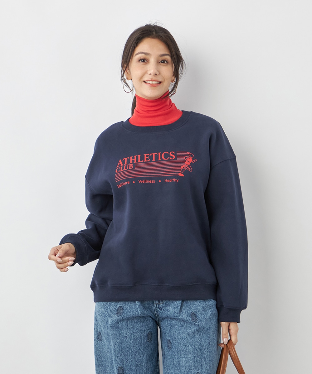 ネイビー×レッドの配色が、フェミニンさや上品さをプラスします。ドロップショルダーとゆったりとしたサイズ感で、大人が着こなしやすいように仕上げているのもポイントです。着丈は長すぎず、ルーズに傾くことなくすっきりとまとまり、パンツともスカートとも合わせられます。