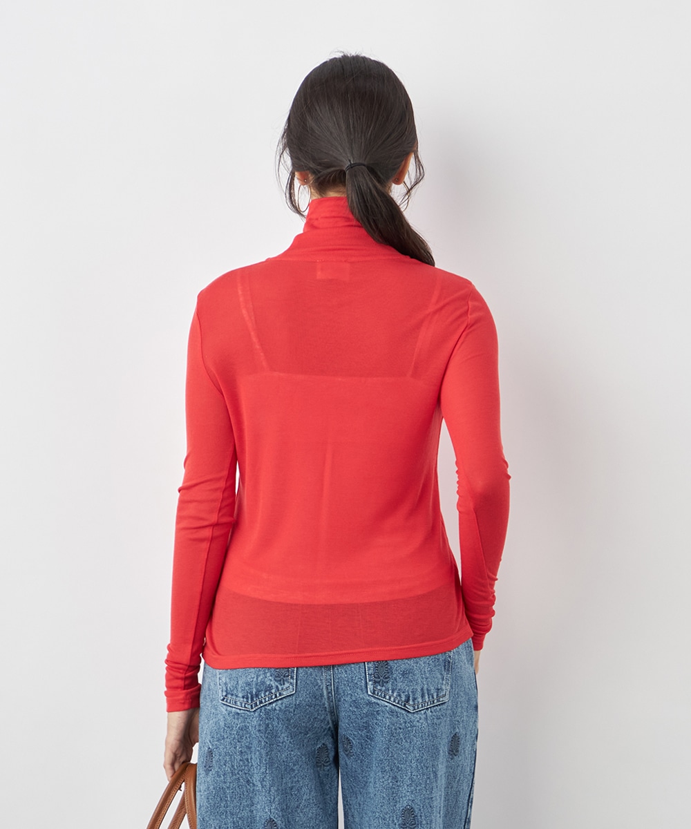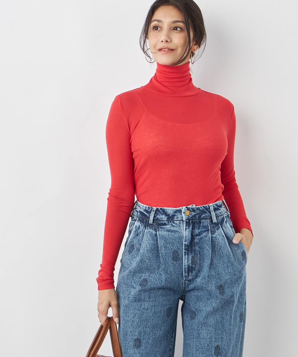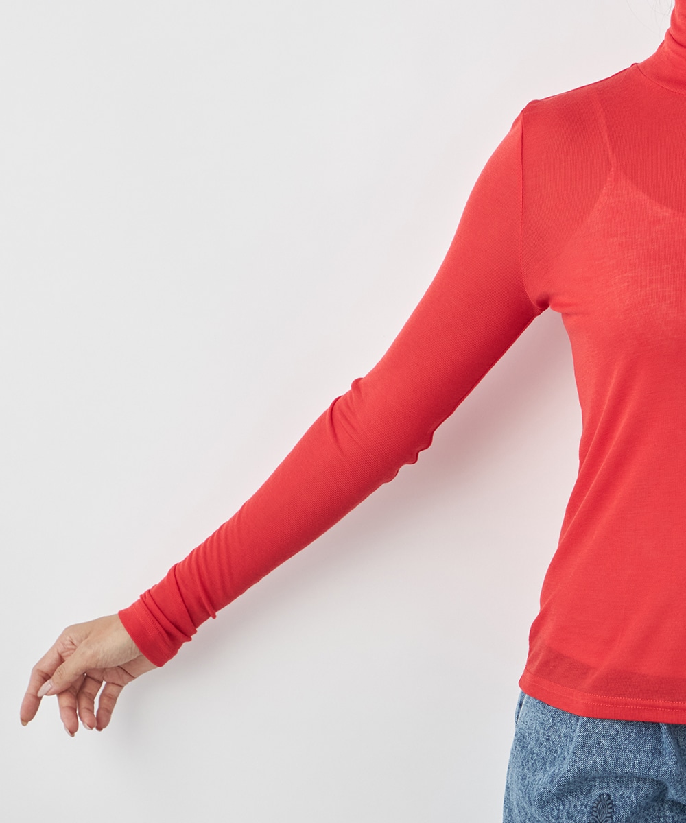 ウォーム感を印象付けて、秋冬シーズンにもぴったりなアイテムです。薄手で繊細な透け感があり、こなれた雰囲気を演出できるのも魅力。トレンドにもマッチしています。すっきりと着こなせる細身のシルエットはインナーとしても便利です。肌触りは柔らかく、心地よく着用できます。