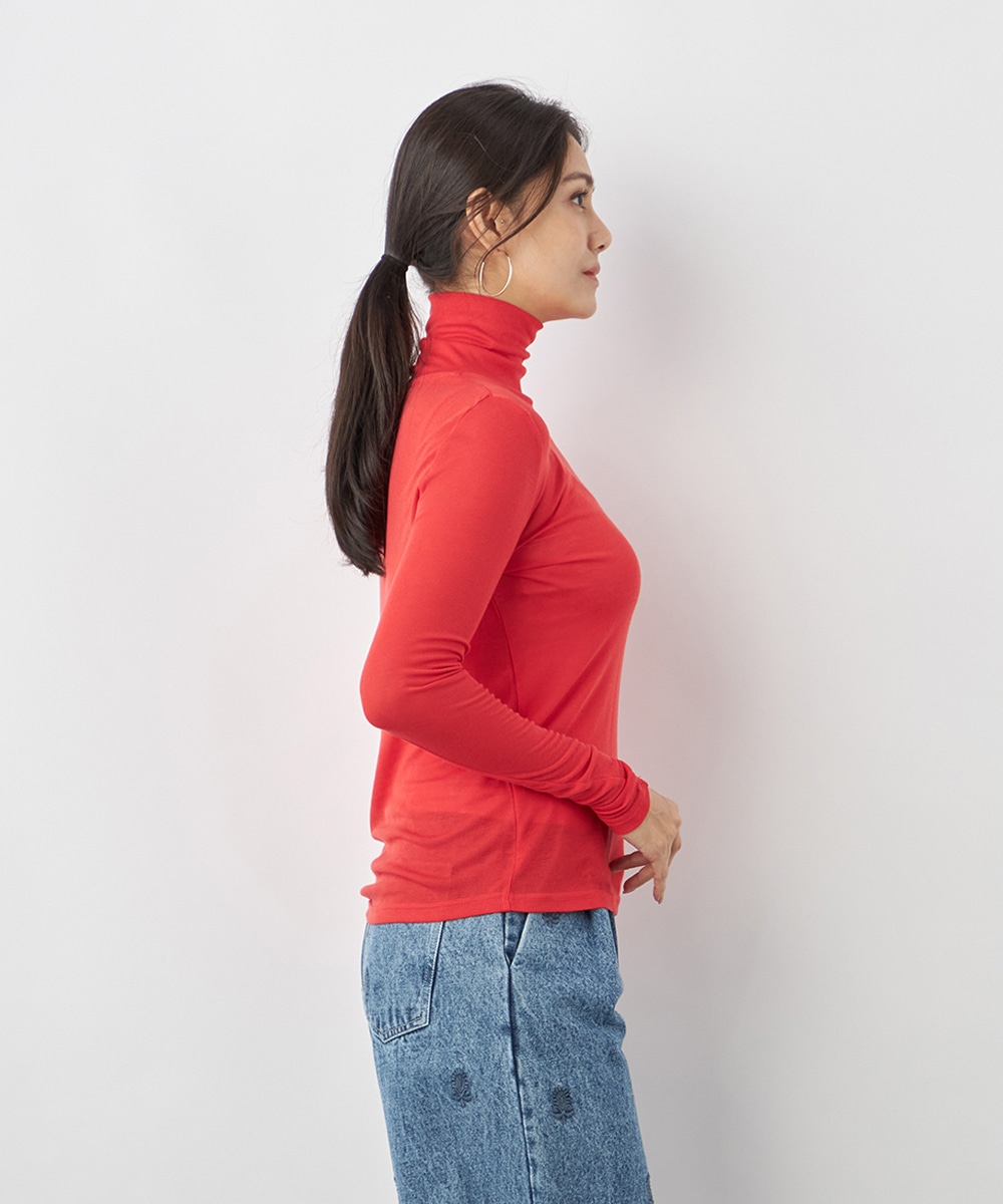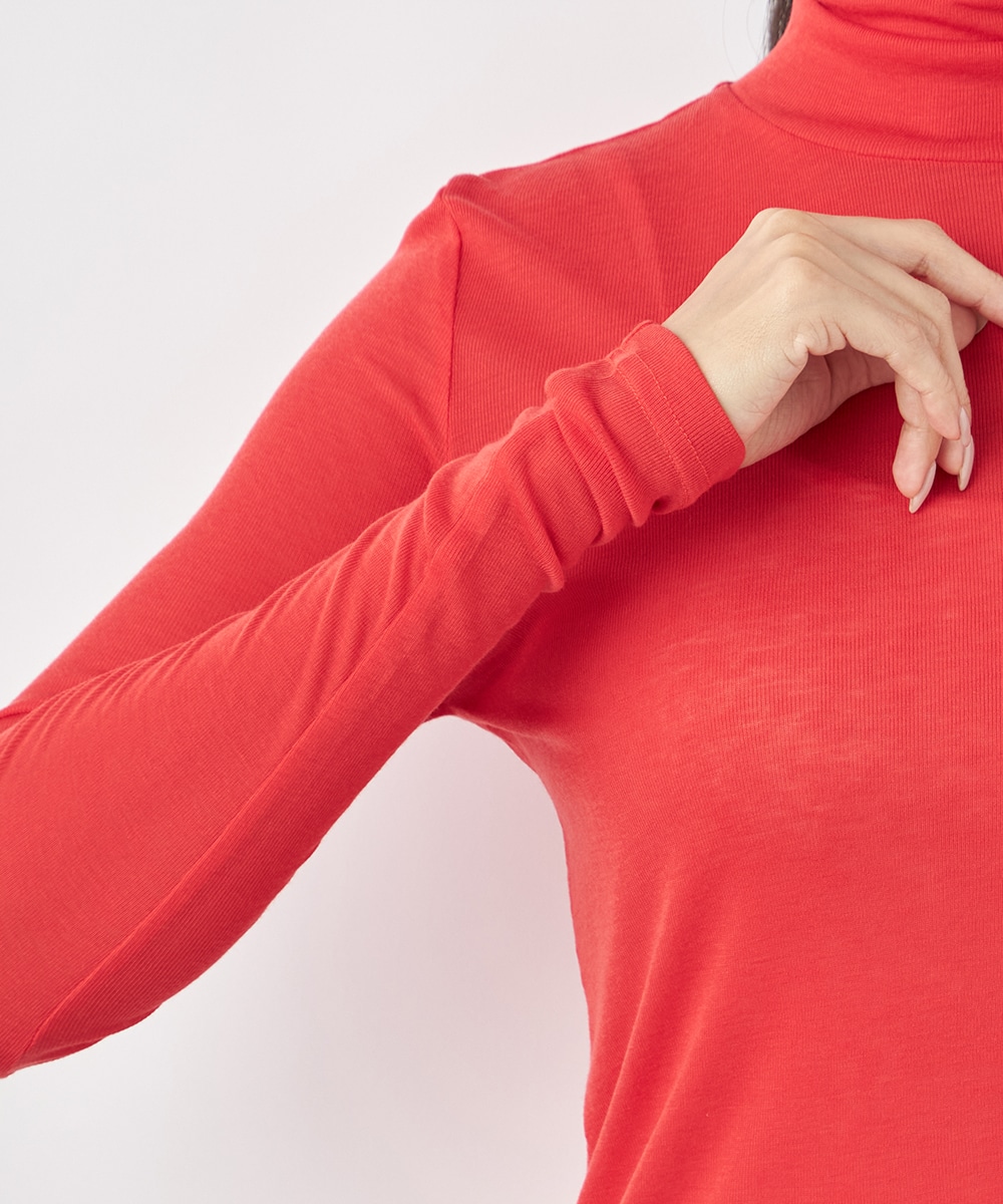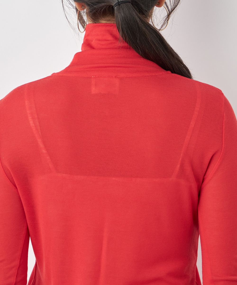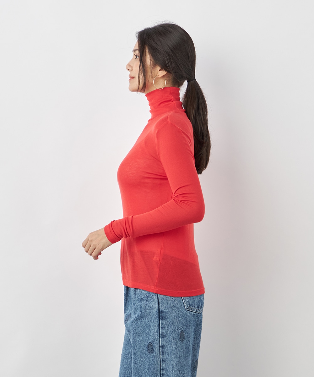 ウォーム感を印象付けて、秋冬シーズンにもぴったりなアイテムです。薄手で繊細な透け感があり、こなれた雰囲気を演出できるのも魅力。トレンドにもマッチしています。すっきりと着こなせる細身のシルエットはインナーとしても便利です。肌触りは柔らかく、心地よく着用できます。