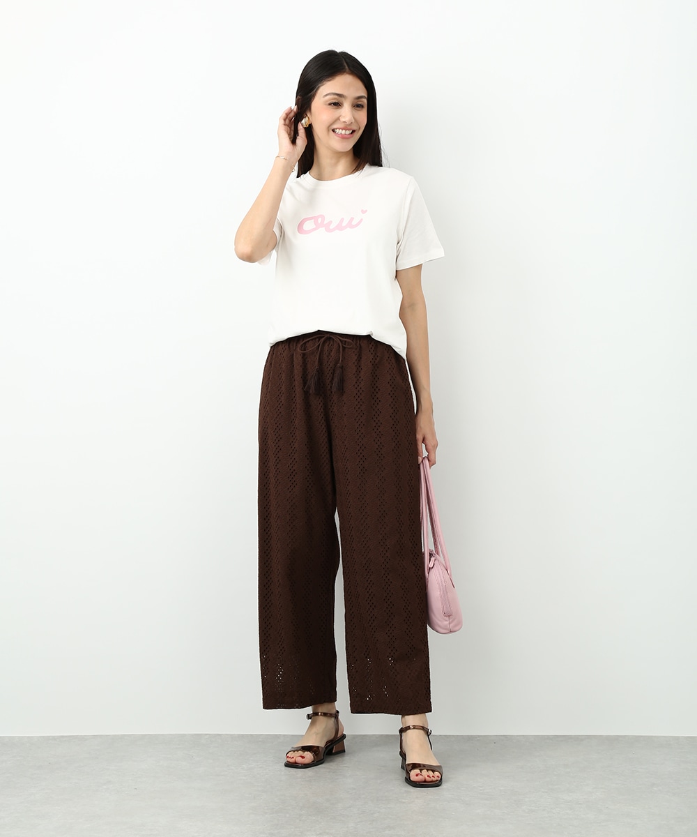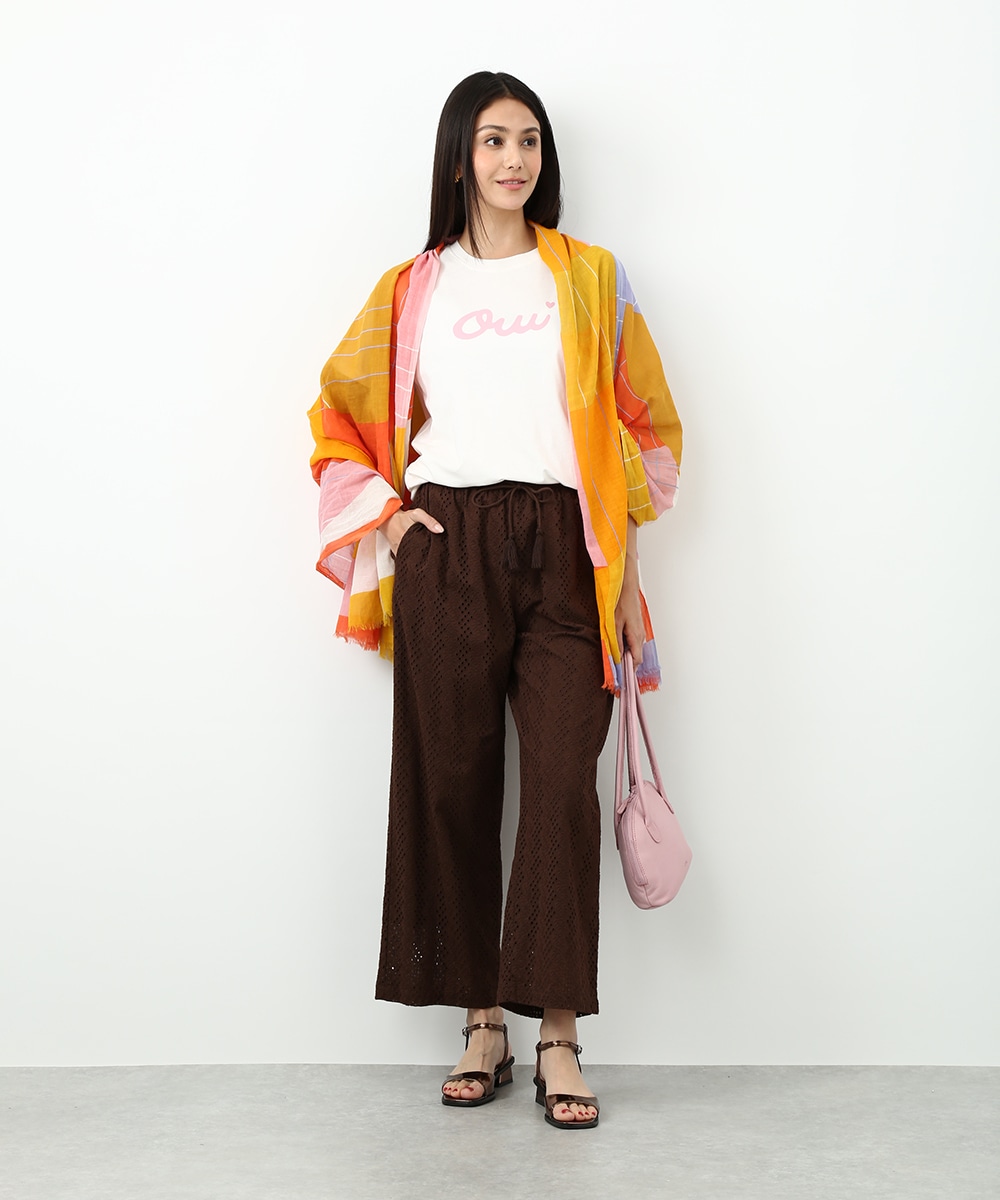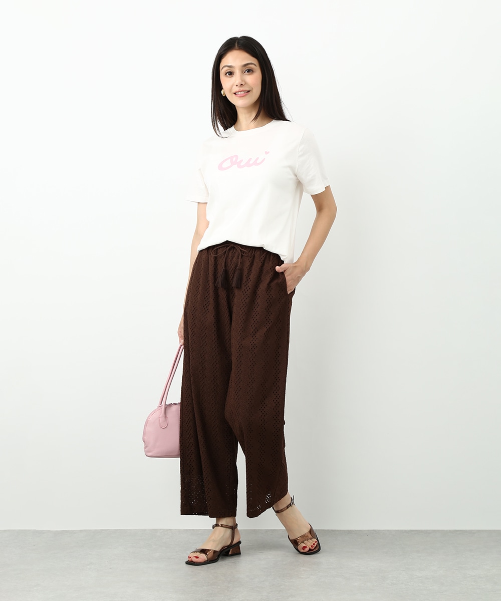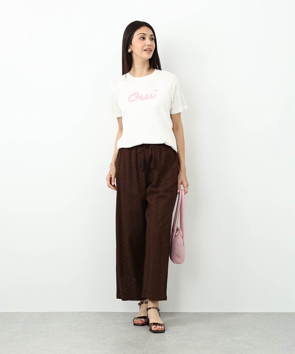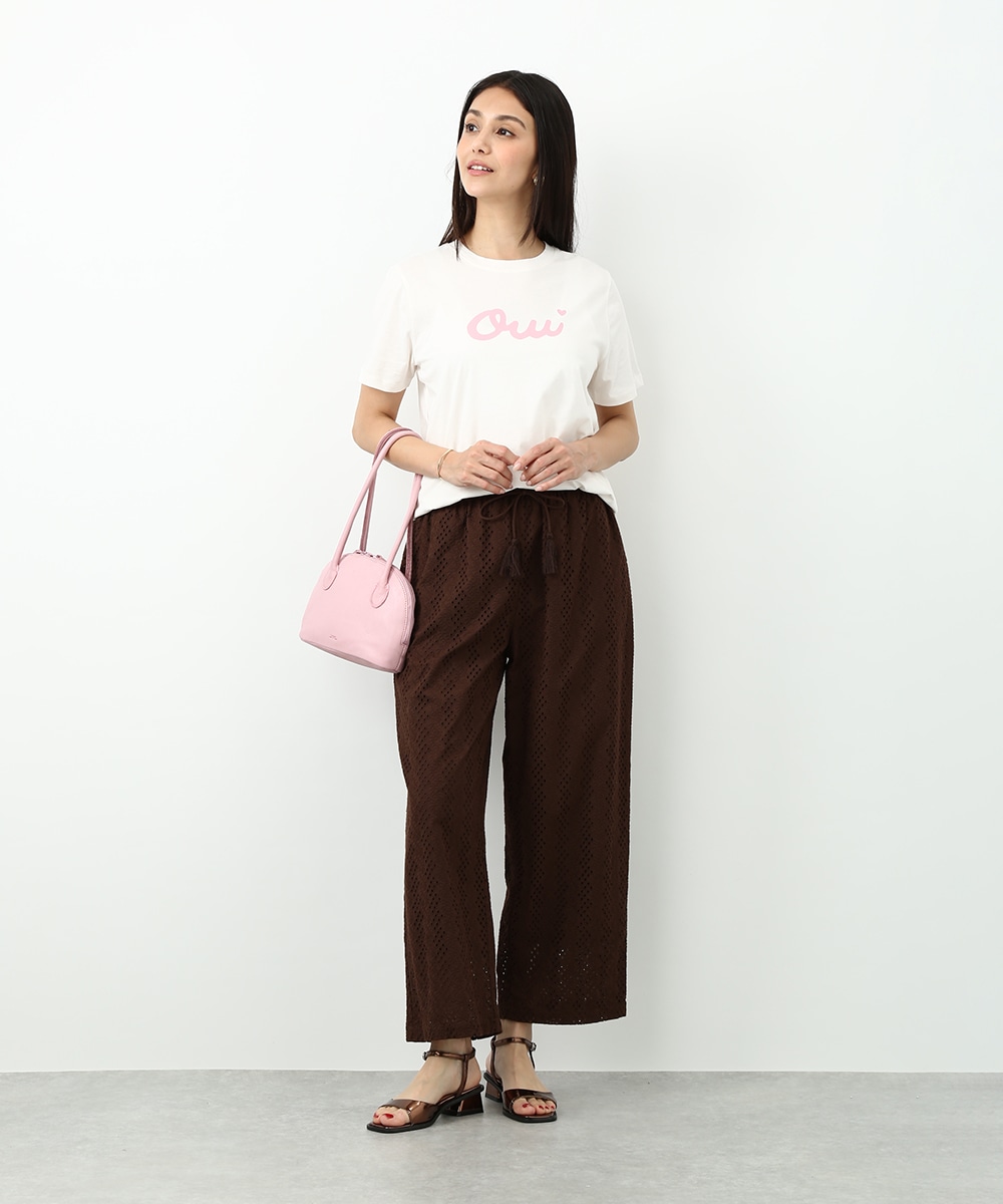 フロントにあしらったOuiロゴがポイントのTシャツ。シンプルなデザインで取り入れやすく、スタイリングに軽やかなアクセントを加えてくれます。カットワークパンツを合わせて素材の表情を引き立てつつ、カラーのスカーフを肩に掛けた着こなしもおすすめです。シンプルながらもバランスの取れたコーデに仕上がります。