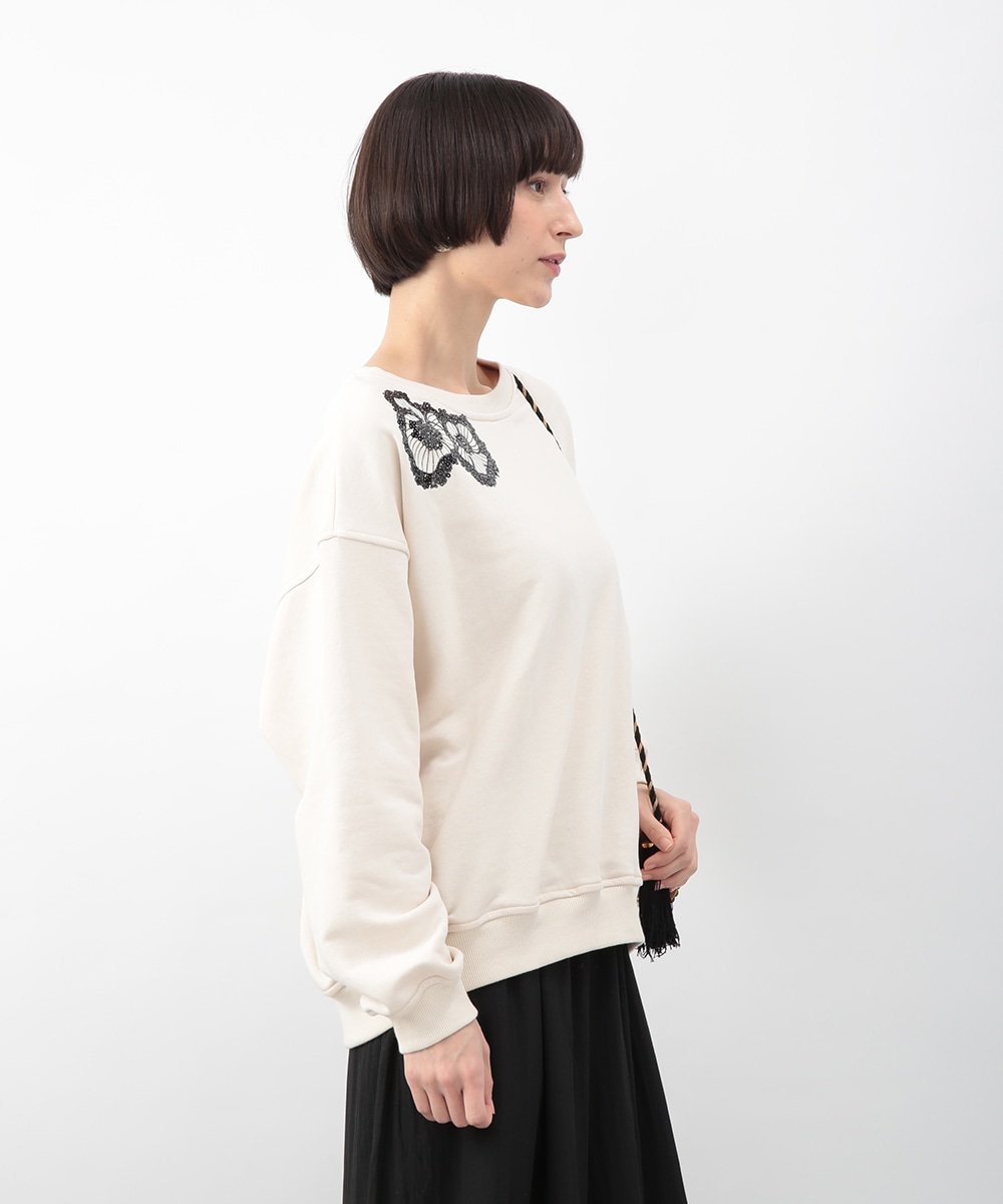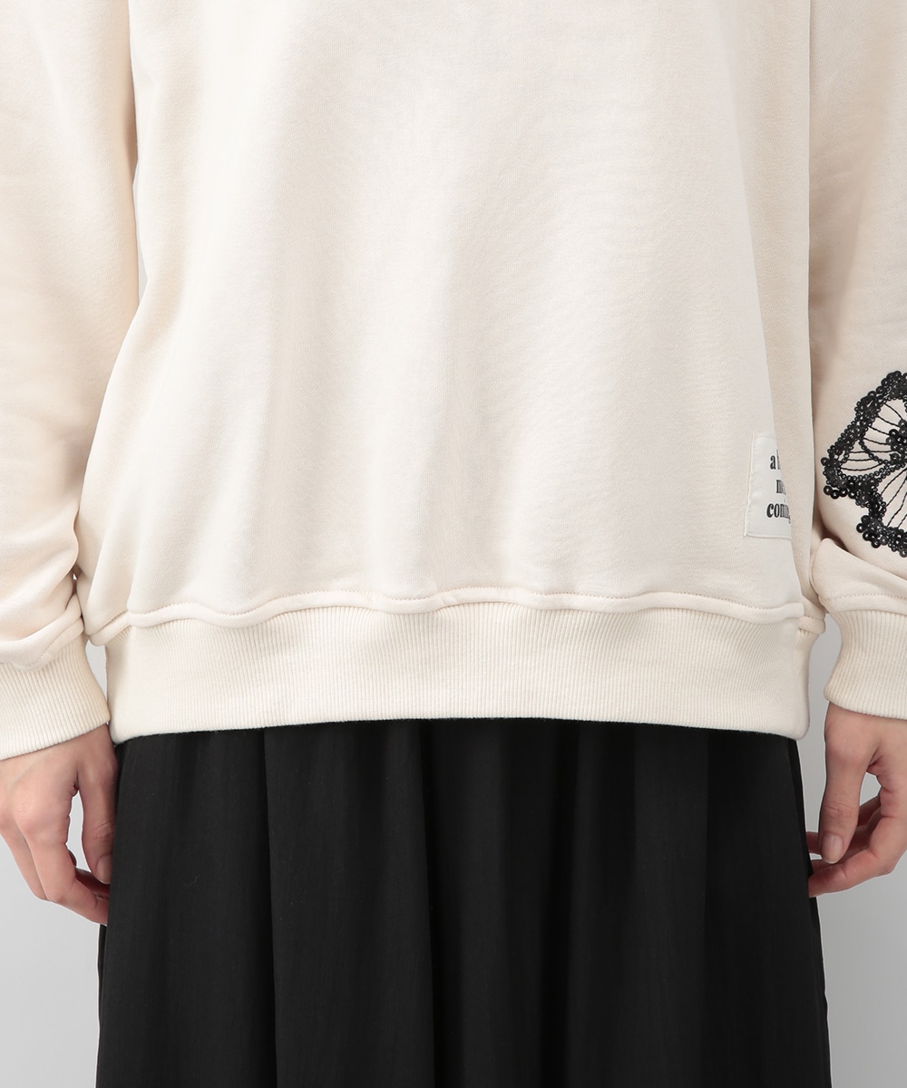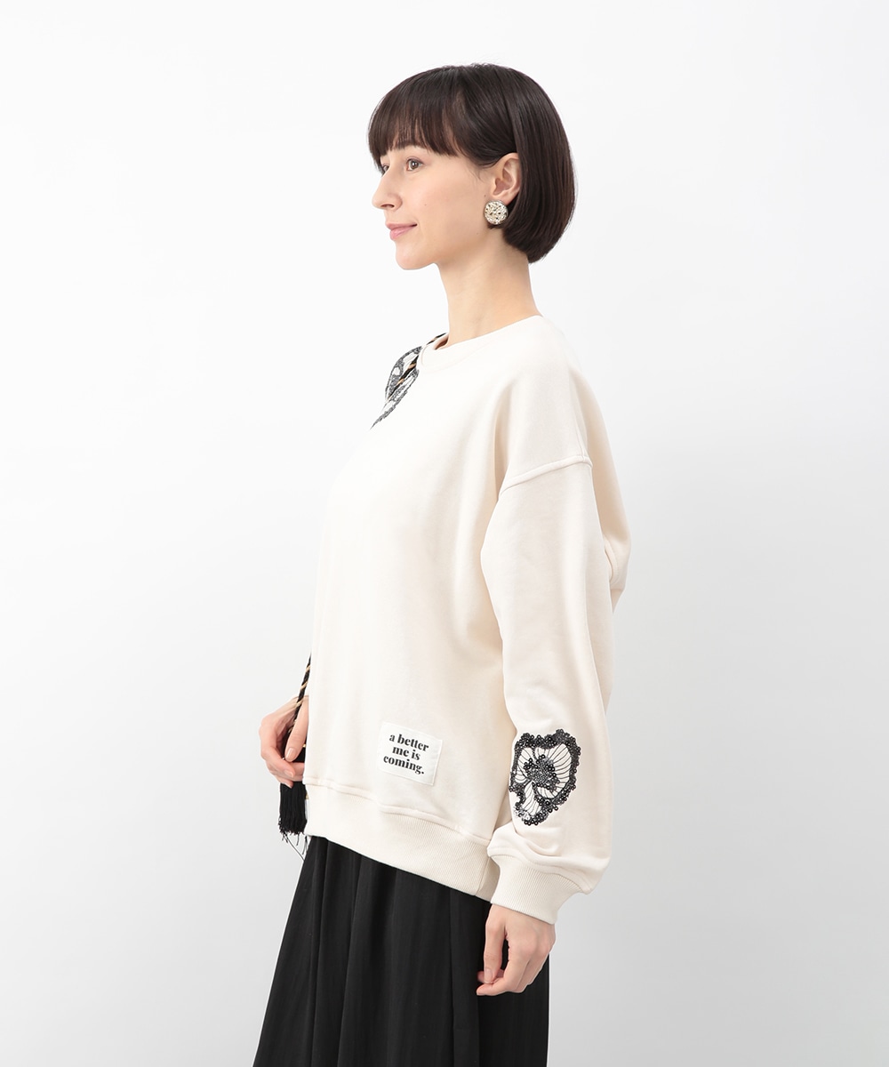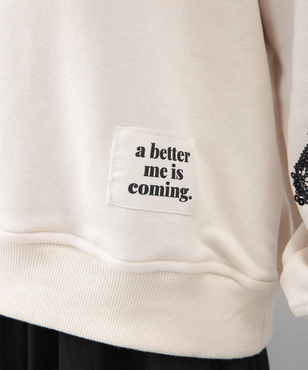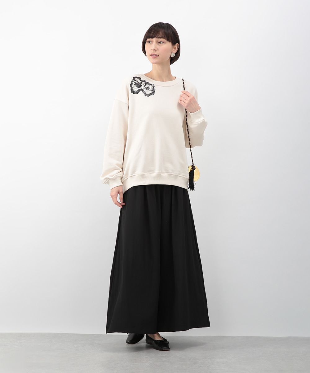 スパンコールで表現したフラワーモチーフが目を引くスウェット。立体感のあるデザインがさりげない華やかさを添え、カジュアルな中にも女性らしい印象をプラスします。ゆったりとしたシルエットでリラックス感のある着心地も魅力。スカートを合わせて上品に、デニムを穿いてラフにも取り入れやすい一枚です。