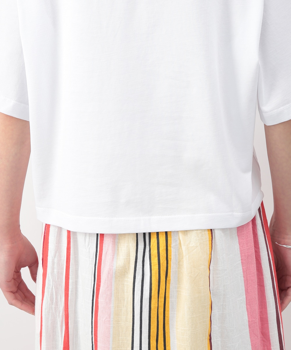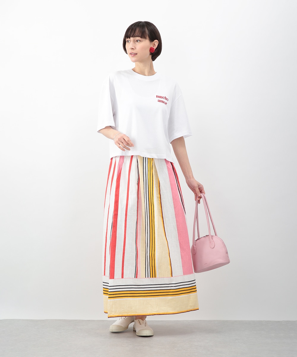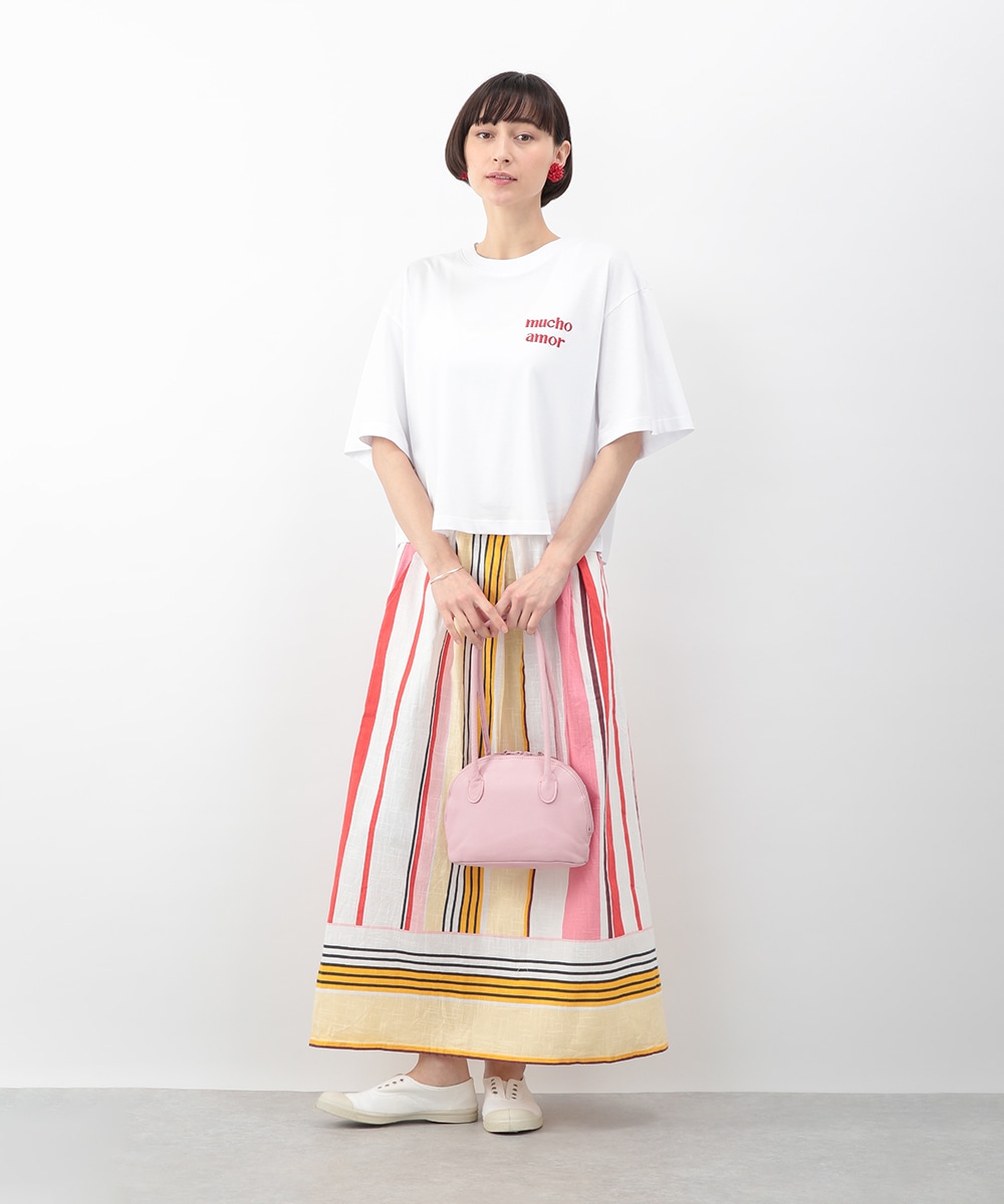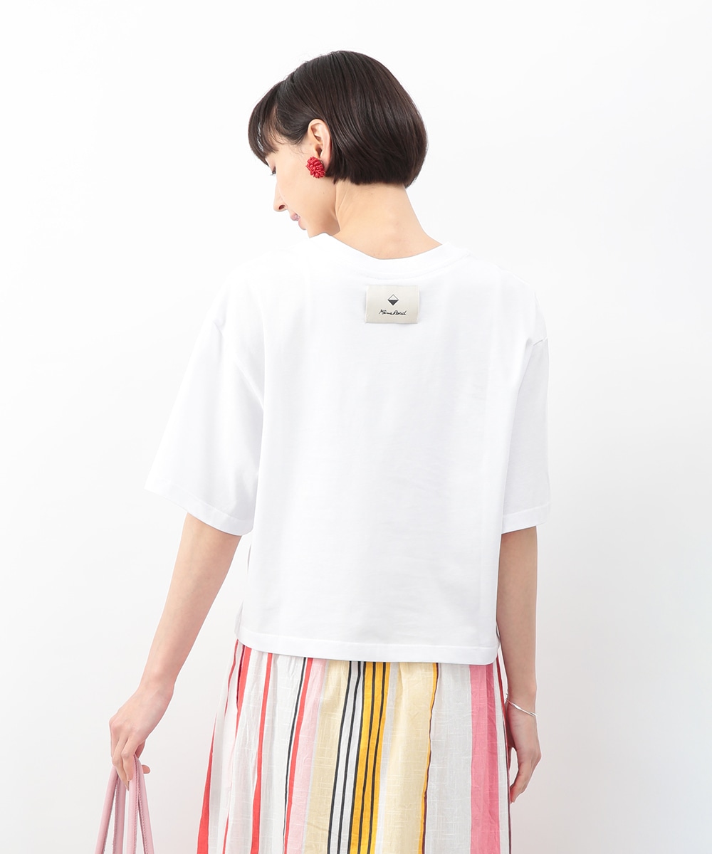 胸元にあしらったmucho amorの刺しゅうがポイントのTシャツ。スペイン語で「たくさんの愛」を意味するメッセージが、さりげないアクセントに。短めの着丈がバランスを取りやすく、ワイドパンツやスカートとも好相性です。シンプルながら程よく個性を添え、デイリーコーデに取り入れやすい一枚です。