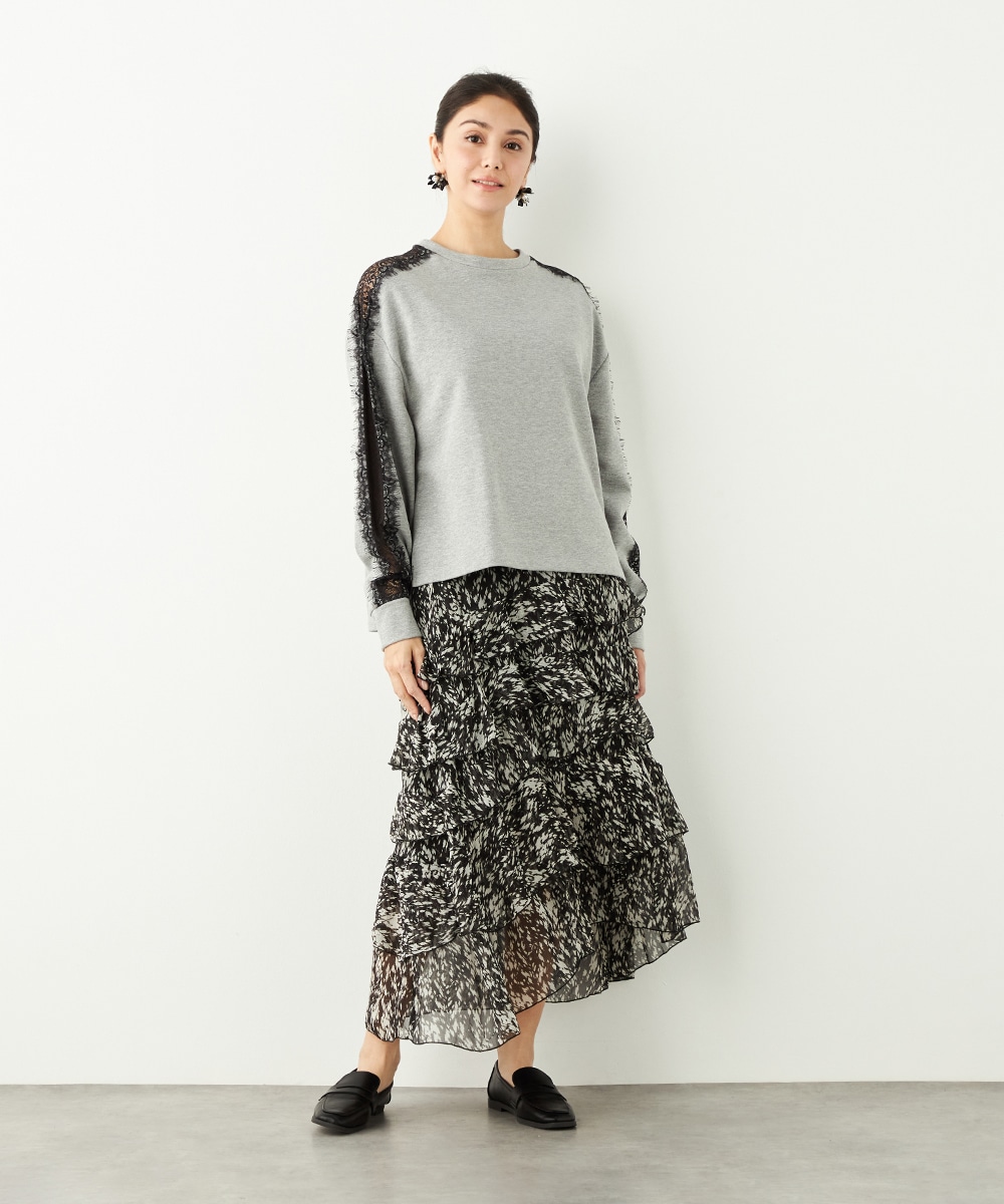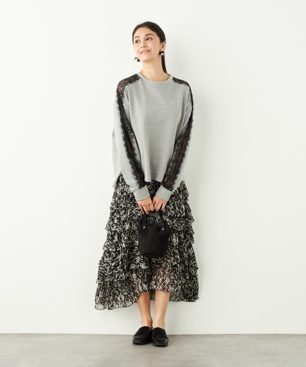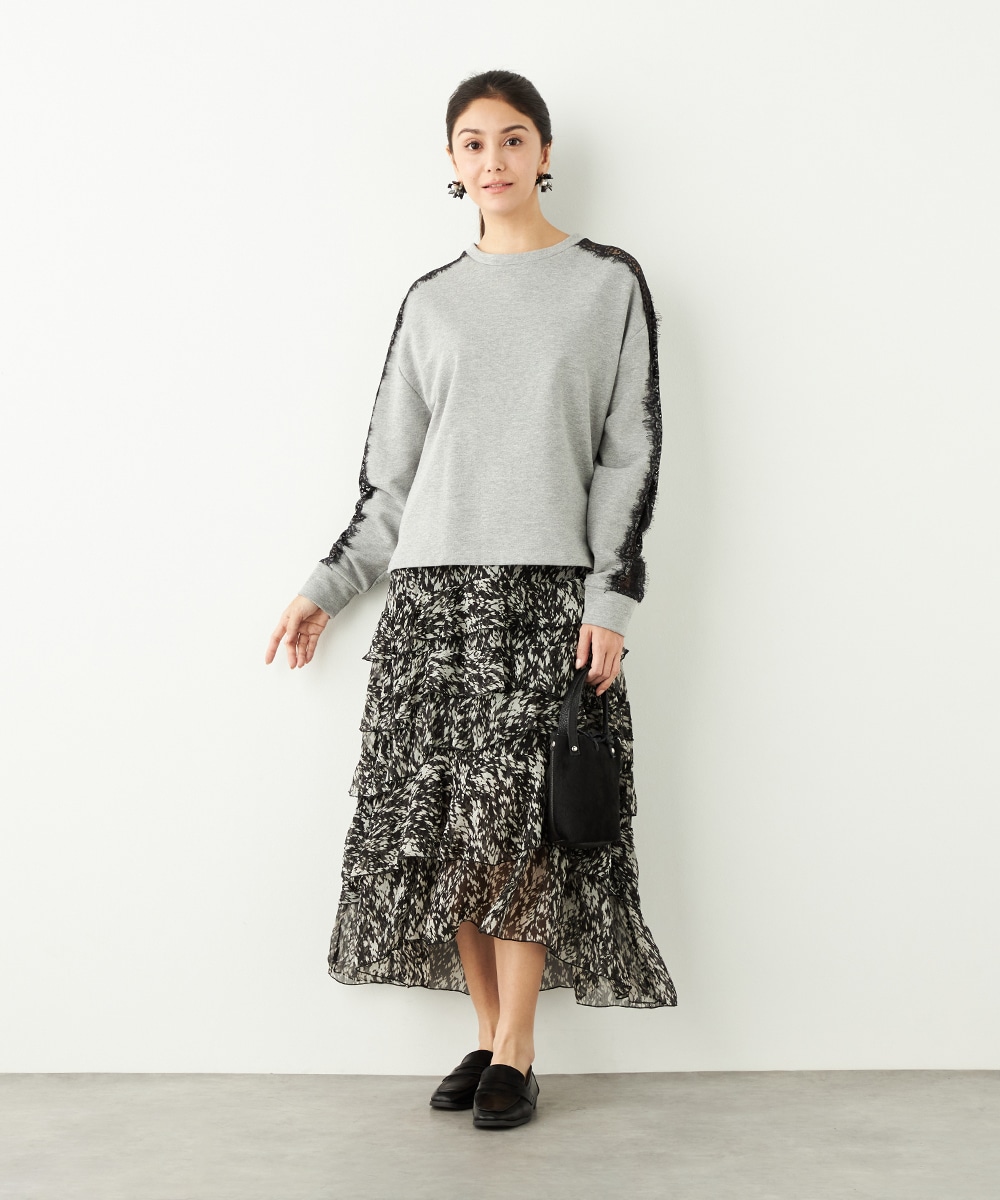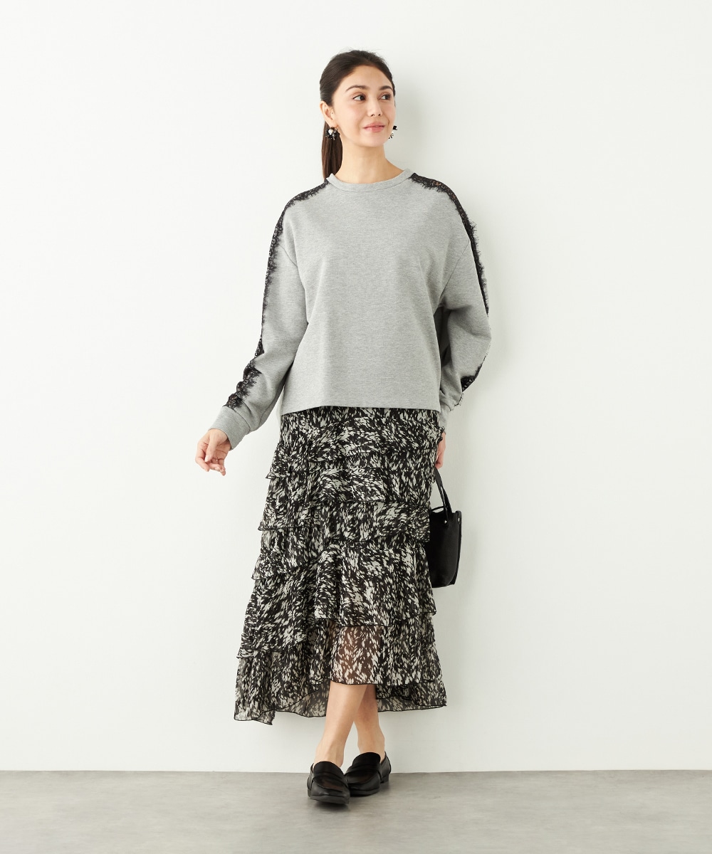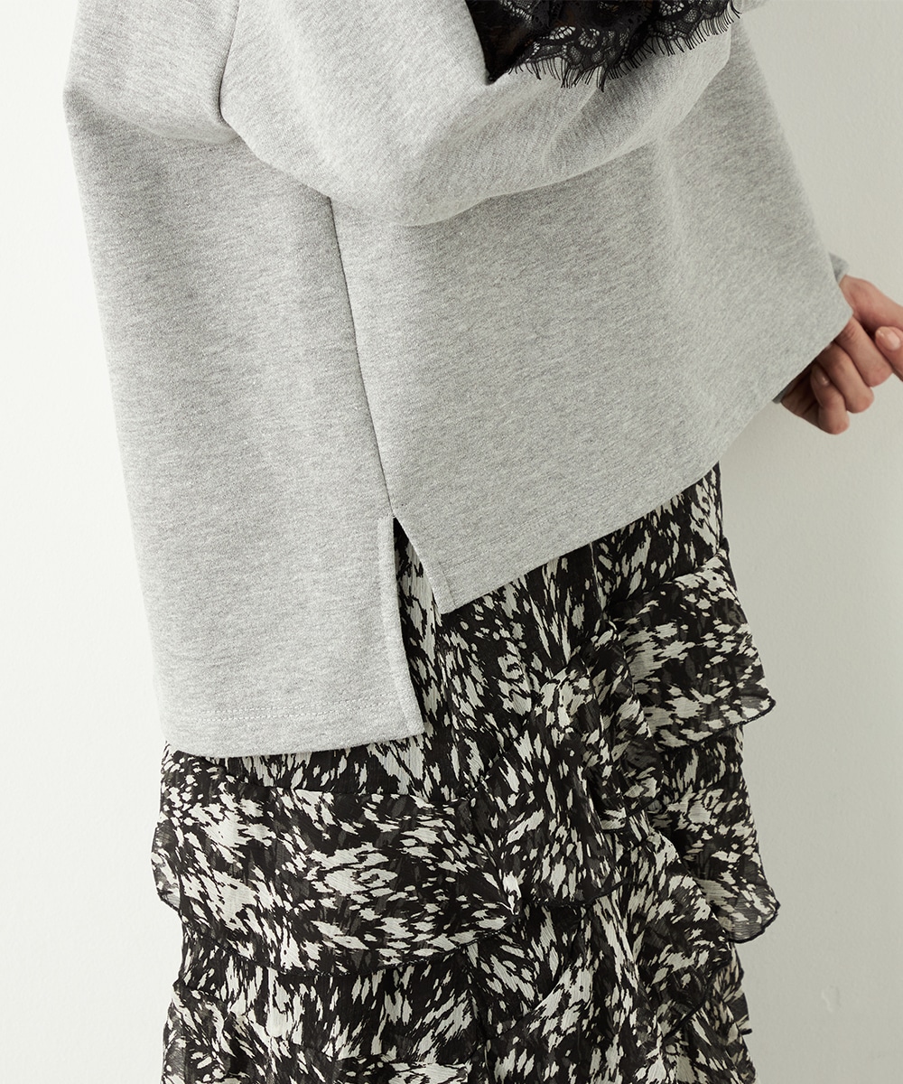 カジュアル感とエレガントな雰囲気のバランスが良く、大人のデイリーコーディネートにぴったり。カラーのコントラストも印象的です。ドロップショルダーでシルエットはゆったりと仕上がり、リラックスして着用できます。着丈は長すぎず、パンツともスカートとも好相性の1枚です。