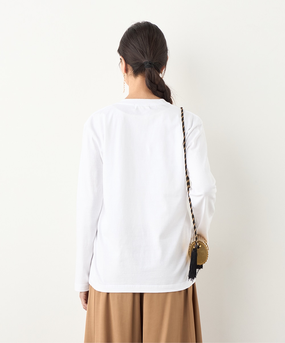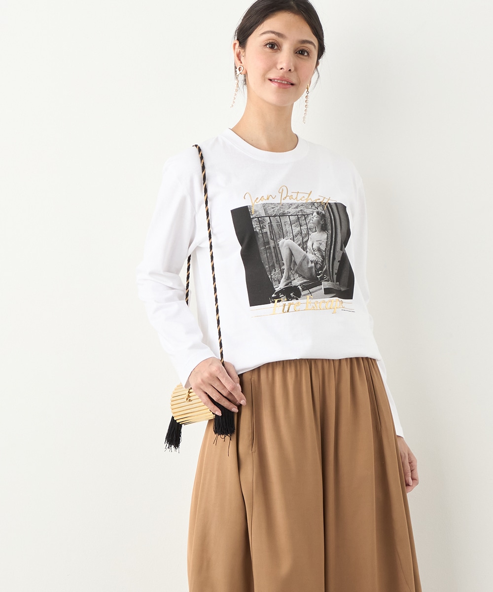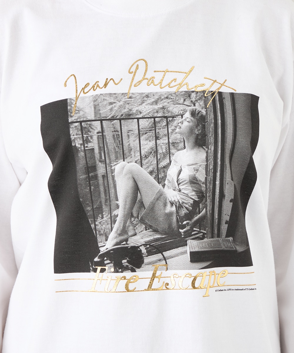さまざまな物語が感じられる写真を転写しました。モノクロームのカラーのシックな雰囲気や大人っぽさも魅力です。箔プリントのロゴもバランス良くレイアウトしています。フロントに広くグラフィックがデザインされて、存在感十分のアイテム。カジュアルコーディネートの主役としてぴったりです。