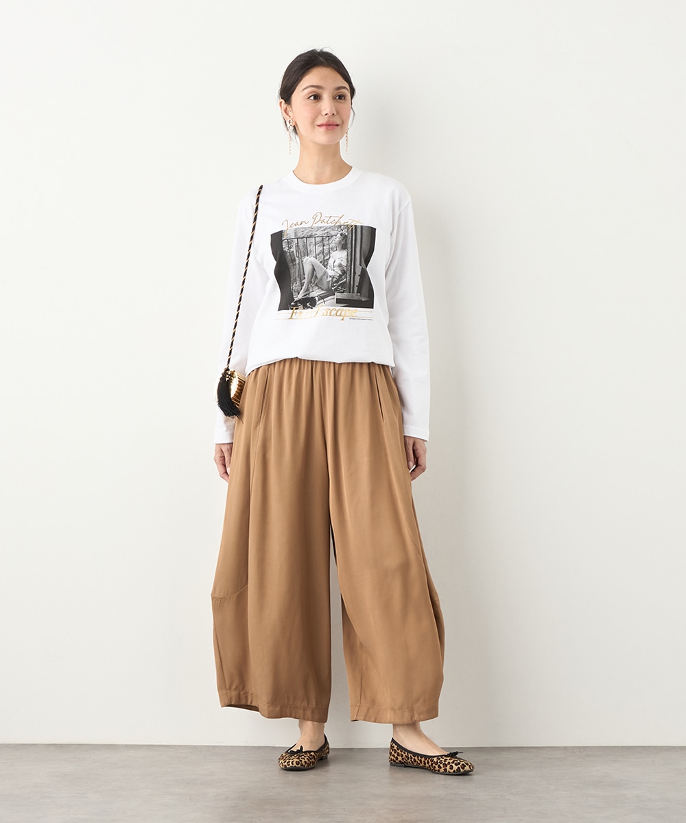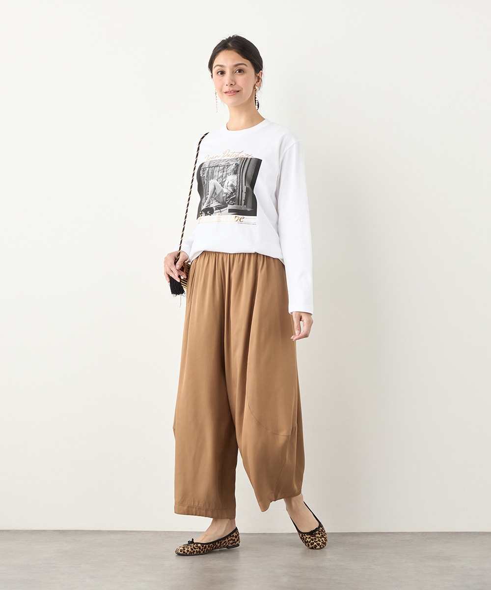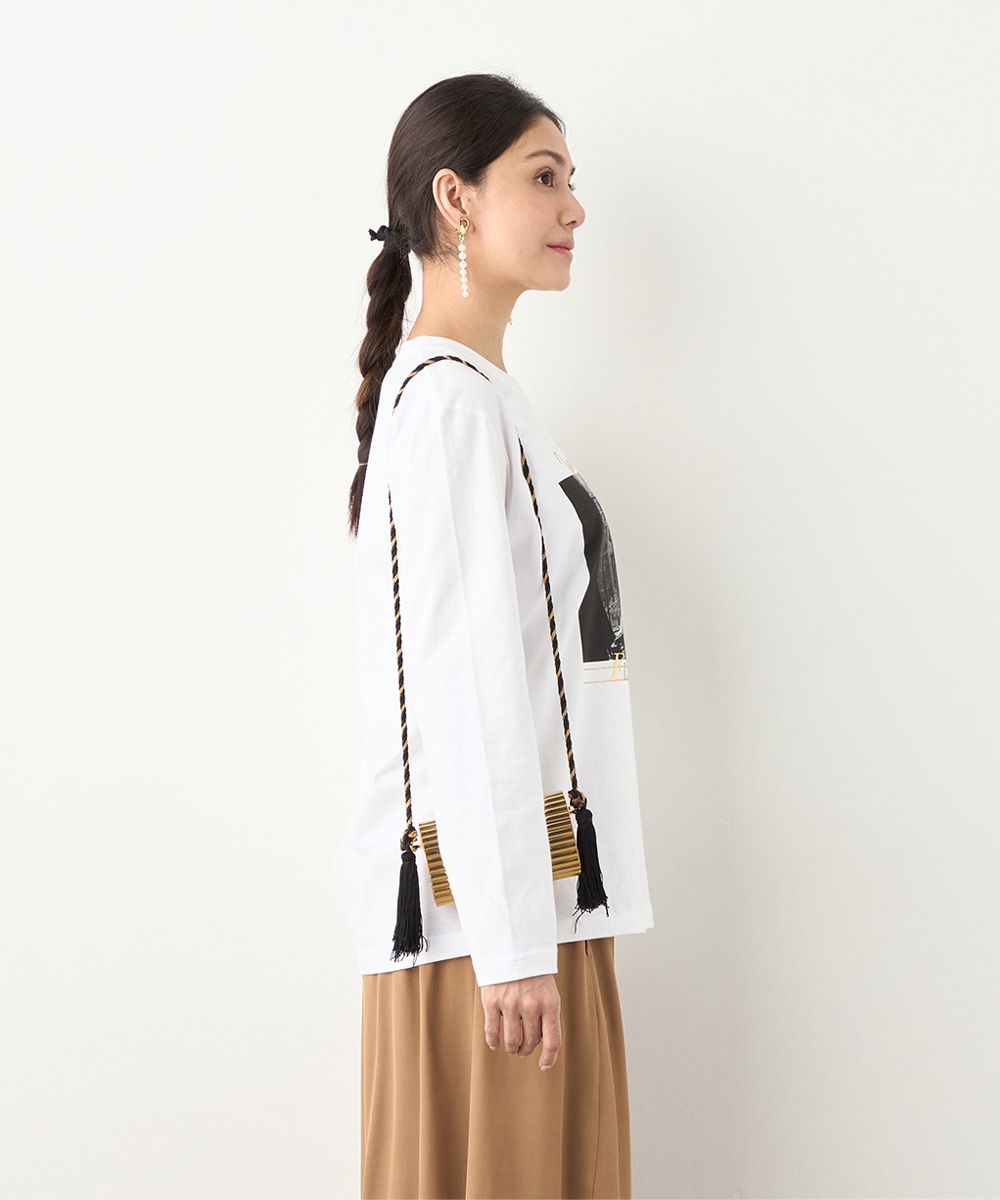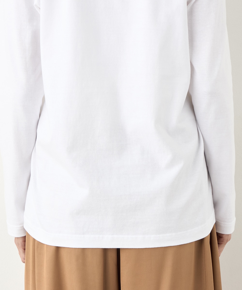 さまざまな物語が感じられる写真を転写しました。モノクロームのカラーのシックな雰囲気や大人っぽさも魅力です。箔プリントのロゴもバランス良くレイアウトしています。フロントに広くグラフィックがデザインされて、存在感十分のアイテム。カジュアルコーディネートの主役としてぴったりです。