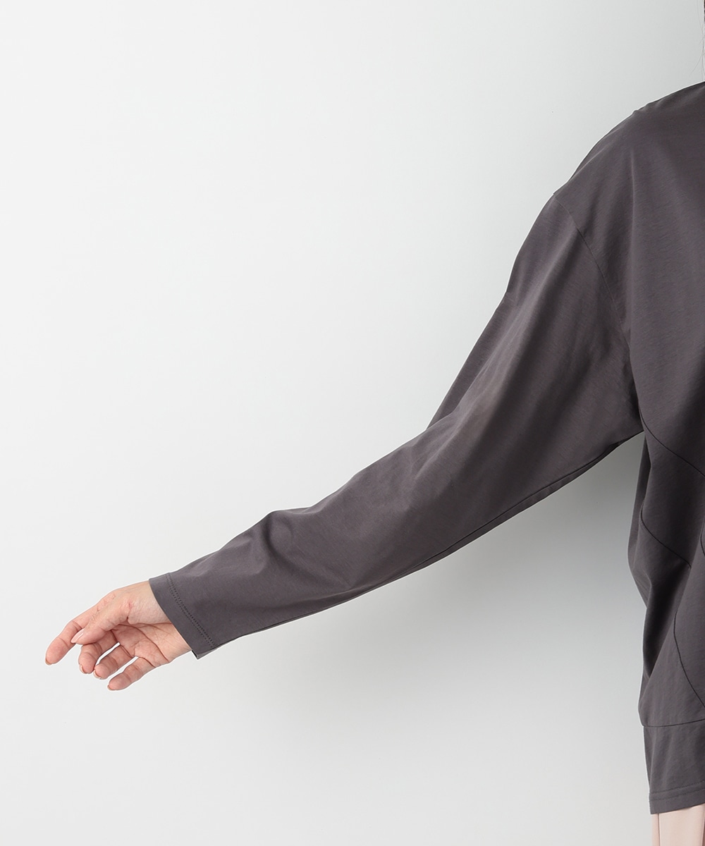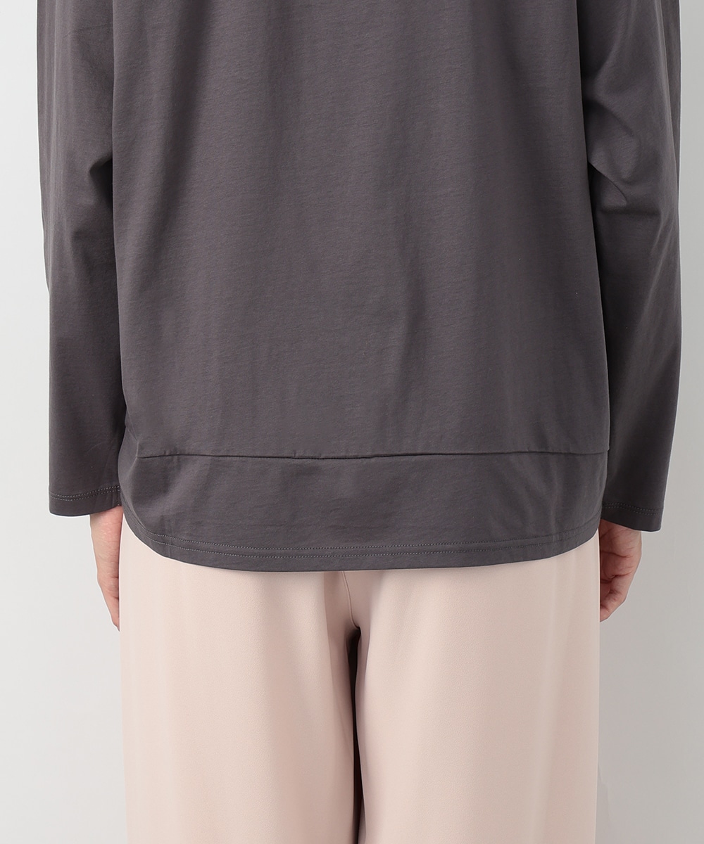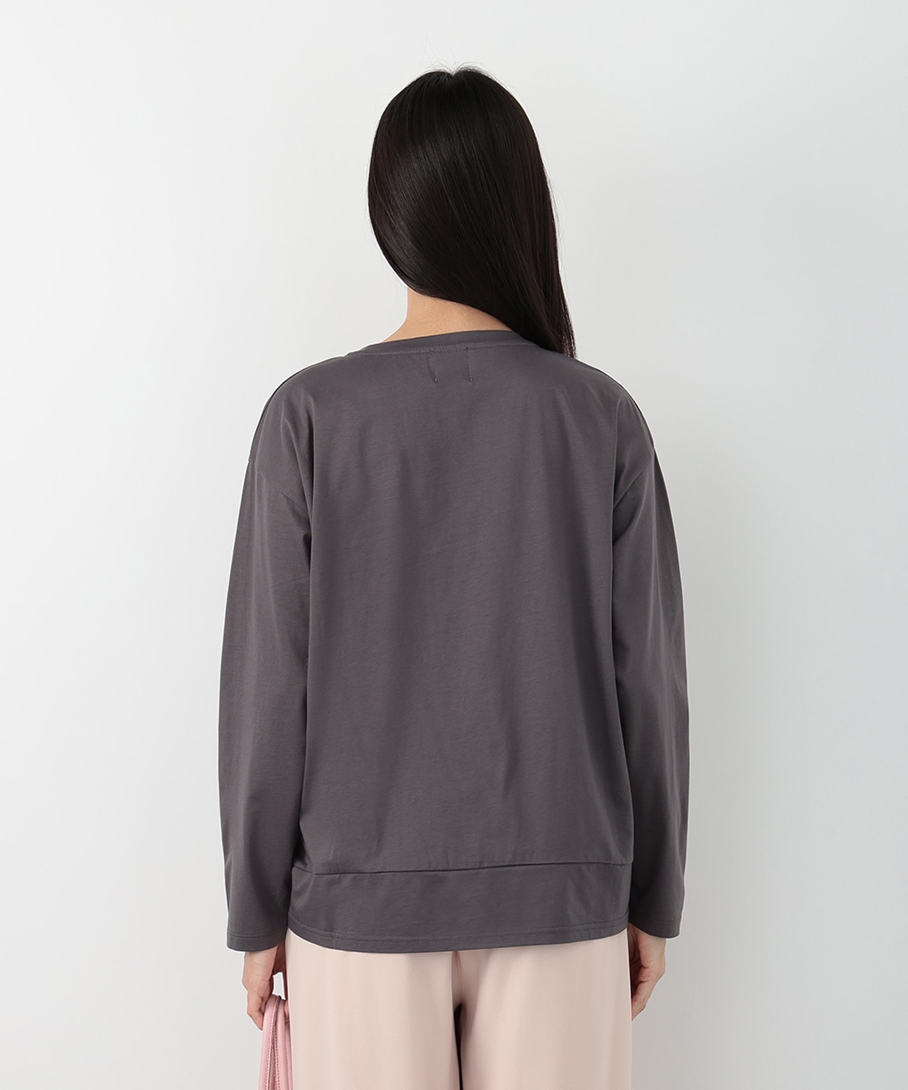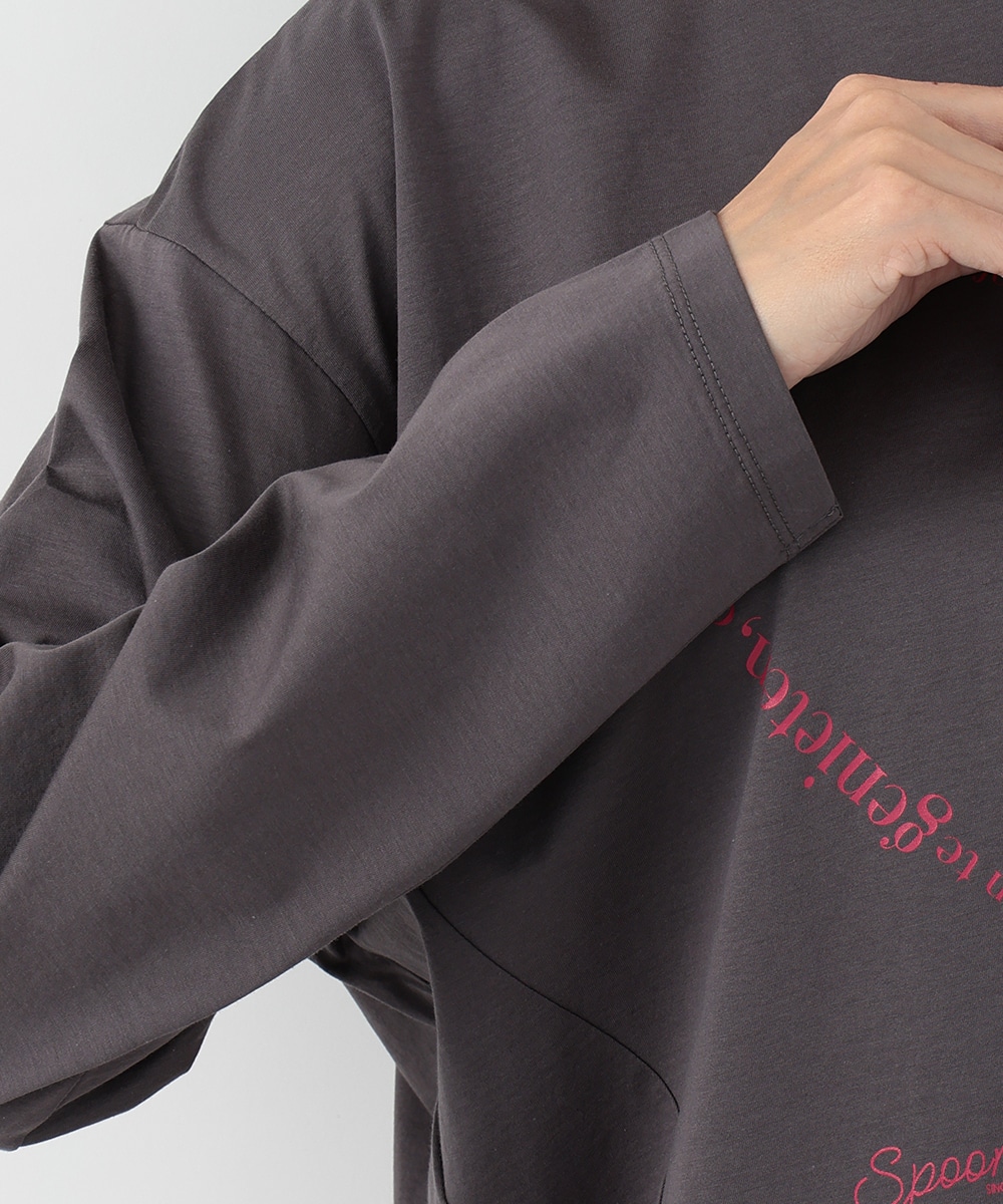 メッセージで描かれたハートプリントが印象的なロングTシャツ。落ち着いたカラーが甘さを程よく抑え、大人でも取り入れやすい一枚です。前後差のある着丈と切り替えデザインで、さりげなく体型をカバー。きれいめボトムと合わせれば、カジュアルすぎない着こなしが楽しめます。