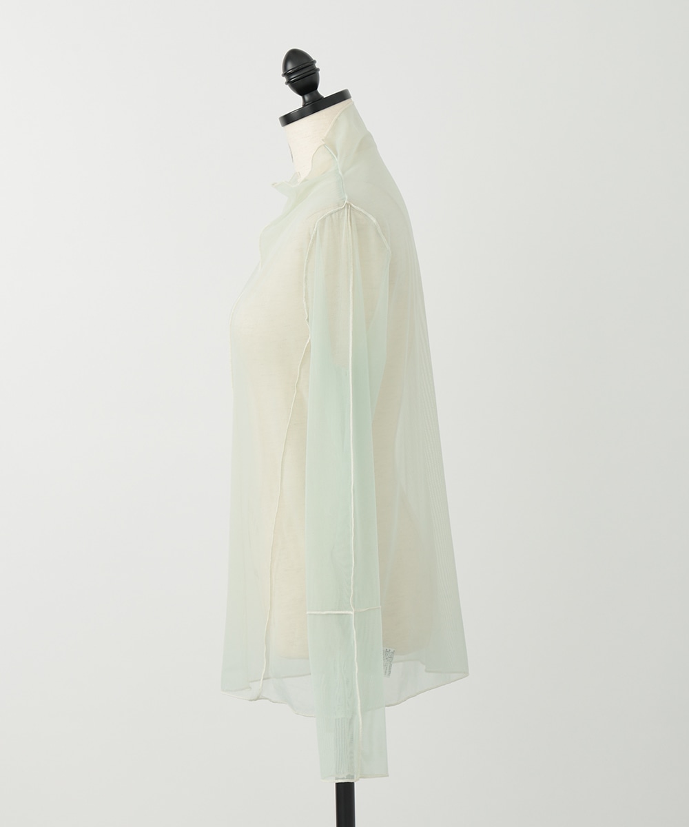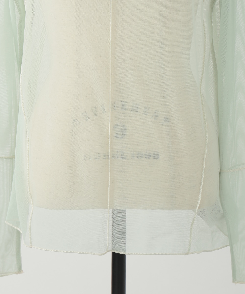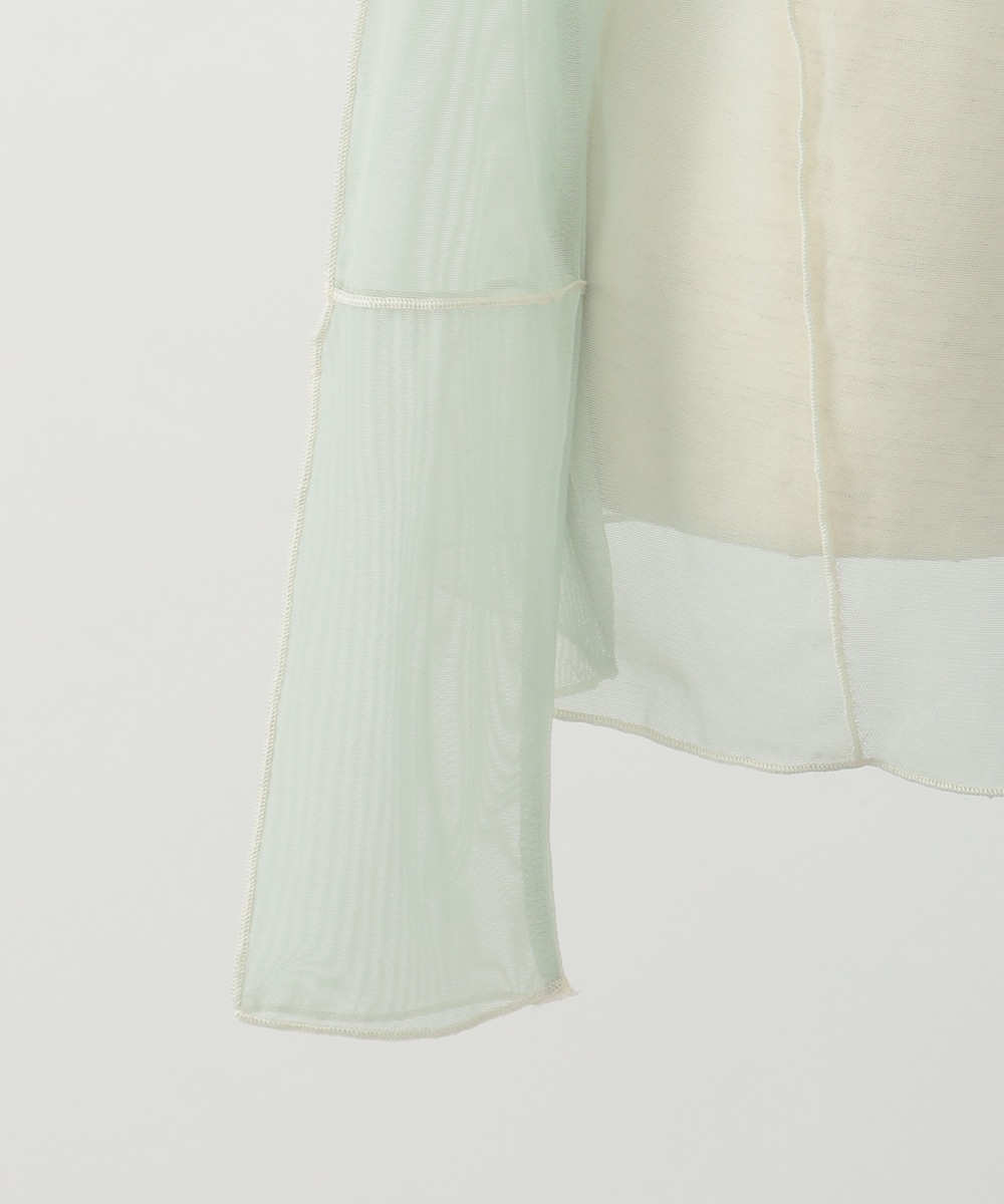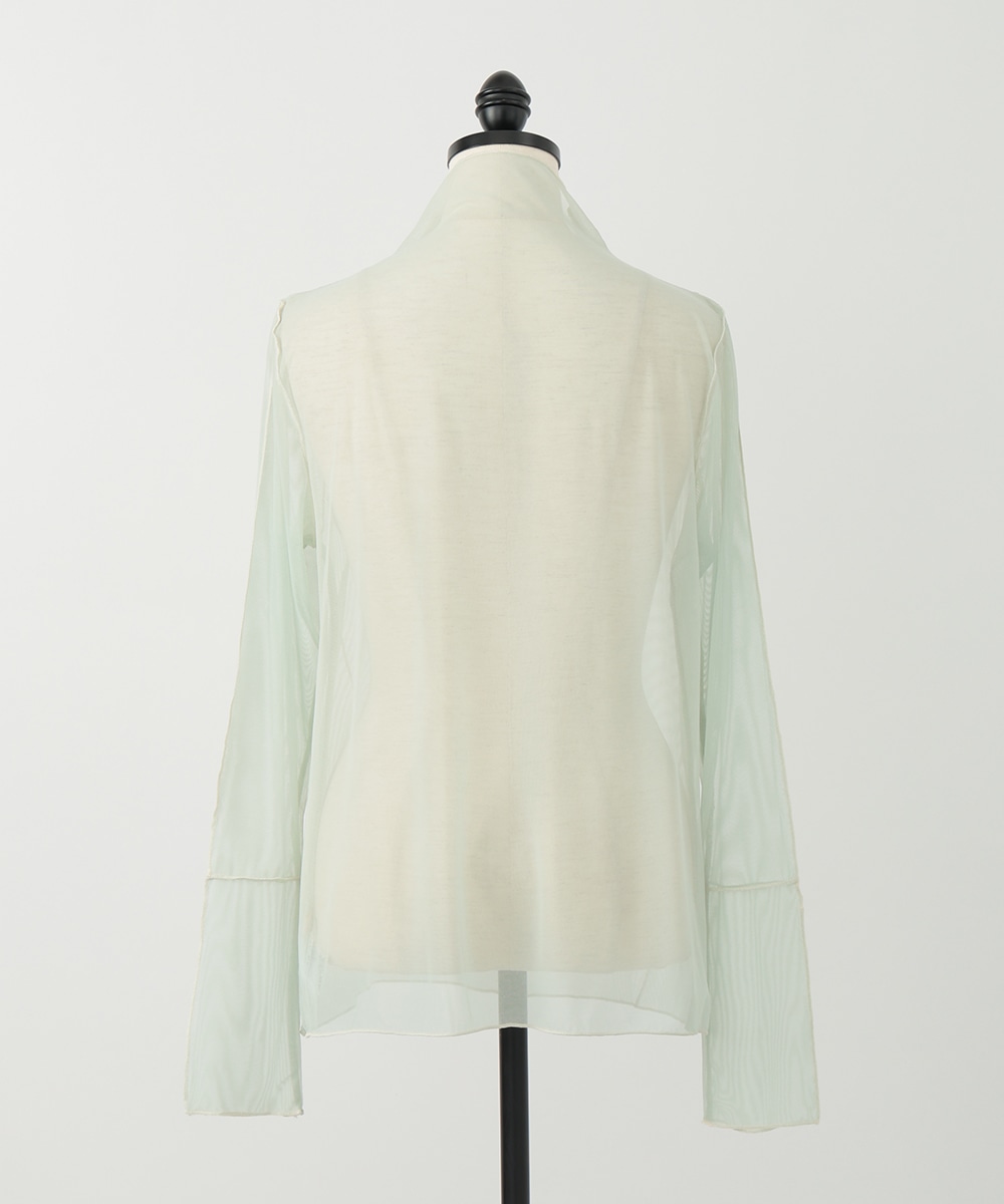 淡いカラーに配色メローを効かせた、シアーなメッシュ素材のハイネックトップス。首元と袖口のラインがさりげなく映え、コーデに軽やかさを添えます。すっきりとしたシルエットとなめらかな着心地で、レイヤードしやすいのもポイント。季節の変わり目にも重宝する一枚です。