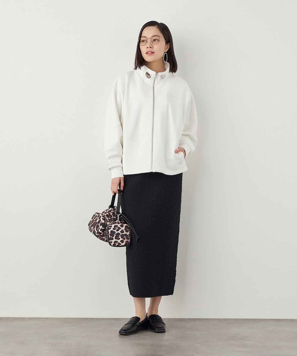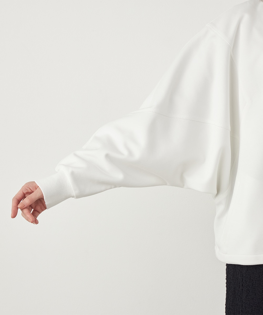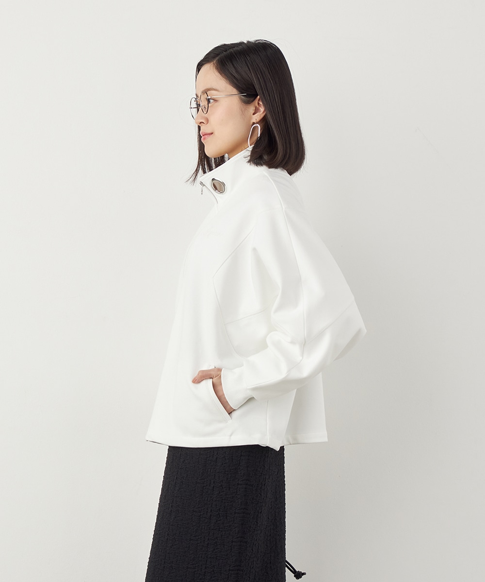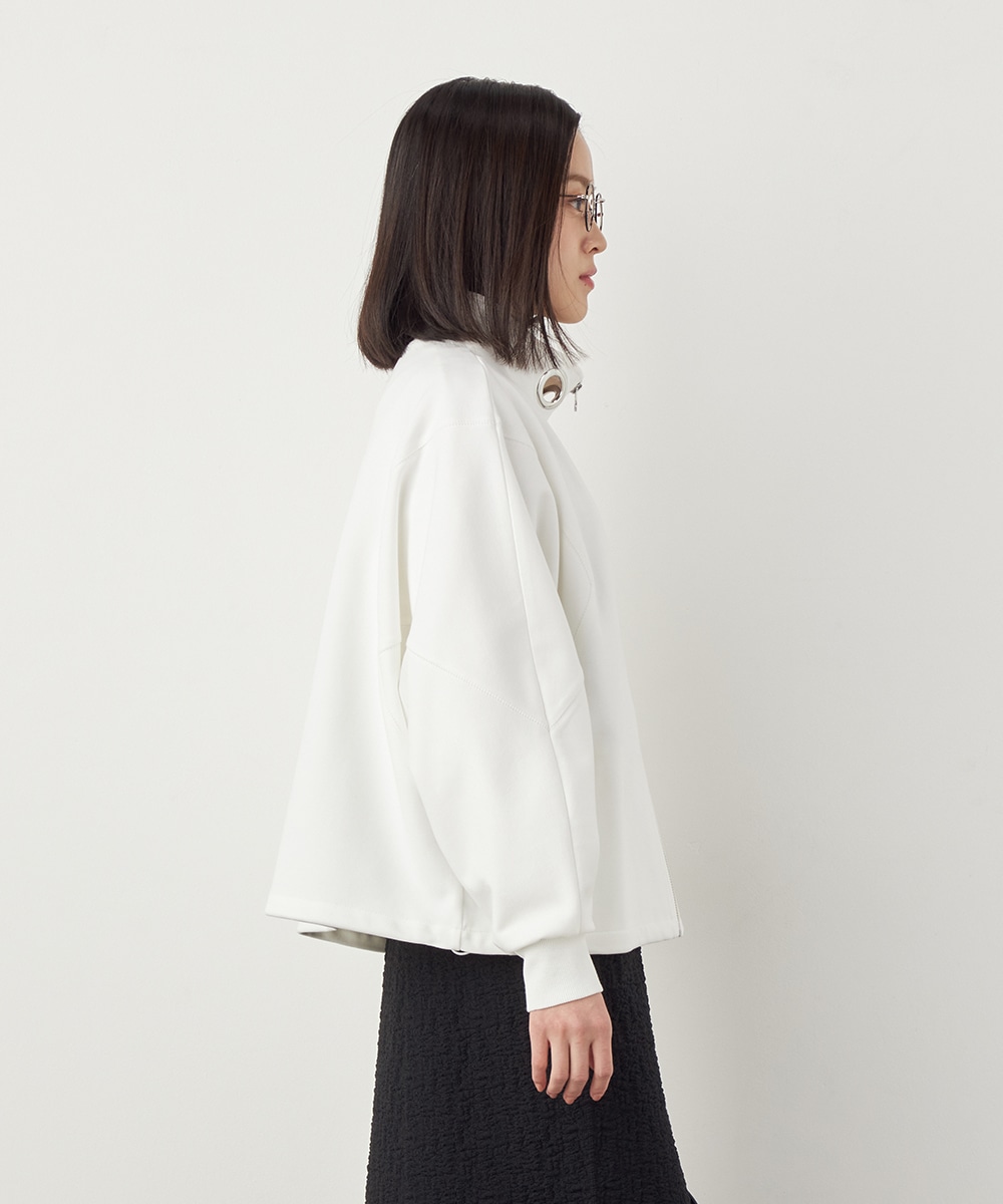 胸元には刺繍のワンポイントをあしらっています。サイドから袖にかけてのゆったりとした作りが印象的です。裾のコードの絞り具合でシルエットのアレンジも楽しめます。着丈が長すぎず、すっきりと着こなせるのも特徴。一枚着として活用するのはもちろん、真冬のコートインにも重宝します。当社別注のアイテムです。