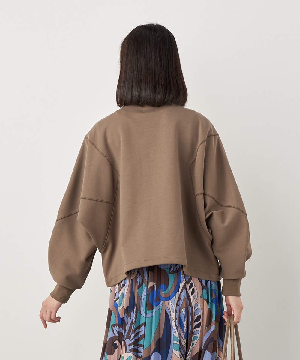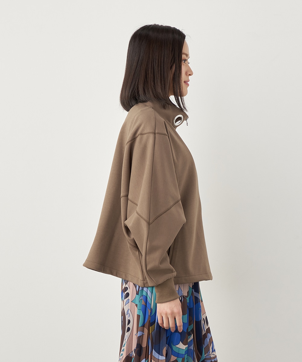 胸元には刺繍のワンポイントをあしらっています。サイドから袖にかけてのゆったりとした作りが印象的です。裾のコードの絞り具合でシルエットのアレンジも楽しめます。着丈が長すぎず、すっきりと着こなせるのも特徴。一枚着として活用するのはもちろん、真冬のコートインにも重宝します。当社別注のアイテムです。