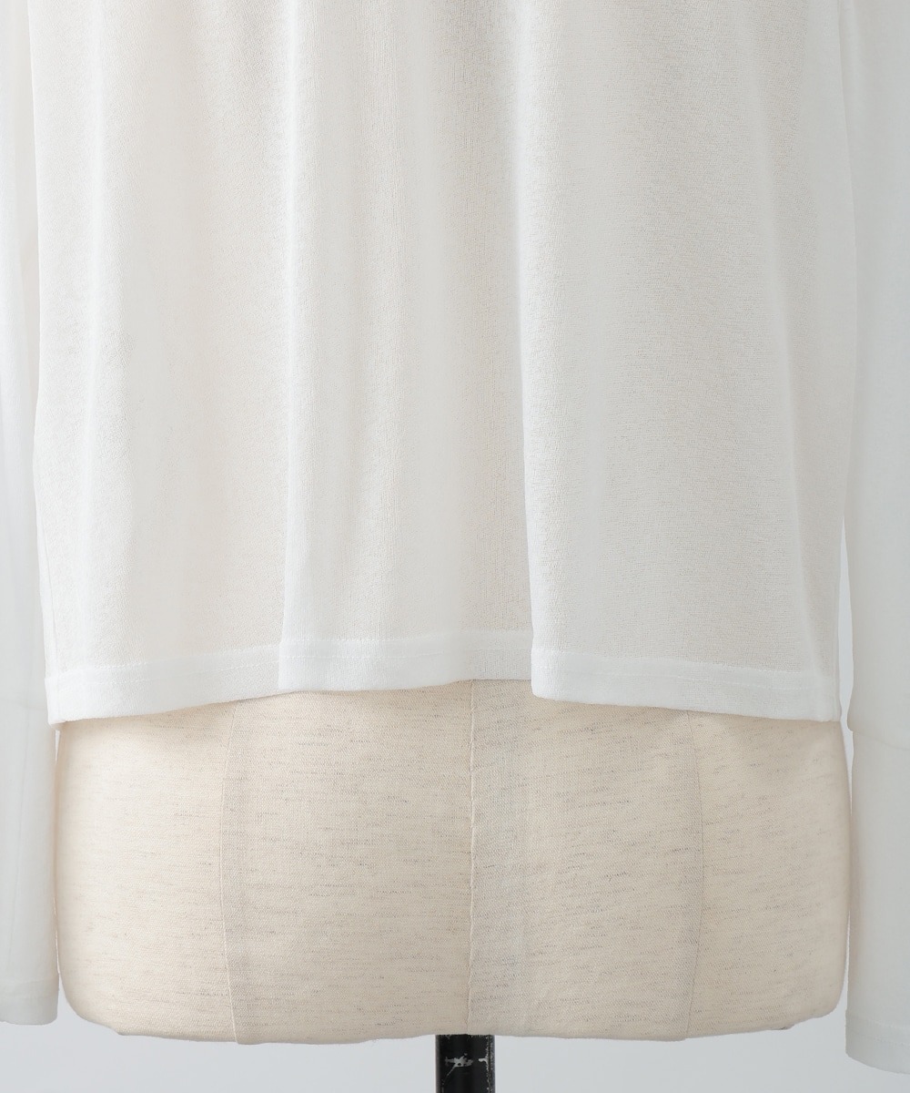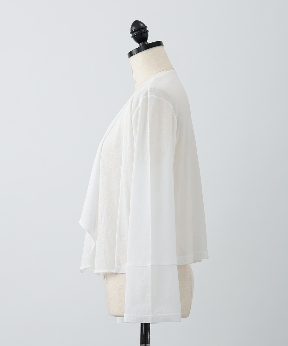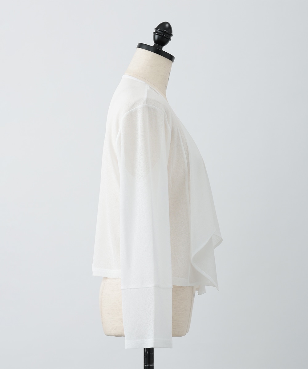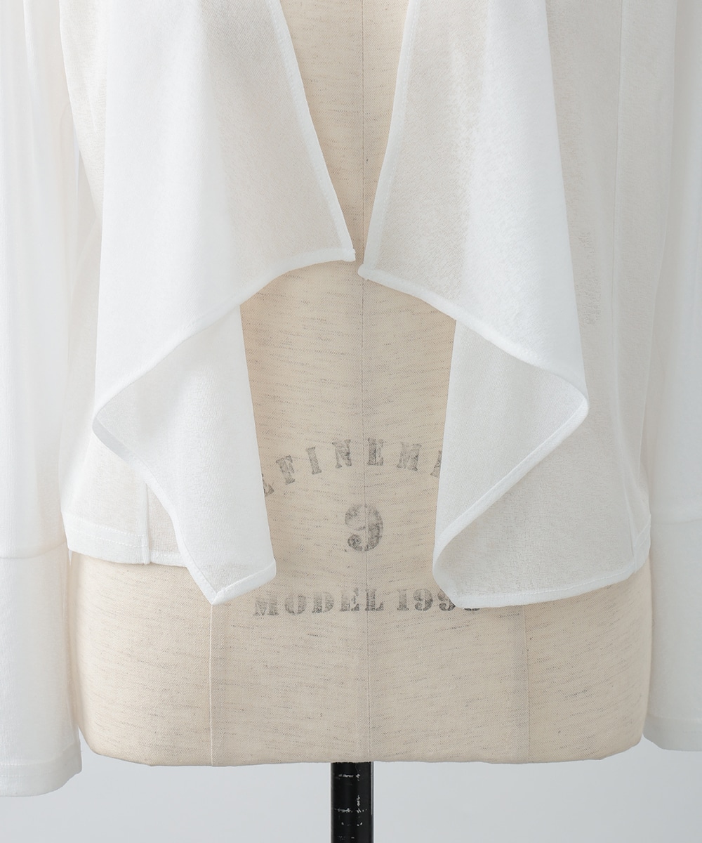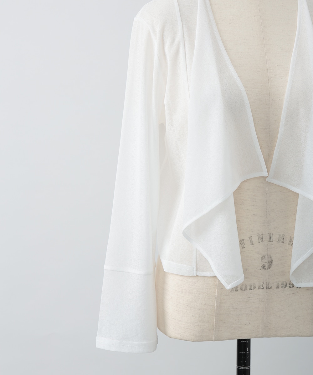 ボタンレスでひらりとなびくデザインが女性らしさを演出するカーディガン。袖口はゆとりのあるシルエットになっており、エレガントな風合いをプラスします。ほんのりとした透け感を楽しめるシアー素材がポイント。お手持ちのワンピースやキャミソールに重ねたスタイリングがおすすめです。
