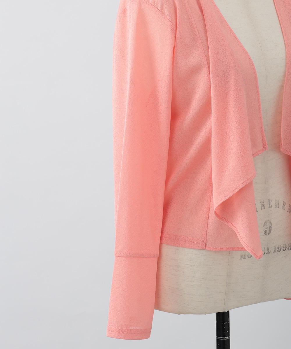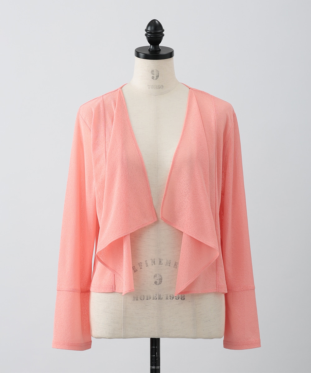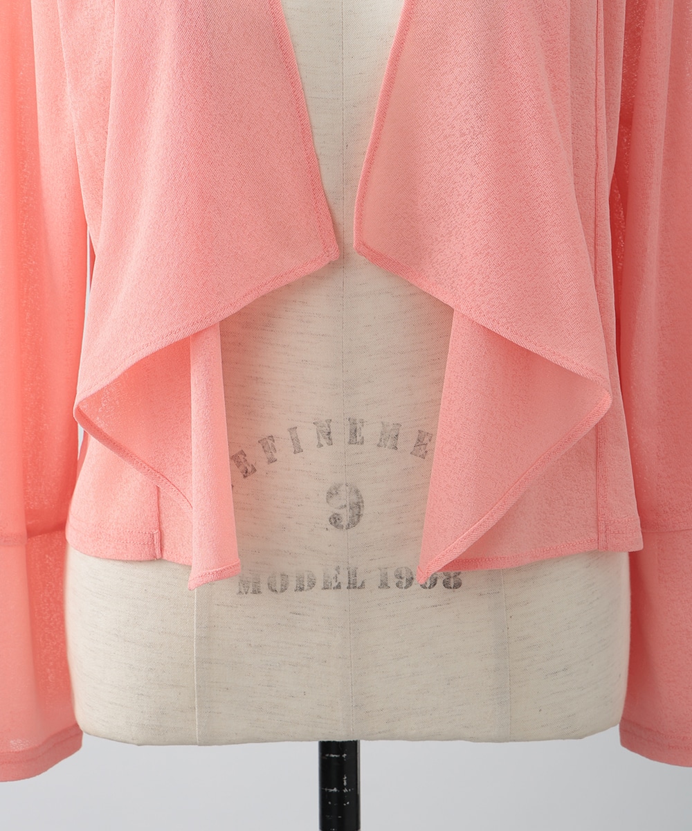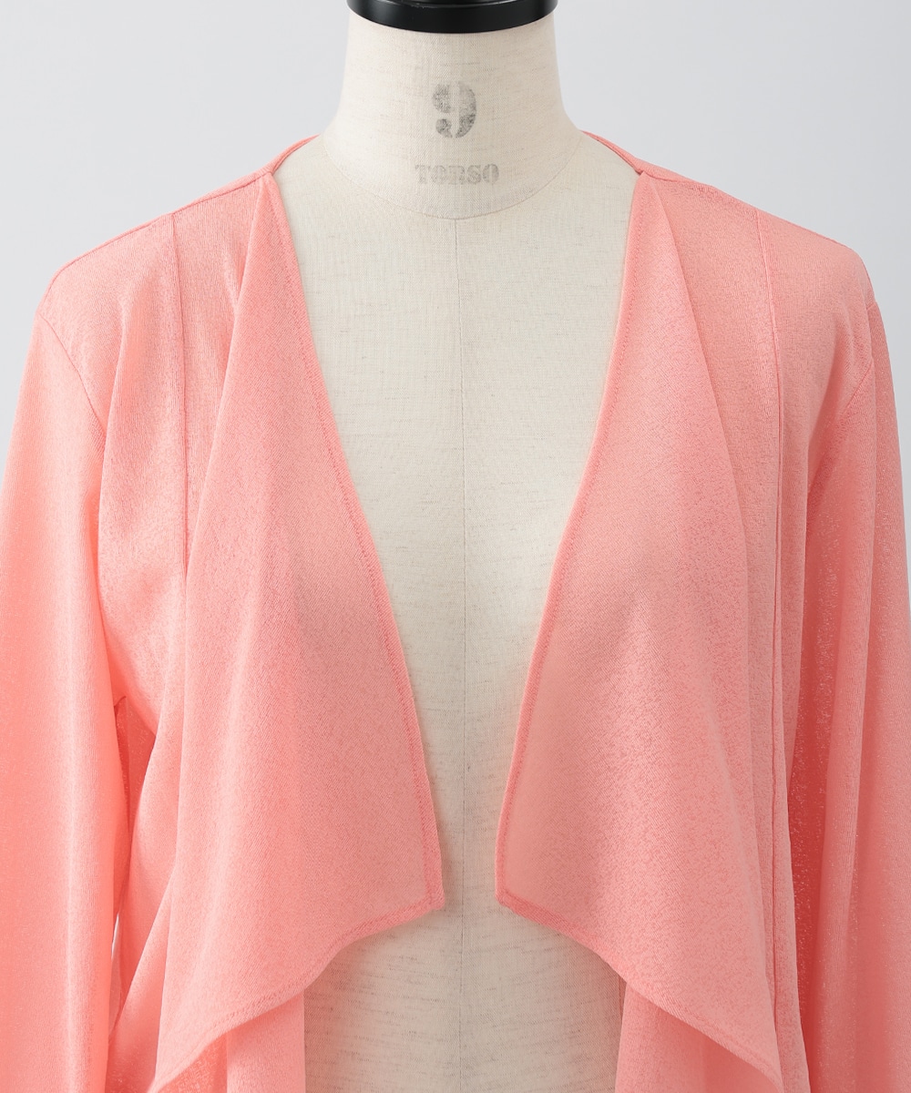 ボタンレスでひらりとなびくデザインが女性らしさを演出するカーディガン。袖口はゆとりのあるシルエットになっており、エレガントな風合いをプラスします。ほんのりとした透け感を楽しめるシアー素材がポイント。お手持ちのワンピースやキャミソールに重ねたスタイリングがおすすめです。