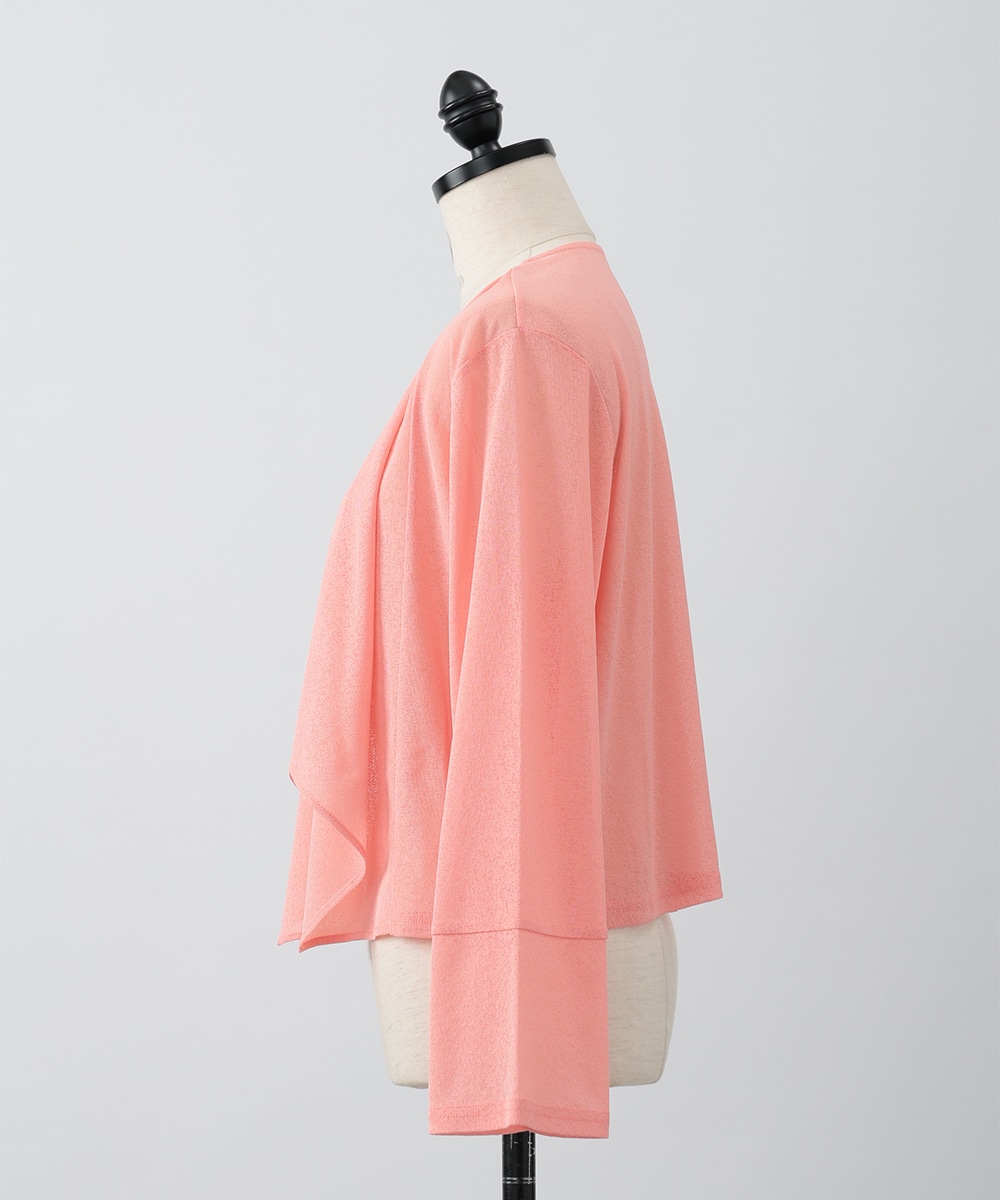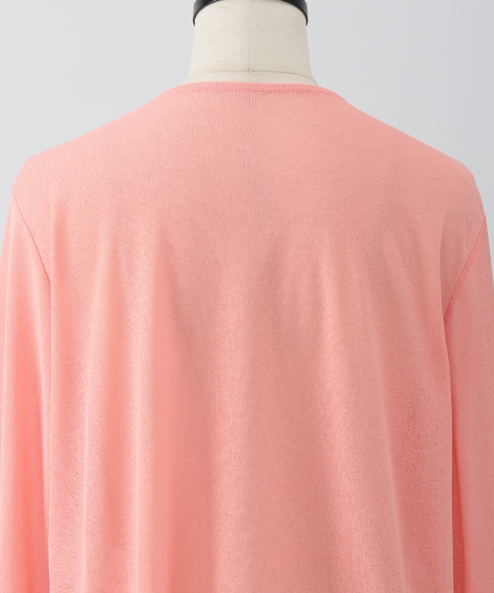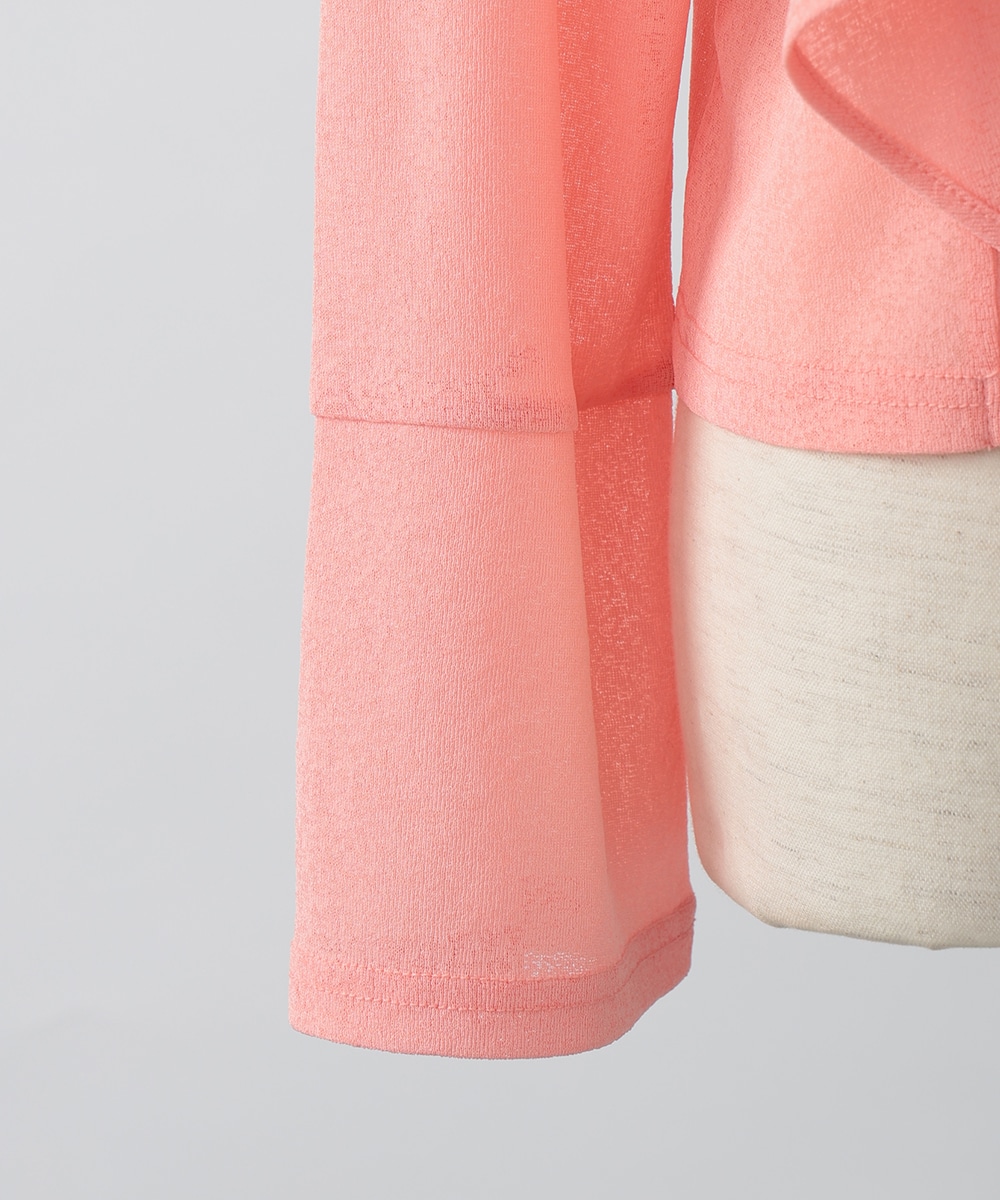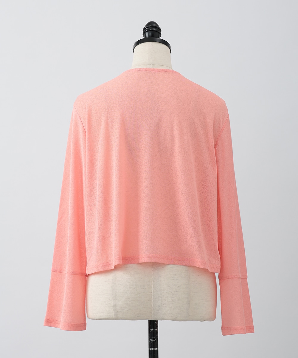 ボタンレスでひらりとなびくデザインが女性らしさを演出するカーディガン。袖口はゆとりのあるシルエットになっており、エレガントな風合いをプラスします。ほんのりとした透け感を楽しめるシアー素材がポイント。お手持ちのワンピースやキャミソールに重ねたスタイリングがおすすめです。
