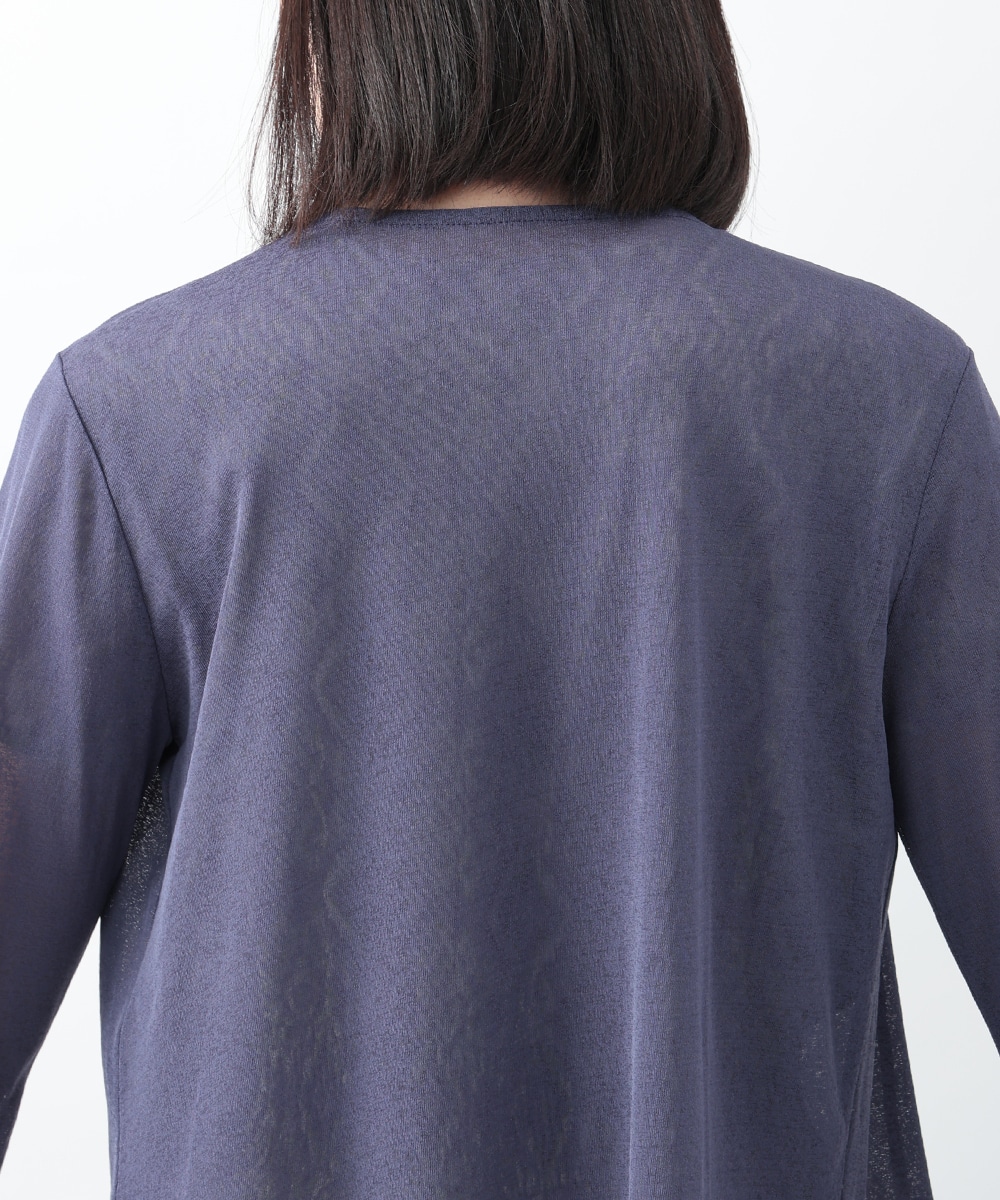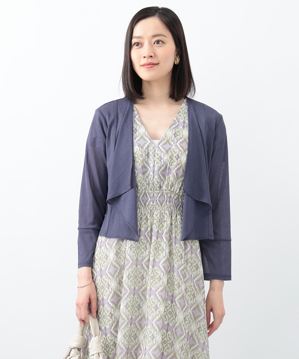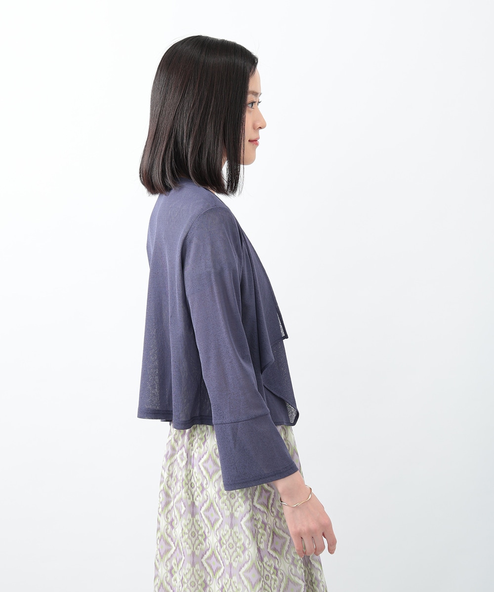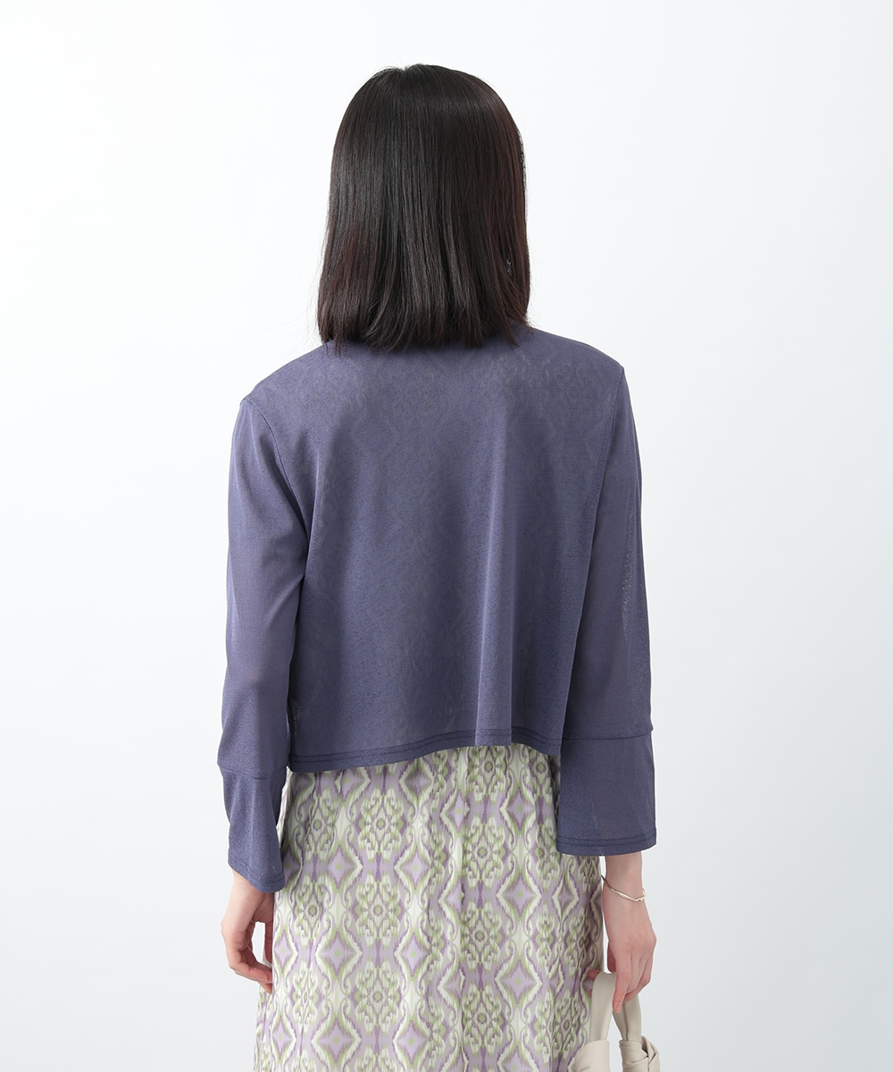 ボタンレスでひらりとなびくデザインが女性らしさを演出するカーディガン。袖口はゆとりのあるシルエットになっており、エレガントな風合いをプラスします。ほんのりとした透け感を楽しめるシアー素材がポイント。お手持ちのワンピースやキャミソールに重ねたスタイリングがおすすめです。