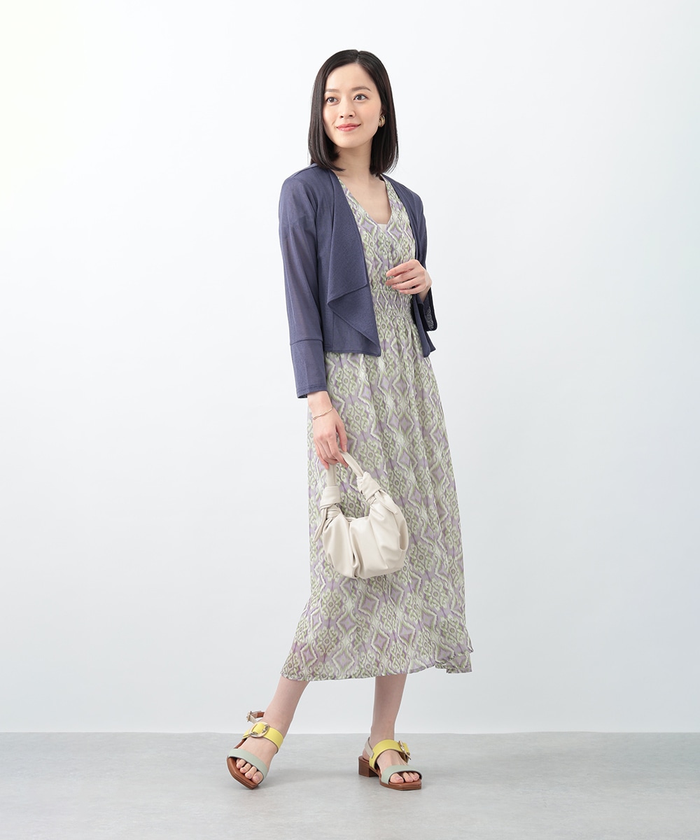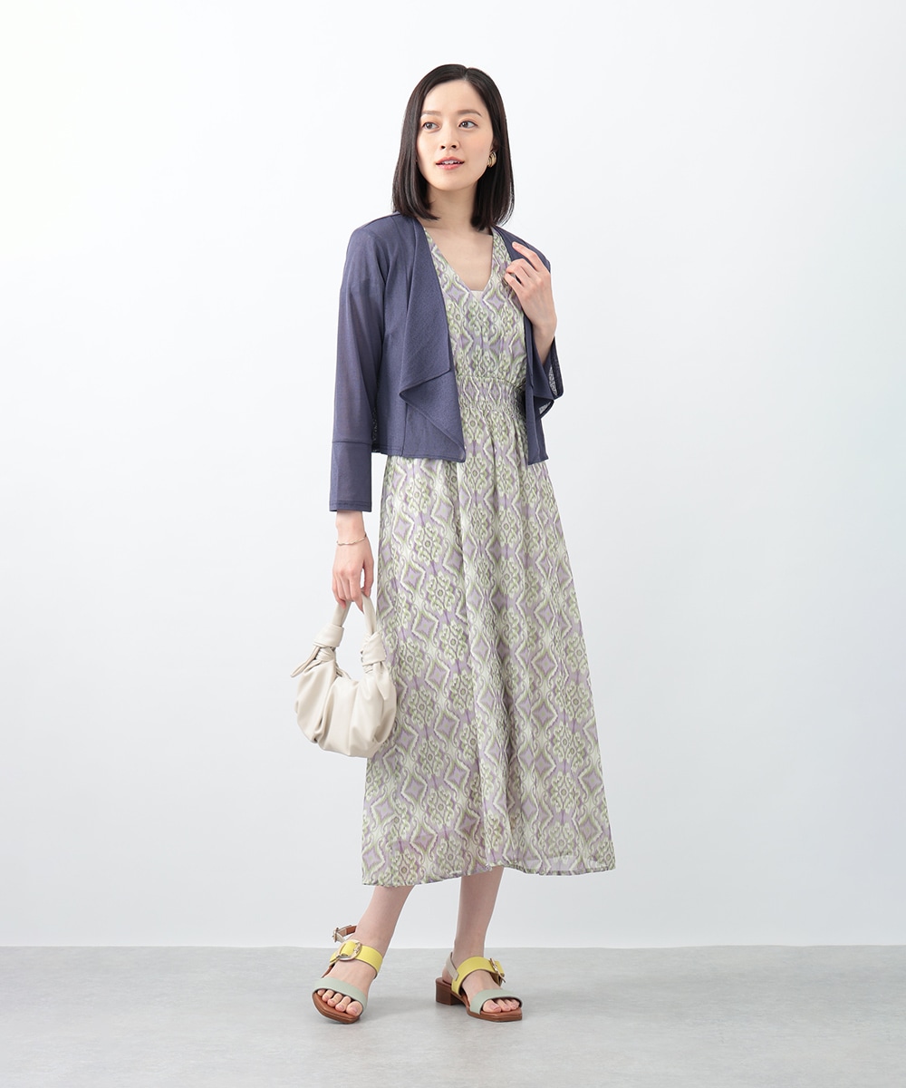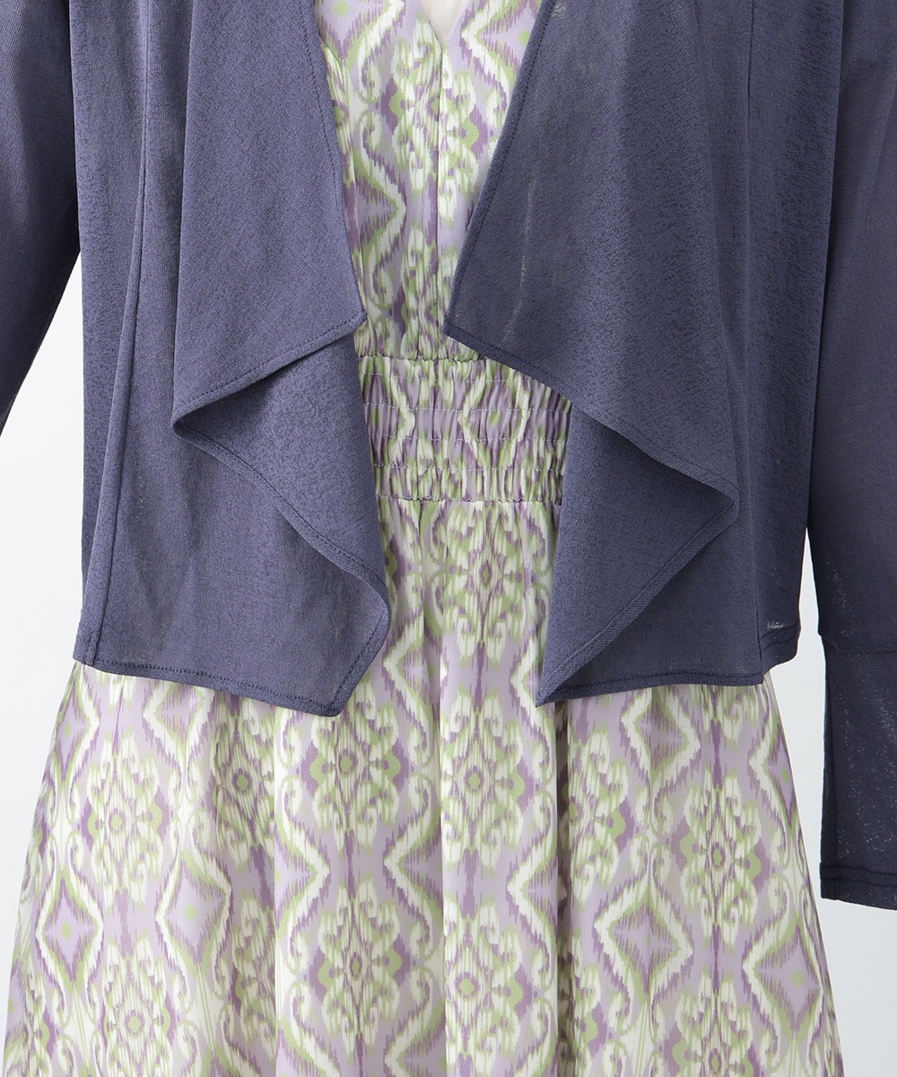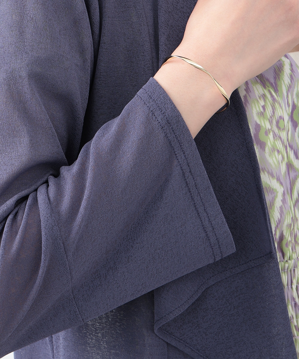 ボタンレスでひらりとなびくデザインが女性らしさを演出するカーディガン。袖口はゆとりのあるシルエットになっており、エレガントな風合いをプラスします。ほんのりとした透け感を楽しめるシアー素材がポイント。お手持ちのワンピースやキャミソールに重ねたスタイリングがおすすめです。