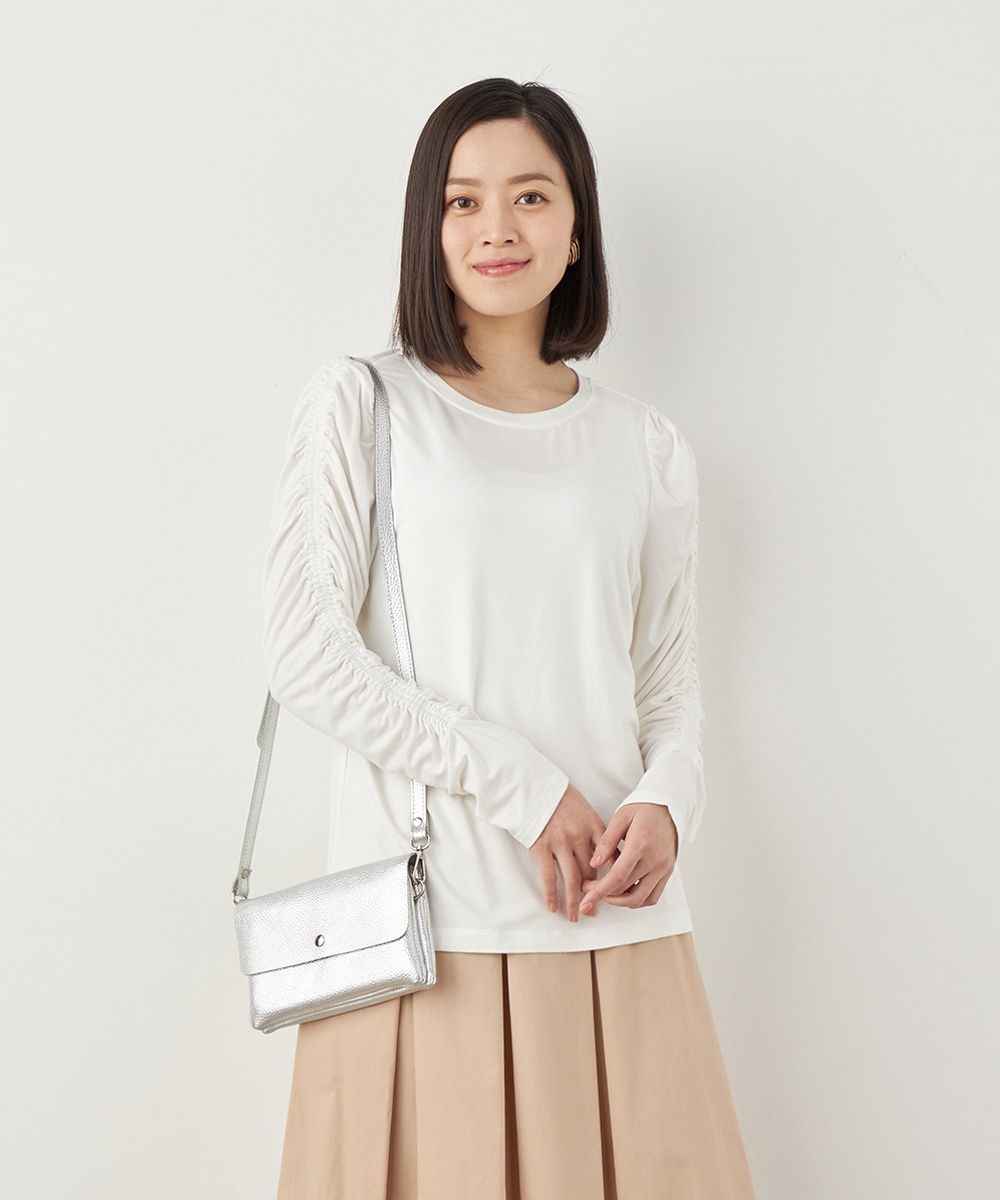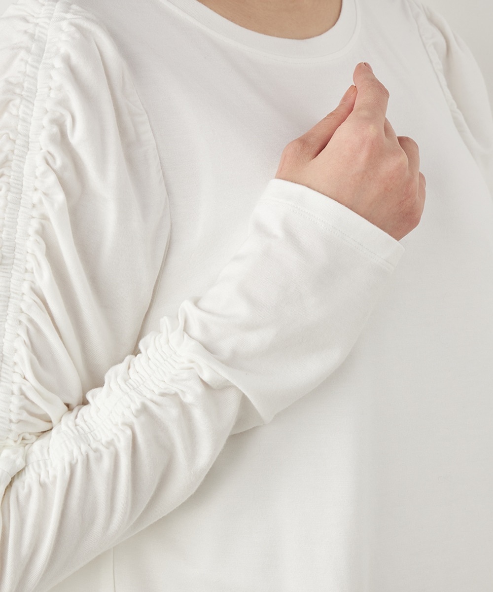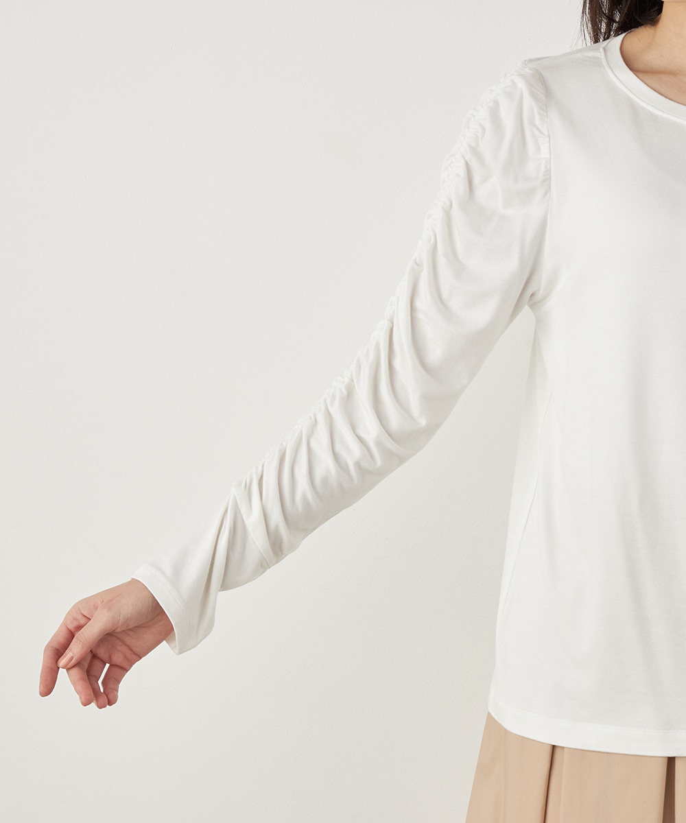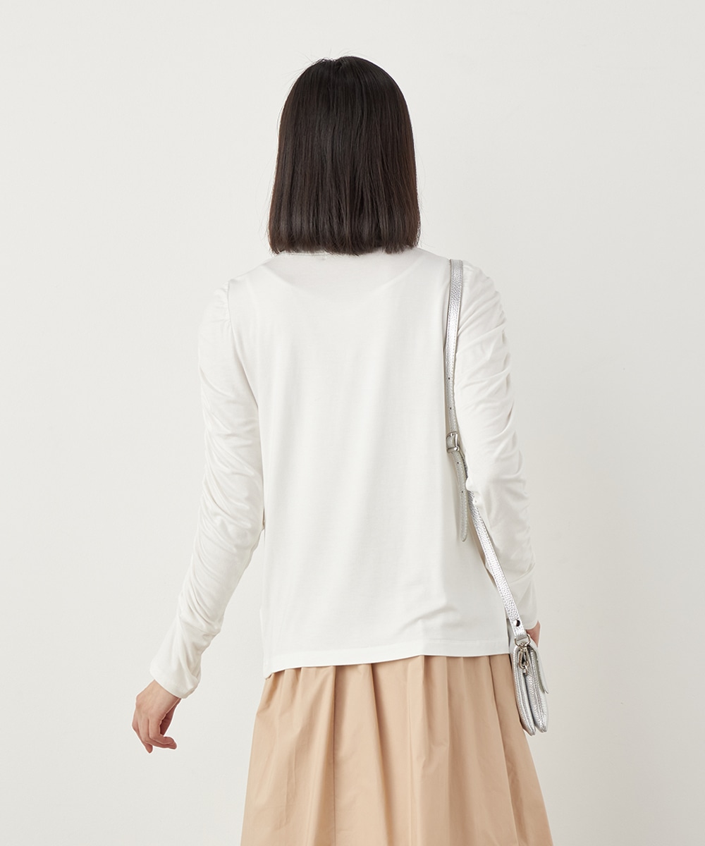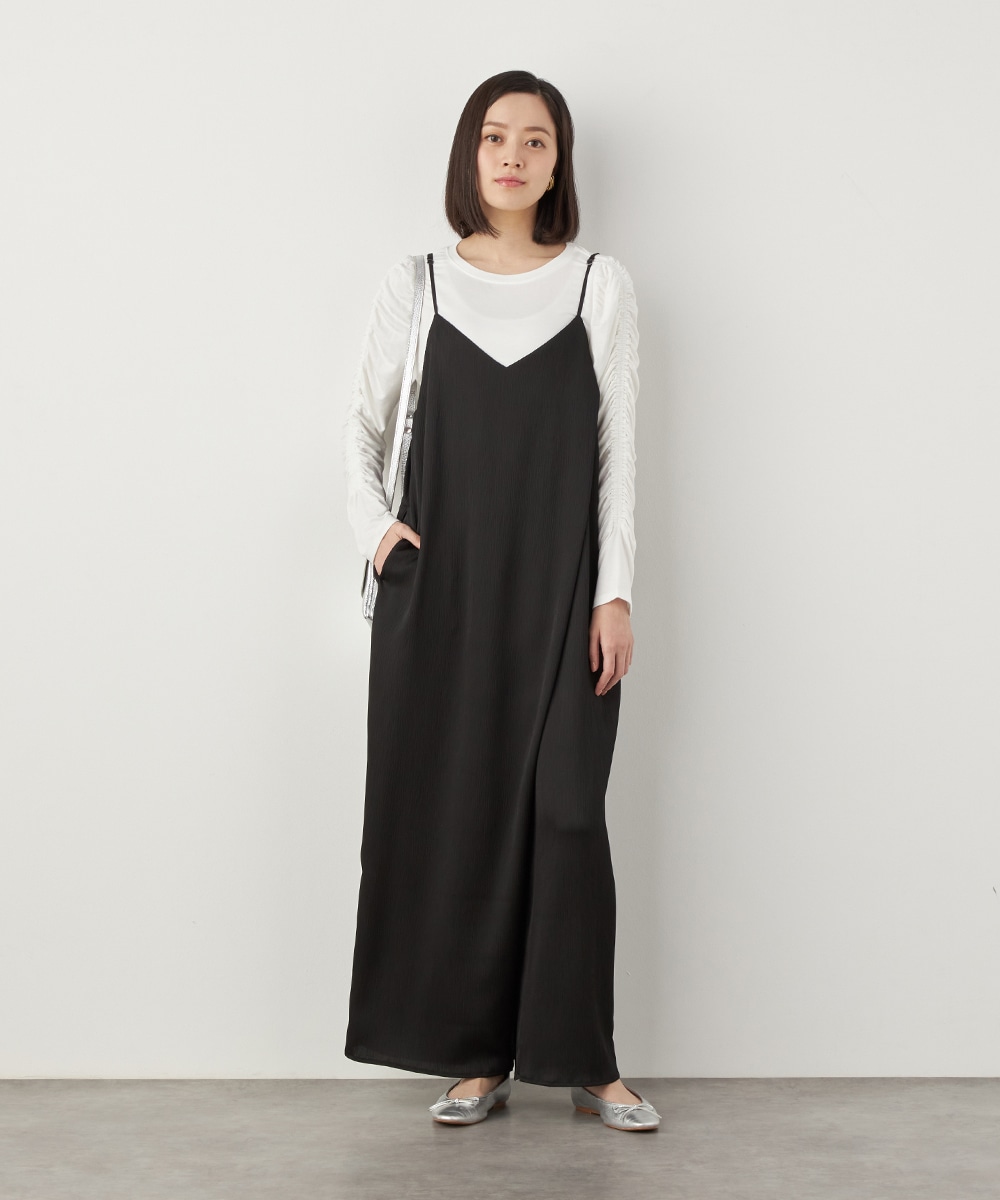 使い勝手が良いベーシックな無地のデザインながらも、印象的なアイテムです。ネックの開きはほどよく、デコルテラインがきれいに見えます。身頃はゆとりを出しすぎず、すっきりとした印象のシルエットを採用。一枚着として活用するのはもちろん、キャミワンピースのインナーにもおすすめです。