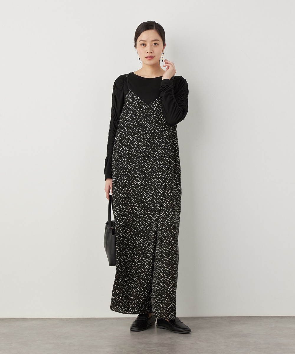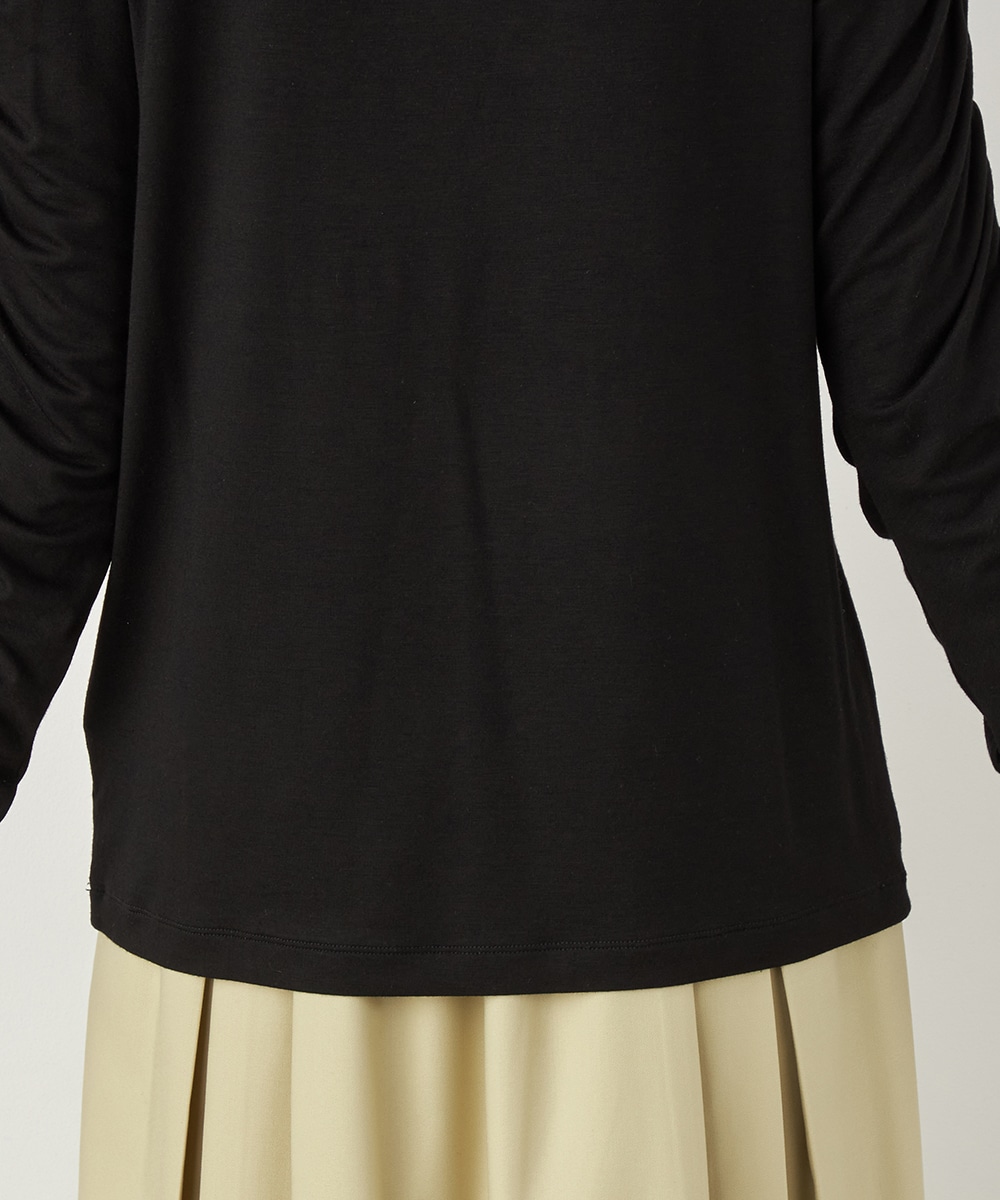 使い勝手が良いベーシックな無地のデザインながらも、印象的なアイテムです。ネックの開きはほどよく、デコルテラインがきれいに見えます。身頃はゆとりを出しすぎず、すっきりとした印象のシルエットを採用。一枚着として活用するのはもちろん、キャミワンピースのインナーにもおすすめです。