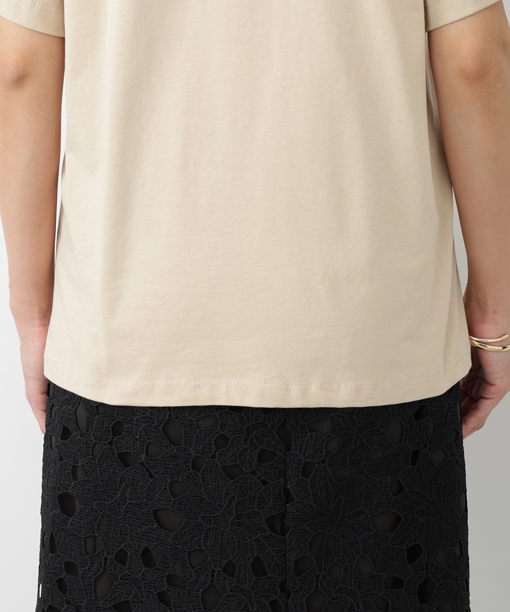 瑞々しいハートチェリープリントがスタイリングのワンポイントになるTシャツ。淡いベージュカラーでカジュアルになりすぎず、スタイリングを品よくまとめてくれます。ややリラックス感のあるシルエットがポイント。どんなボトムスにも合わせやすく、幅広いシーンで活躍する1枚です。