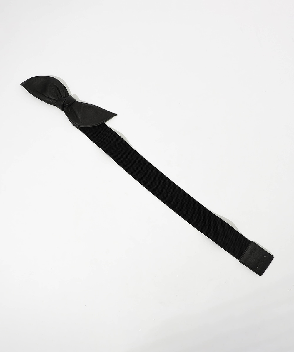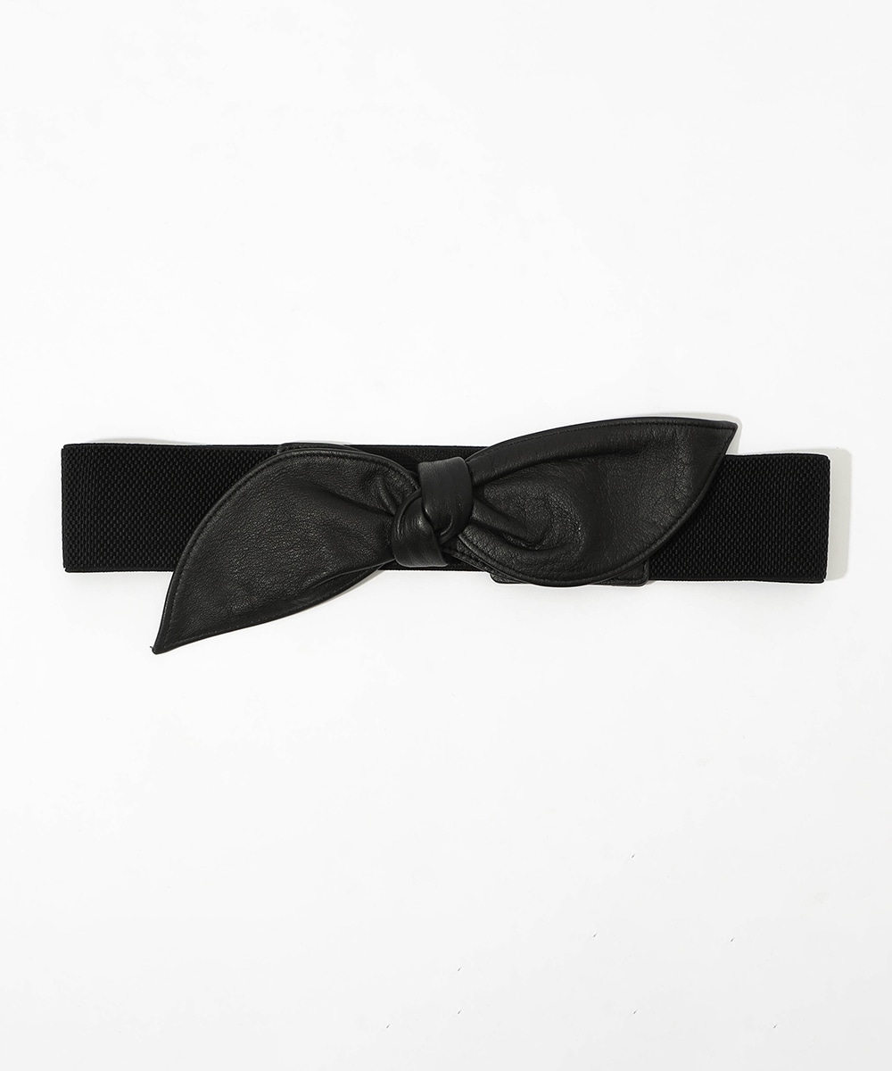 細かなシボ感と落ち着いた光沢のあるレザーを、フェミニンなリボンモチーフに仕上げています。端のカッティングで動きが感じられるのも特徴です。着脱がスムーズにできてフィット感も良好。ウエストマークでスタイルのメリハリがより強調される、少し太めの幅感です。