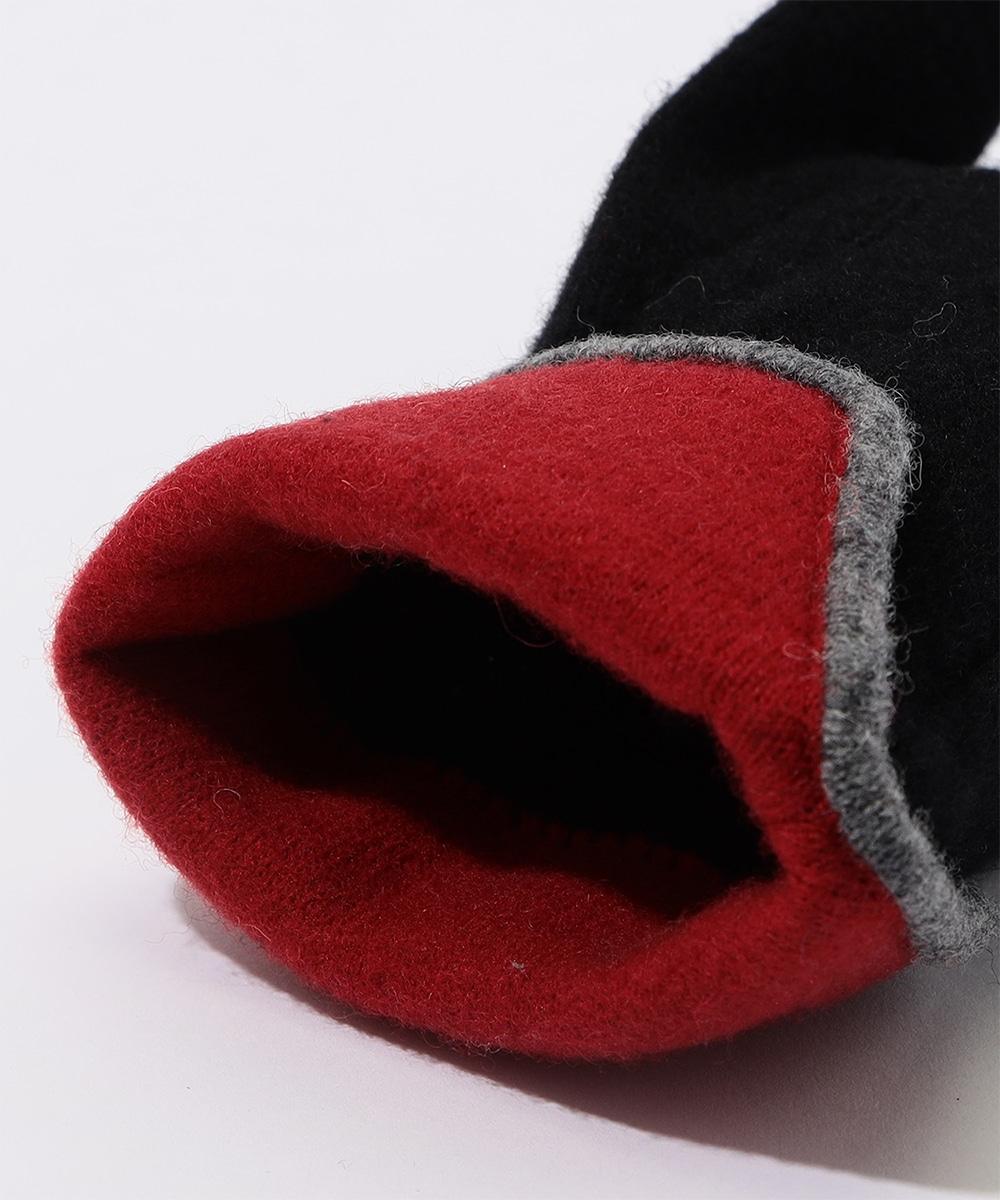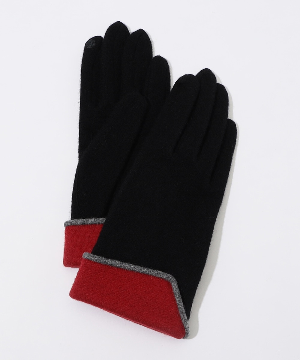 暗くなりがちな秋冬スタイルに差し色を添える、バイカラーデザインのニットグローブ。