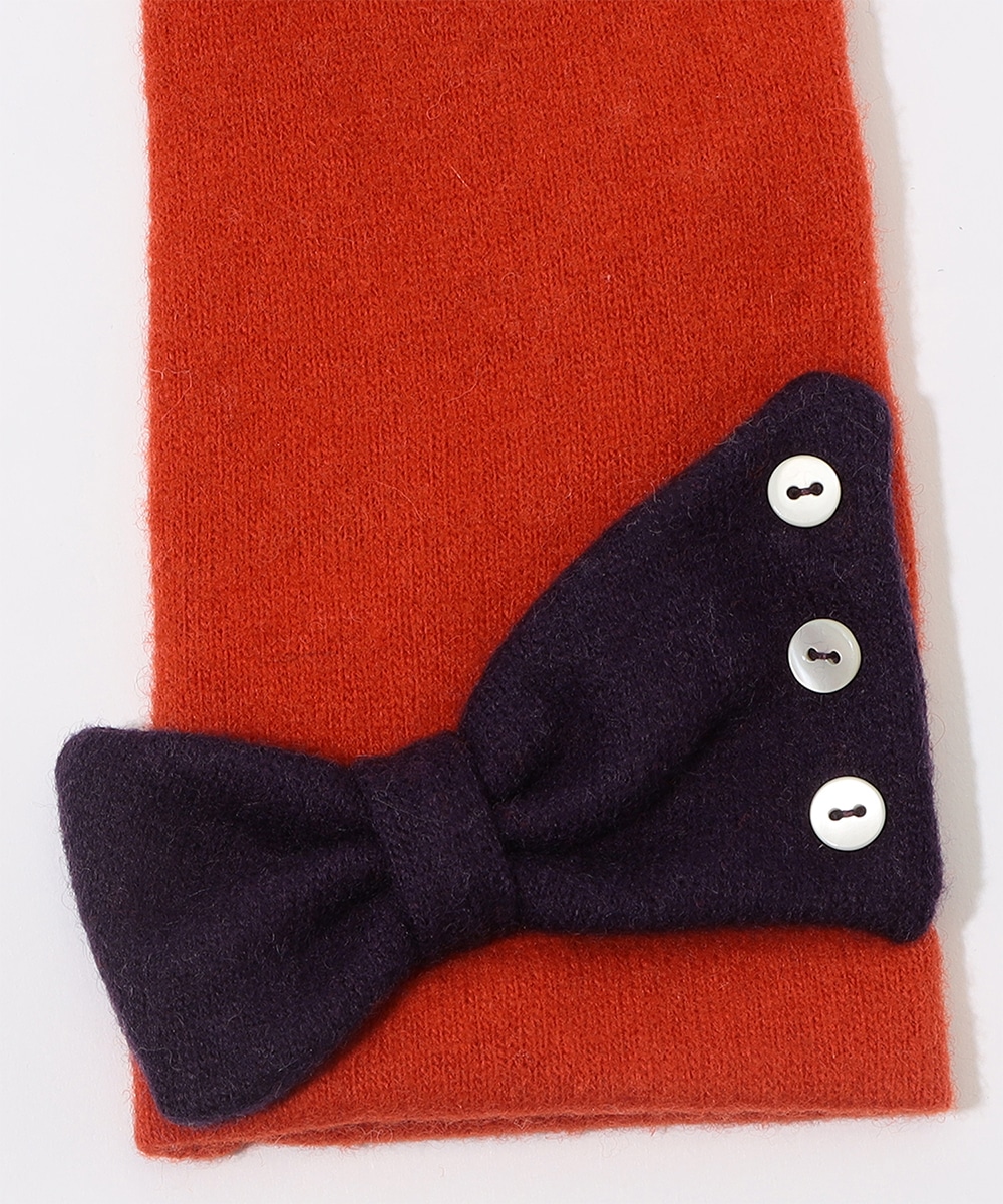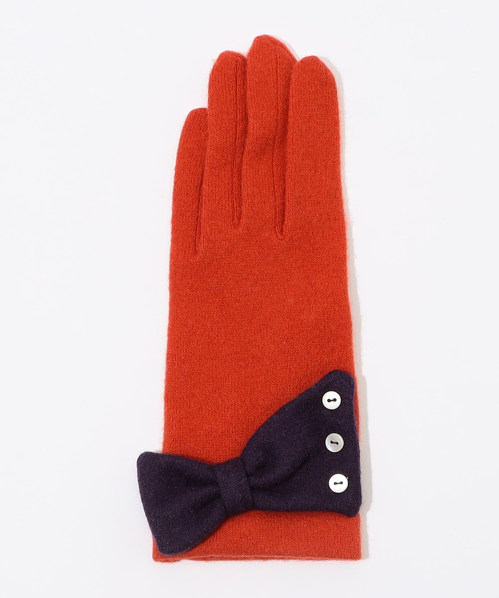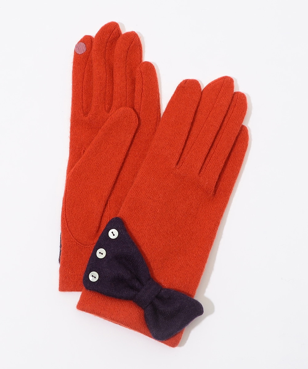 配色のリボンモチーフが目を惹くニットグローブです。フェミニンでありながら気品も漂い、カジュアルからきれいめまで様々な装いに取り入れられます。親指と人差し指がタッチパネル対応なため、身につけたままスマホ操作も可能。暖かなニット生地でフィット感もよく、手元の防寒対策に最適なアイテムです。