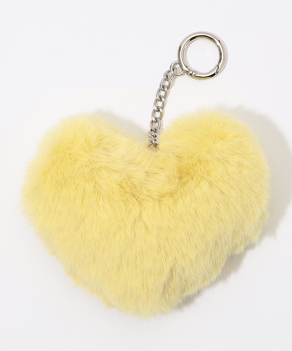 秋冬スタイルのシーズンムードを高める、フェイクファー素材のハートチャーム。