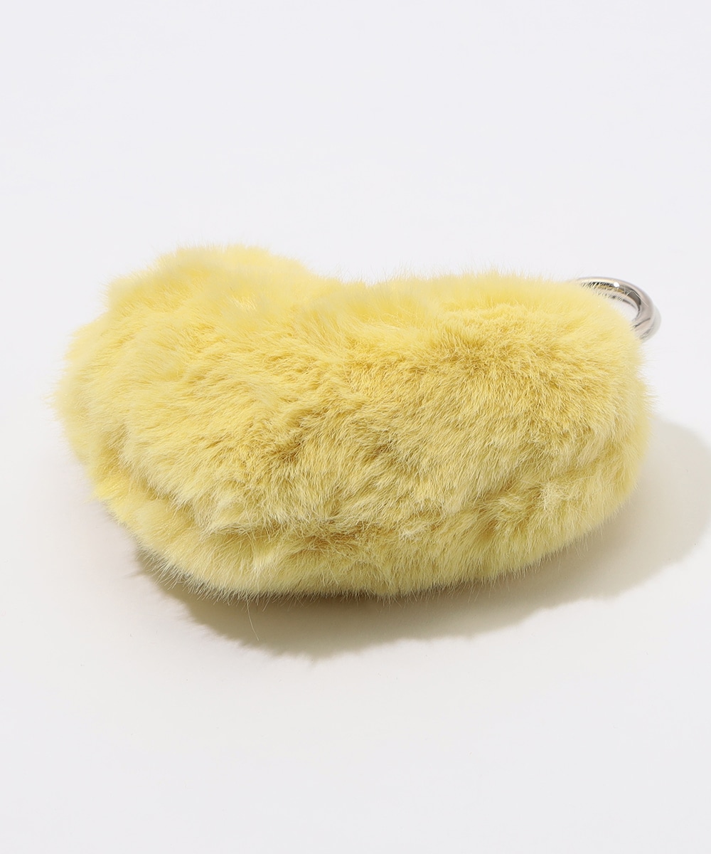 ふわふわで柔らかく、思わず触れたくなるようなフェイクファー素材を使用しています。ボリュームのあるハート型でバッグに飾るとアクセントになり、装いまで華やかに見せてくれます。バッグだけでなく、ポーチや鍵、ボトムのベルトループなどに付けるのもおすすめ。フック式の留め具で取り付けも簡単です。