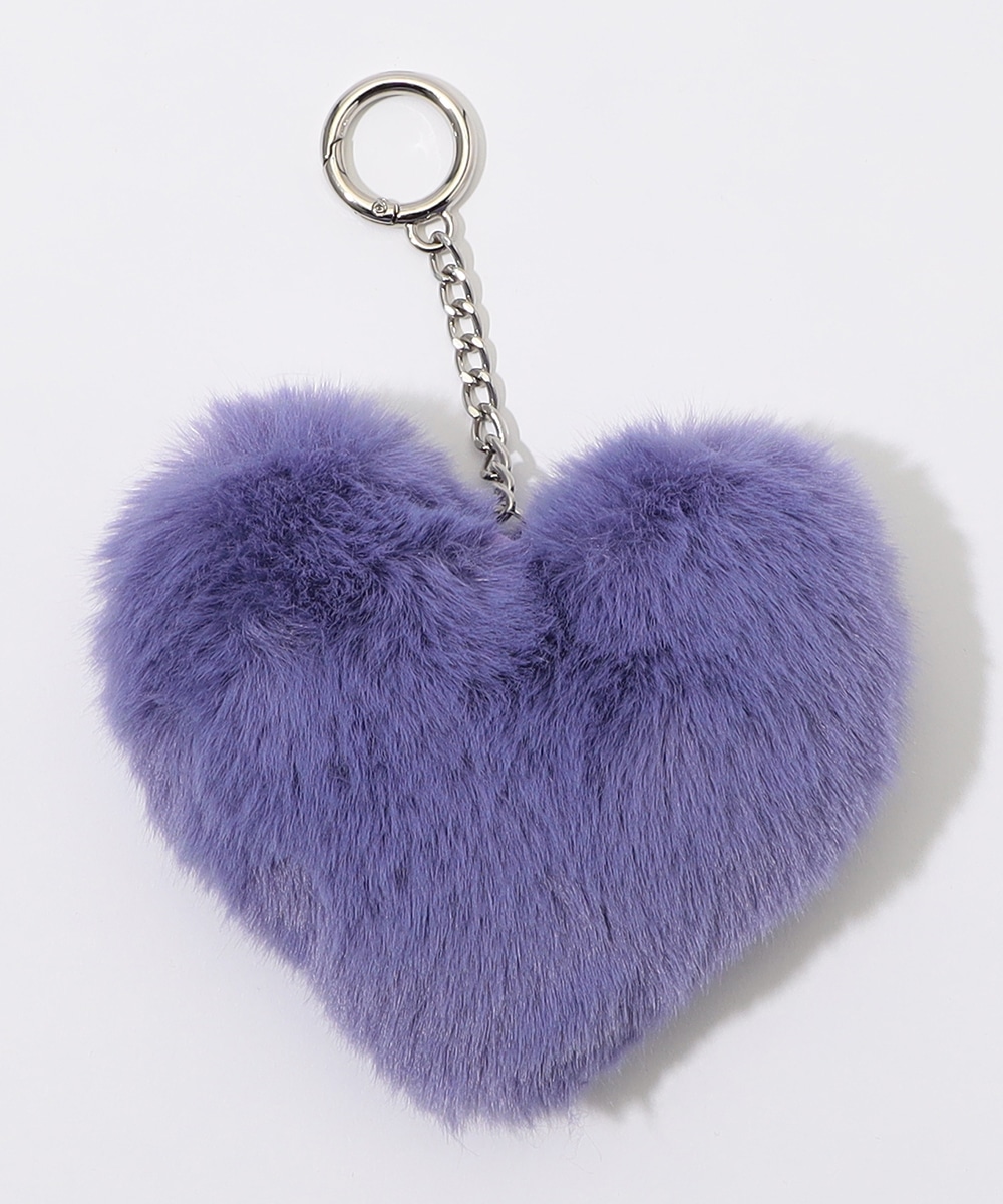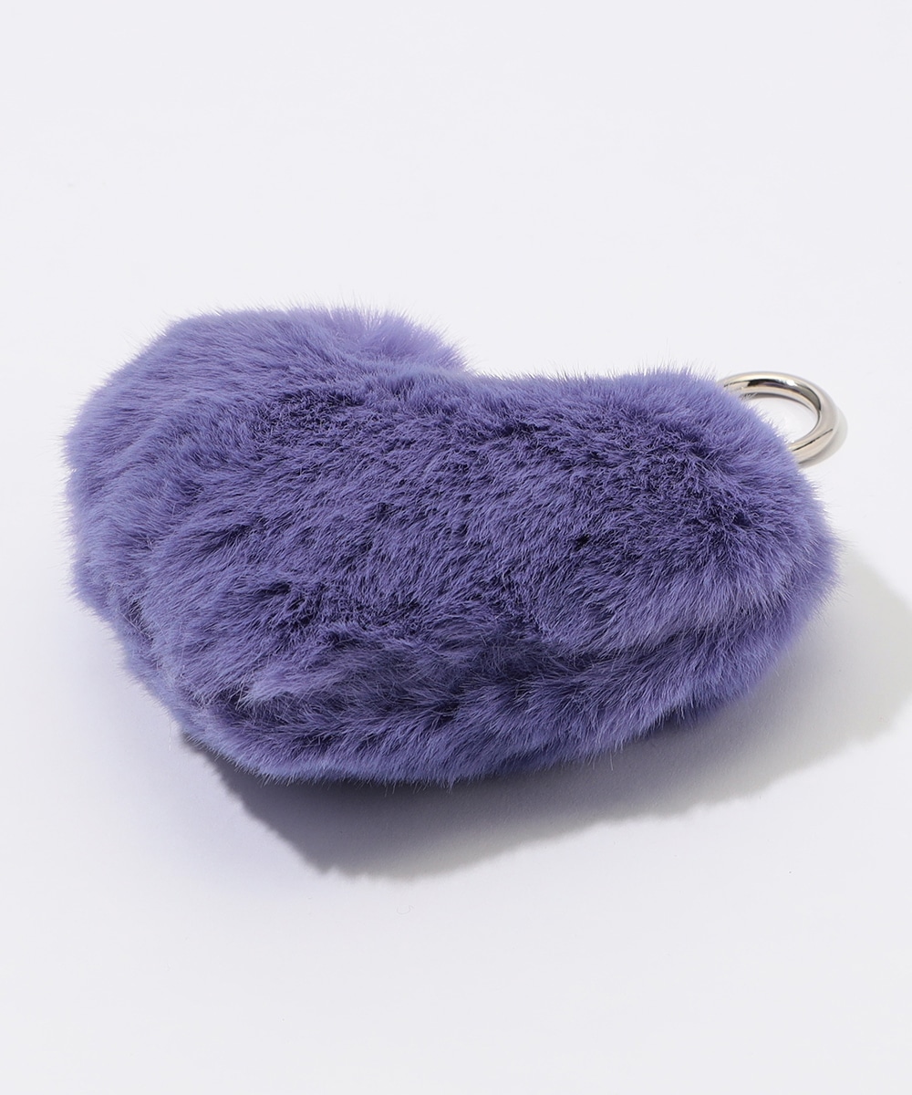 ふわふわで柔らかく、思わず触れたくなるようなフェイクファー素材を使用しています。ボリュームのあるハート型でバッグに飾るとアクセントになり、装いまで華やかに見せてくれます。バッグだけでなく、ポーチや鍵、ボトムのベルトループなどに付けるのもおすすめ。フック式の留め具で取り付けも簡単です。