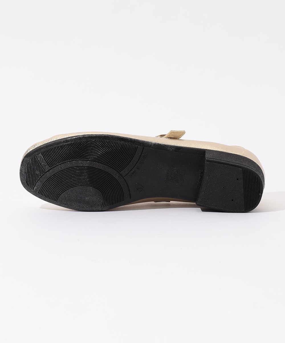 コーディネートのアクセントとしても重宝、光沢感のある華やかな表情のストラップシューズ。