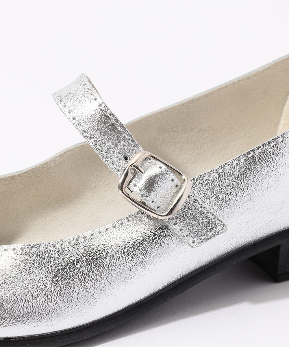 装飾を省いたシンプルなデザインに、きれいな光沢感が際立っています。履きこなしやすいスタンダードなラウンドトゥを採用。ストラップはスナップボタン仕様で脱ぎ履きをスムーズに行えます。ローヒールの歩きやすさも魅力です。アレンジ次第で普段のカジュアルにもドレスアップにも活用できます。