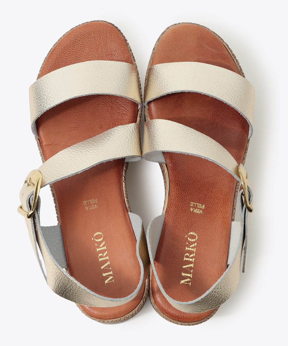 メタリックな質感が印象的なサンダル。さりげない光沢感がコーディネートのアクセントになり、軽やかな足元に仕上がります。程よい厚みのソールで安定感があり、履き心地にも配慮したデザイン。ワンピースと合わせて上品に、デニムを穿いてカジュアルスタイルにも取り入れやすい一足です。