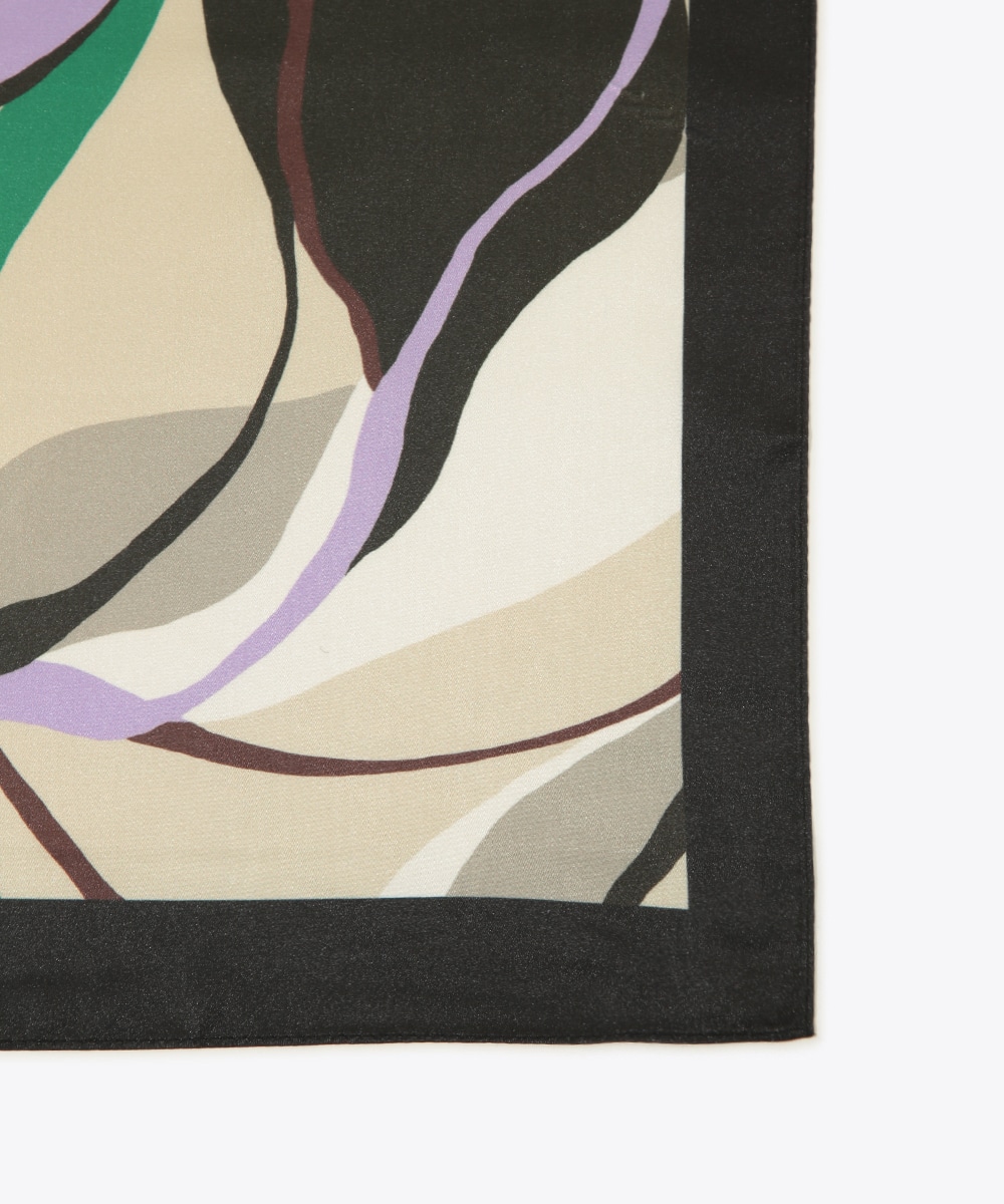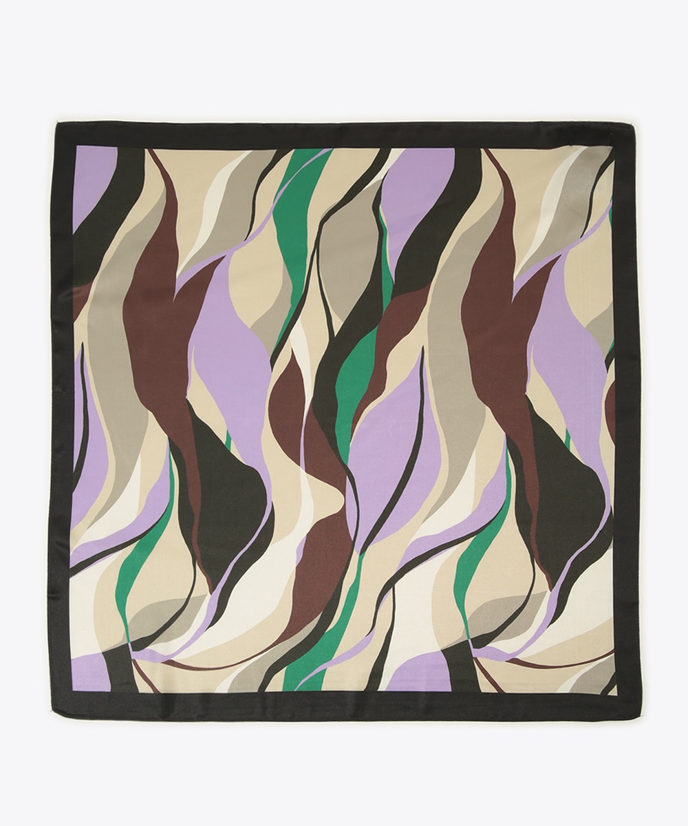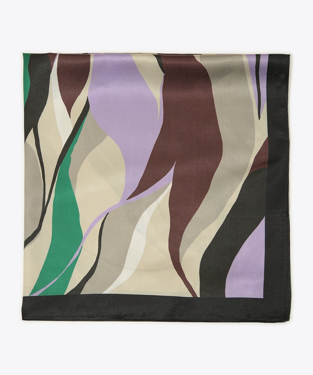 グリーンやパープル、ブラウンを重ねたマルチプリントが印象的なスカーフ。流れるような柄行きがコーディネートに奥行きをプラス。首元に巻いてアクセントにしたり、バッグに結んでポイント使いしたりとアレンジも楽しめます。シンプルな装いに取り入れるだけで、さりげなく洗練された雰囲気に導くアイテムです。