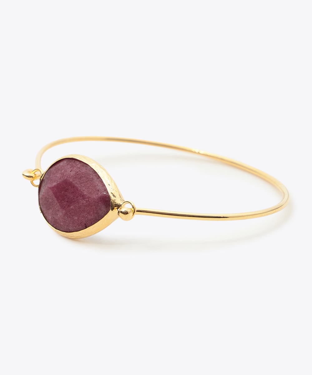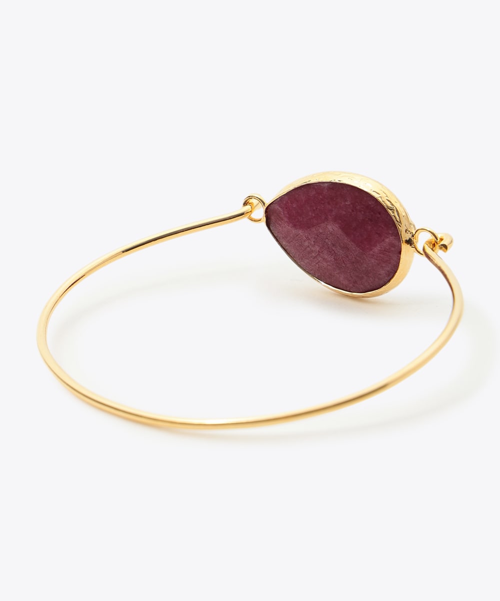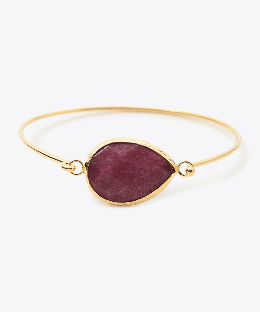 ティアドロップ型のストーンが印象的なバングル。華奢なフレームとのコントラストが手元に上品なアクセントをプラスします。シンプルながらも程よい存在感で、コーディネートに自然に溶け込むデザイン。きれいめにもカジュアルにも合わせやすく、オンオフ問わず活躍します。単品使いはもちろん、他のアクセサリーとの重ね付けもおすすめです。