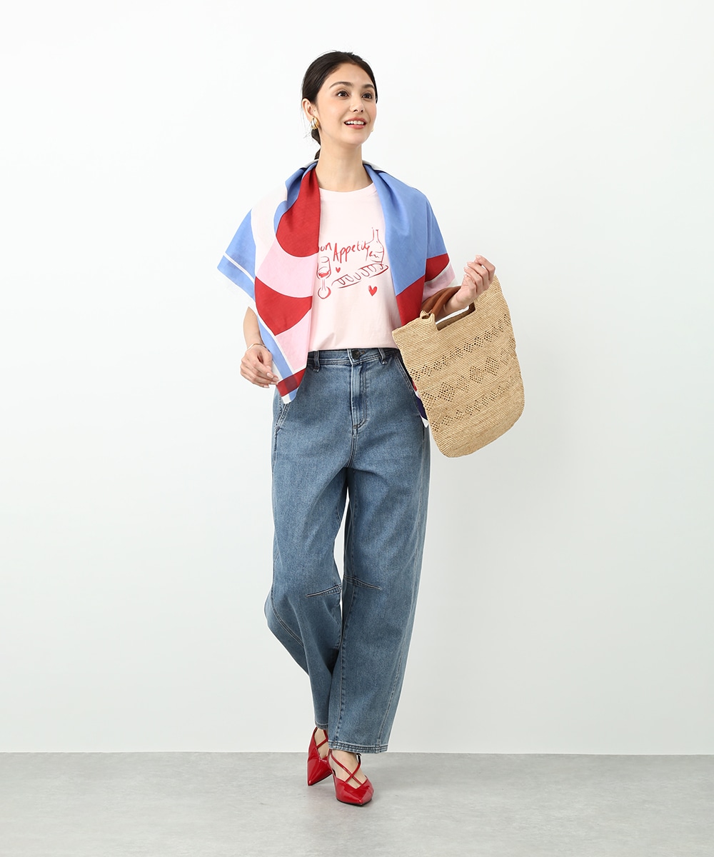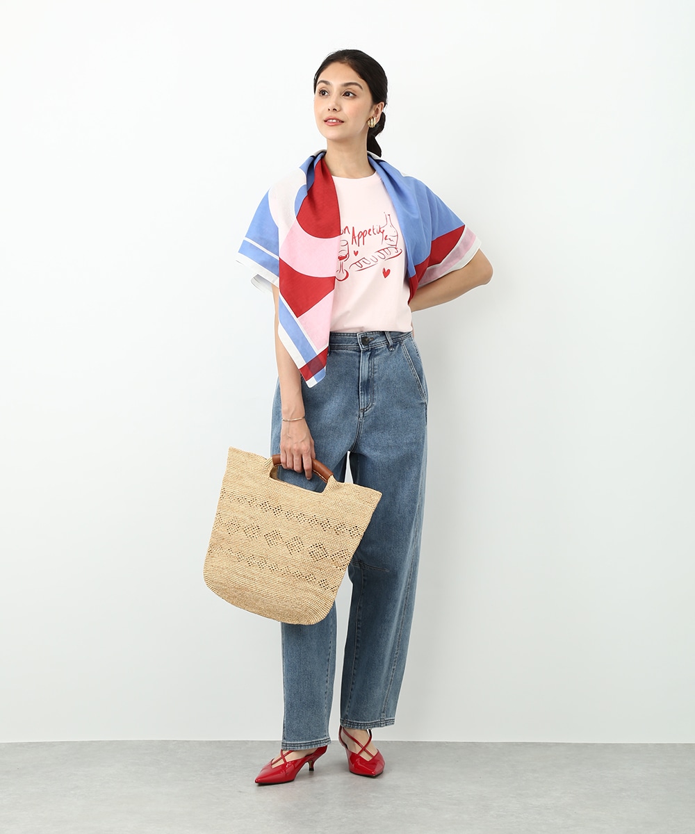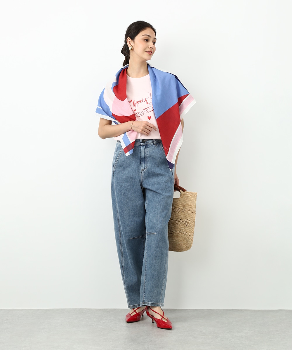 存在感のある大判サイズで使い勝手のよいスクエアスカーフ。日よけや冷房対策にはもちろん、アレンジ次第でスタイリングの幅が広がります。腕に巻いてアクセサリー感覚で取り入れたり、バッグに結んでポイントにする使い方もおすすめです。コーデにさりげないアクセントを加えてくれるアイテムです。