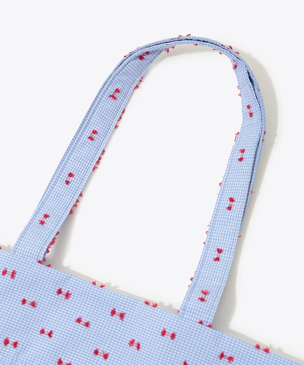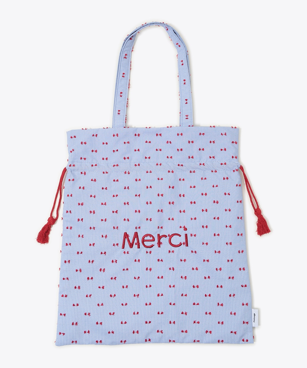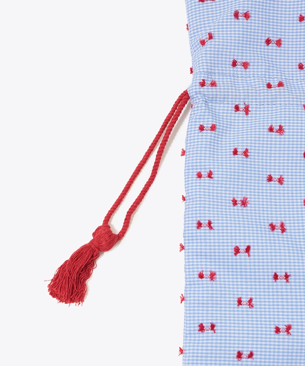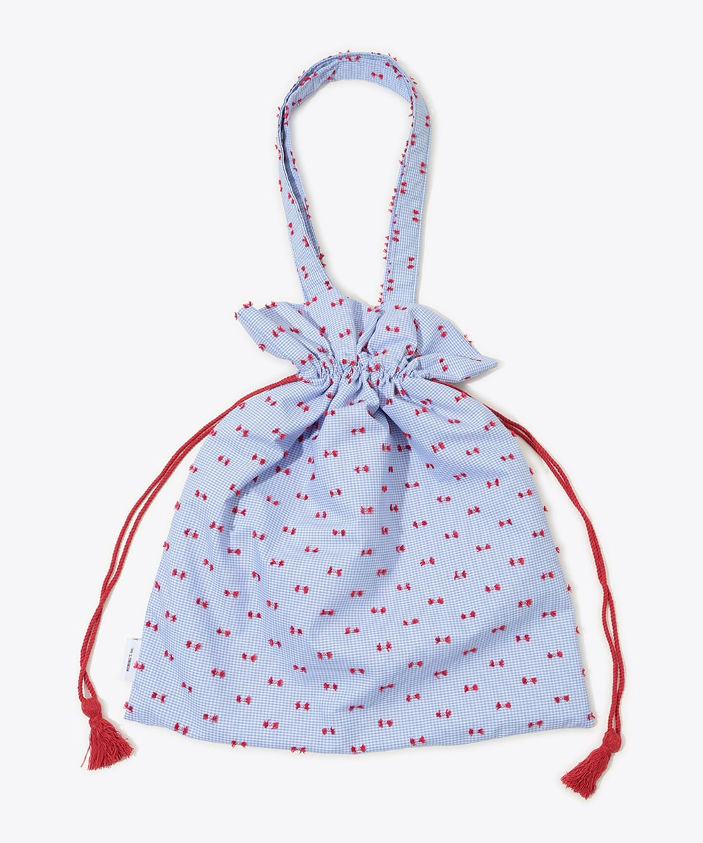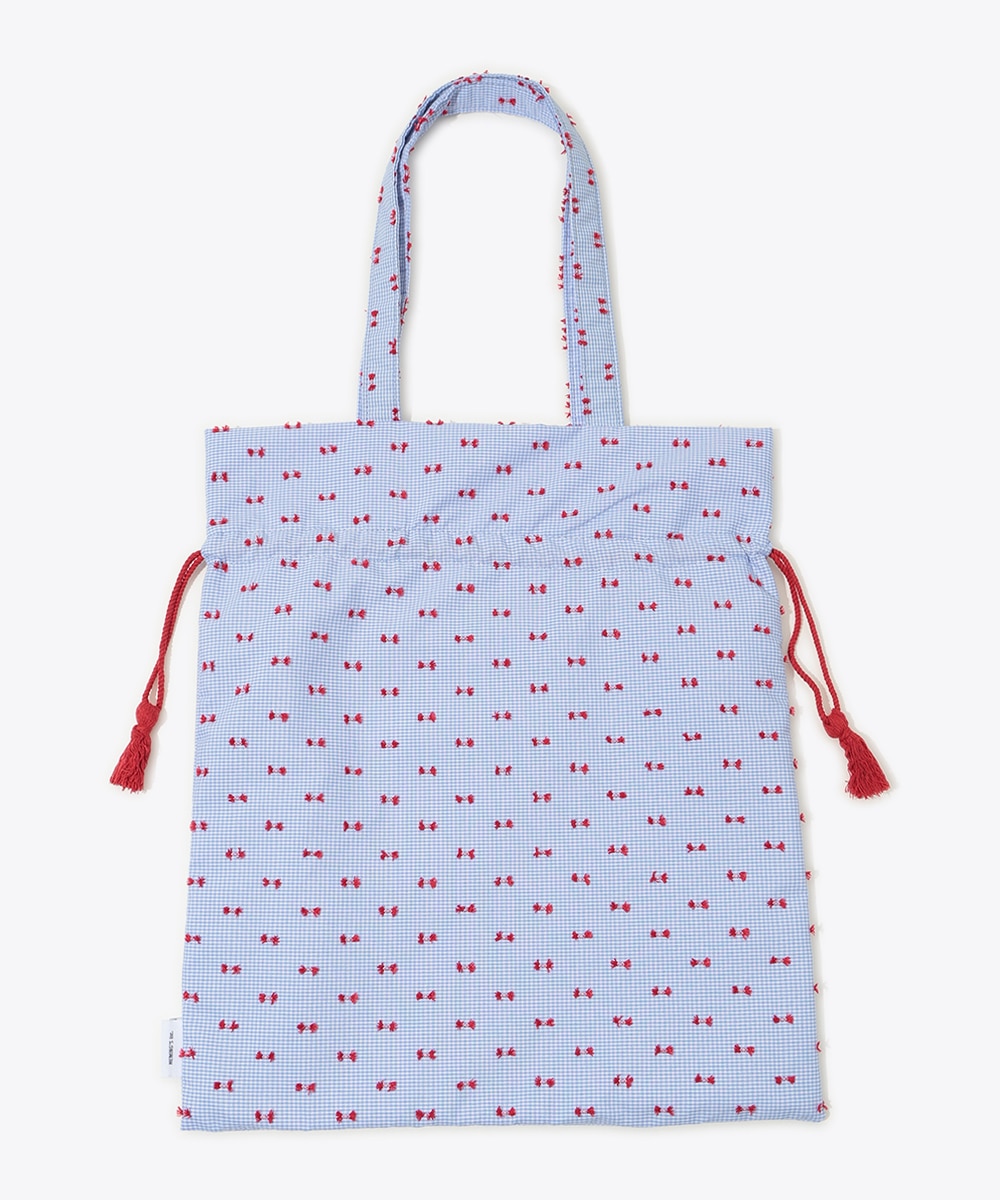 細やかな柄とロゴ刺繍がアクセントになった巾着トートバッグ。開口部は巾着仕様でシルエットの変化も楽しめ、使い勝手の良さも魅力です。程よいサイズ感のためデイリー使いにぴったりで、小物や必需品の持ち運びにも便利。カジュアルコーデに取り入れるだけで、さりげないポイントになるアイテムです。