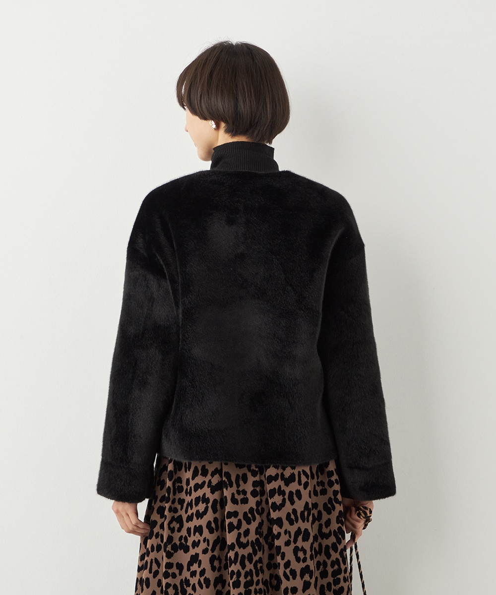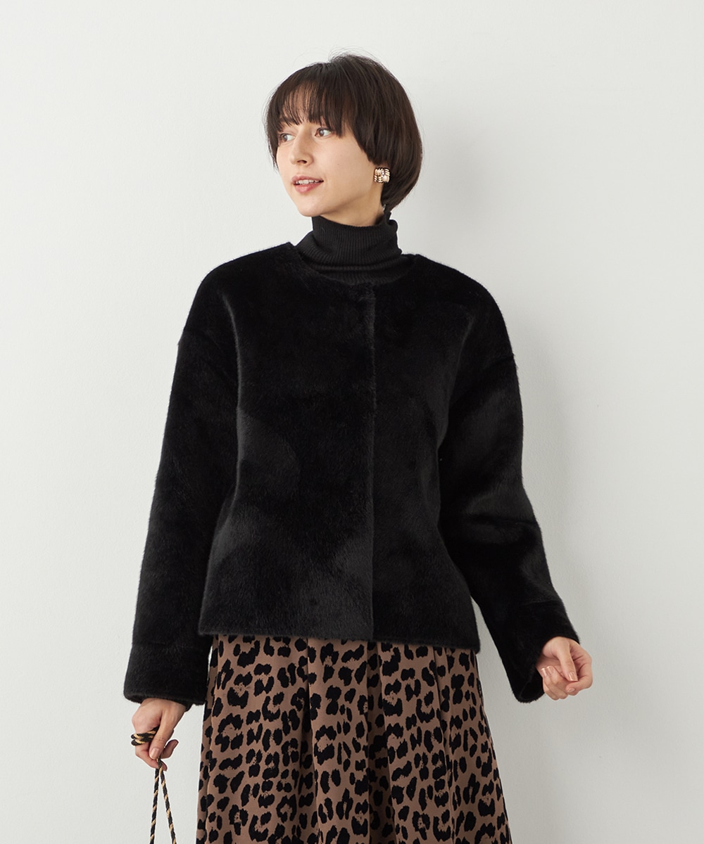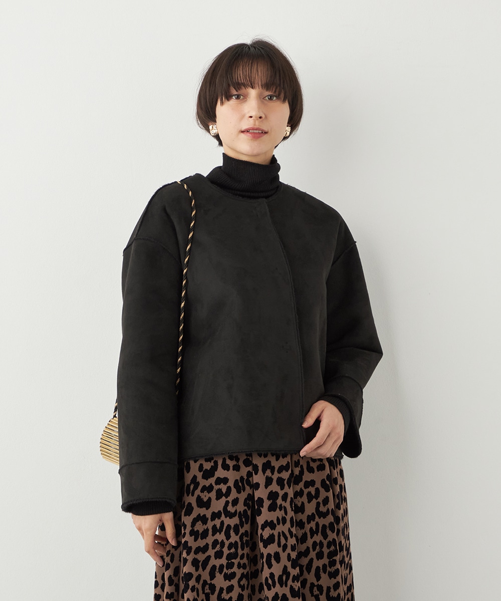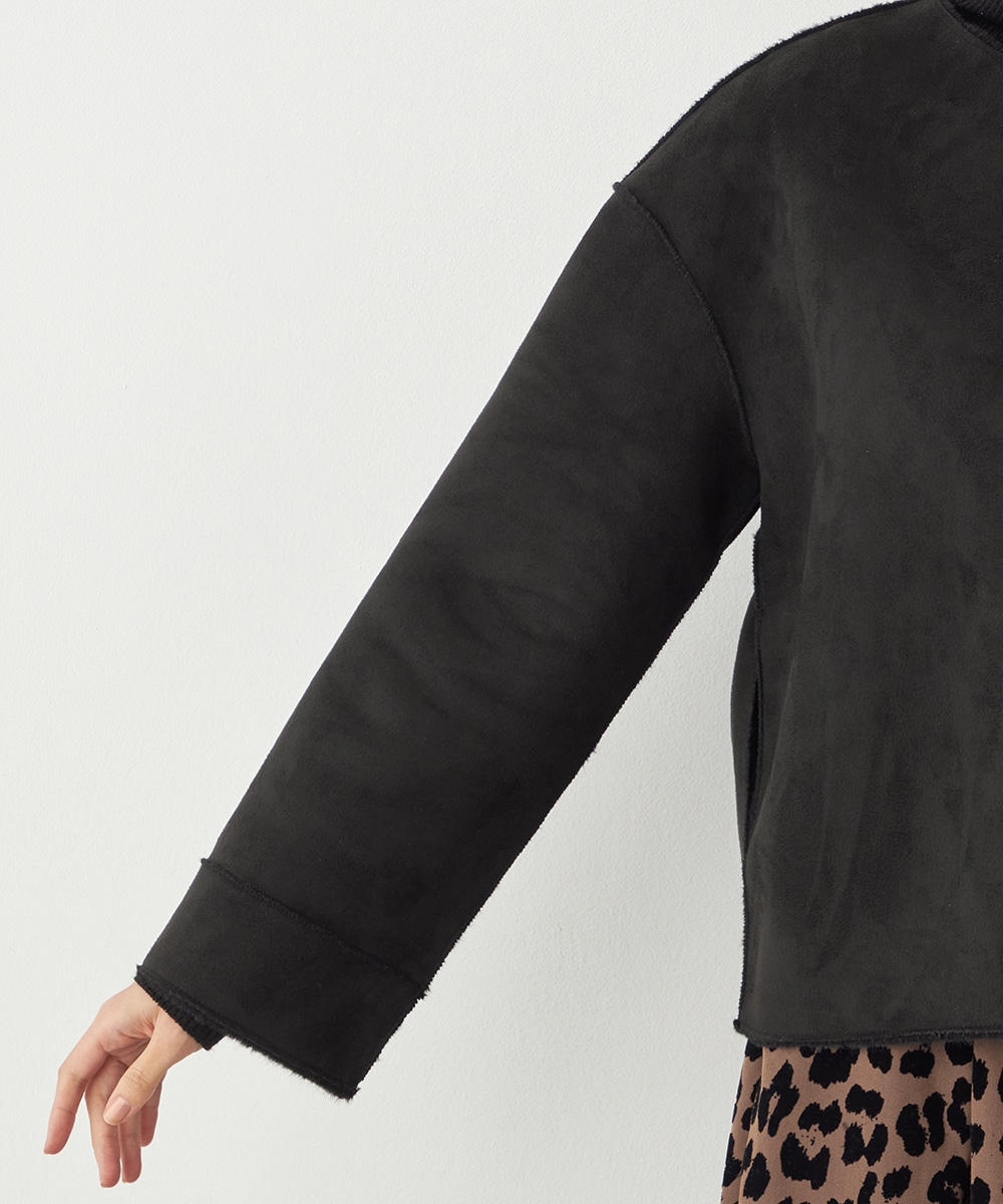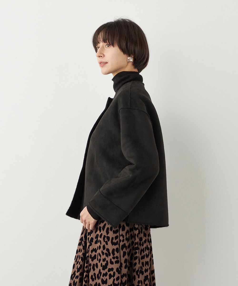 ぬくもり感が魅力のフェイクムートン。カーディガン感覚で着られて便利なショートブルゾン。
