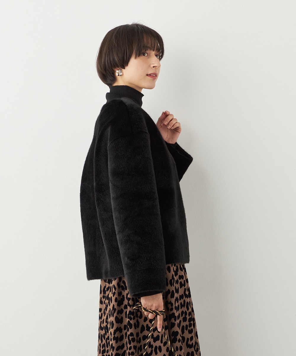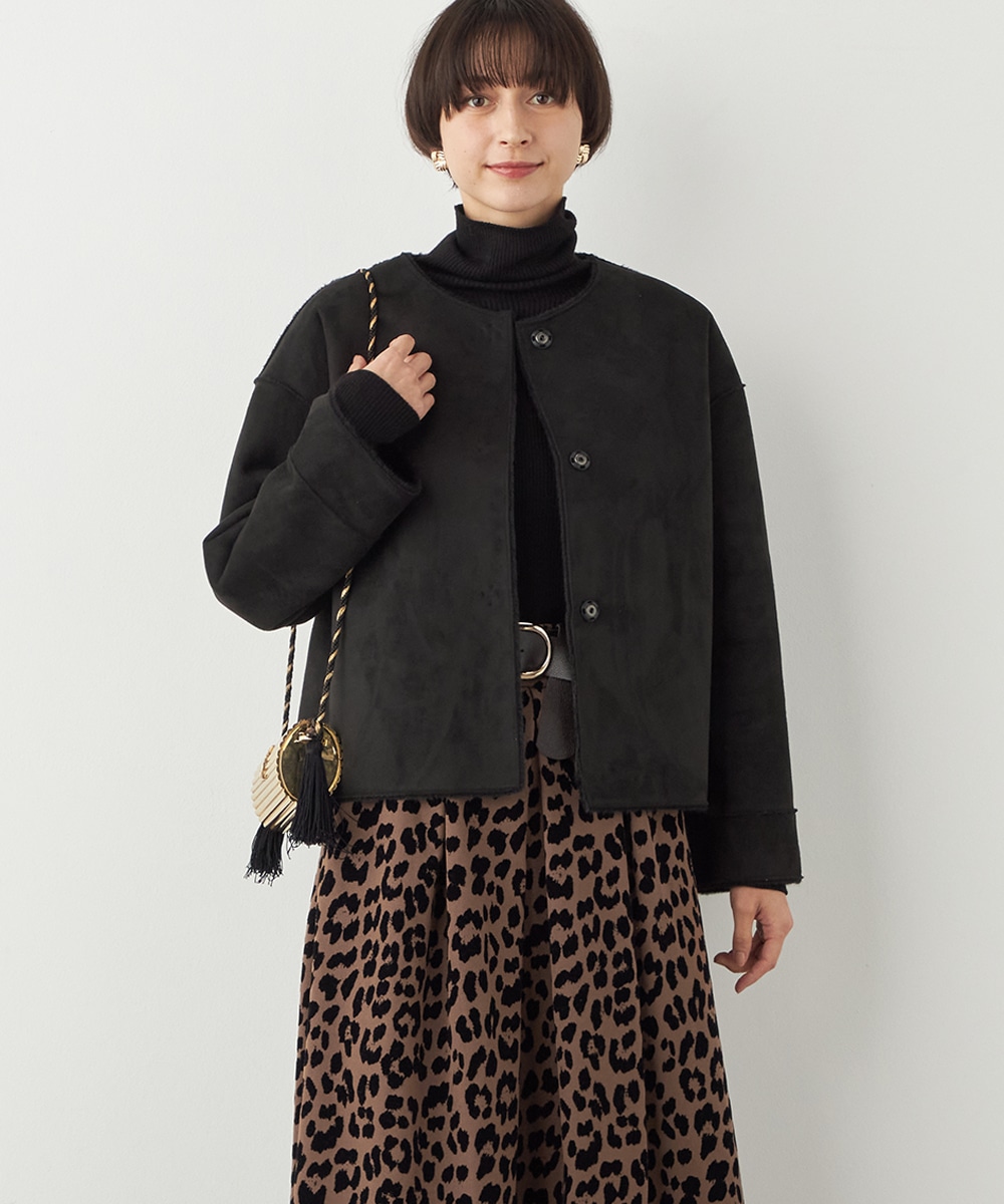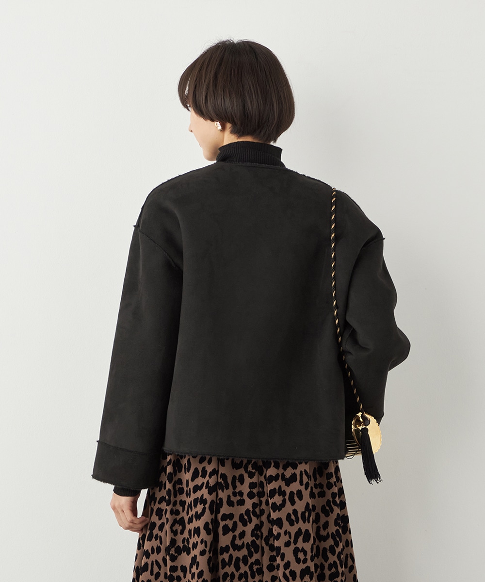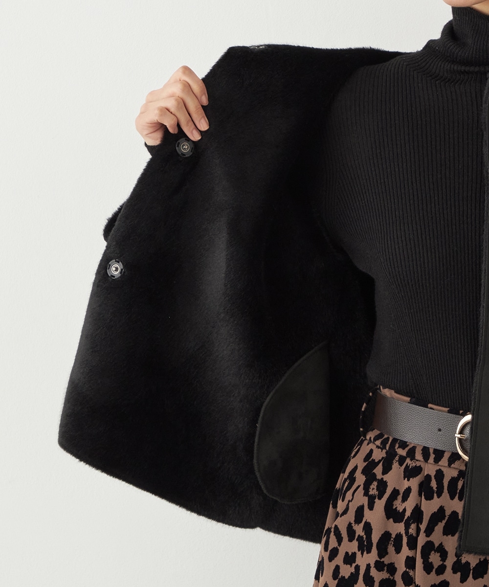ぬくもり感が魅力のフェイクムートン。カーディガン感覚で着られて便利なショートブルゾン。